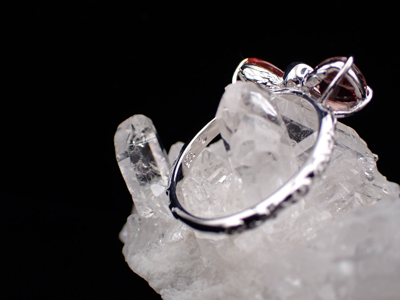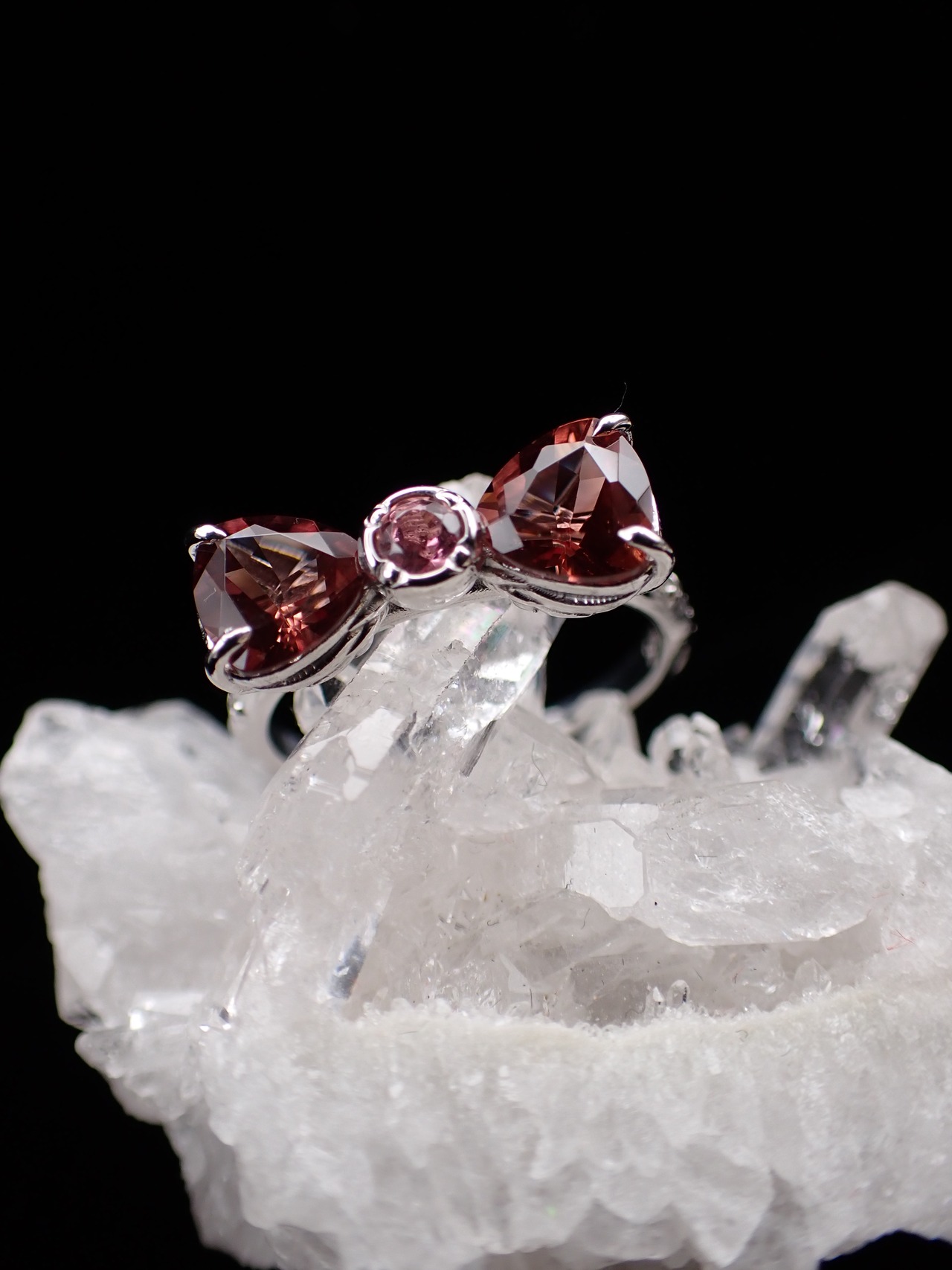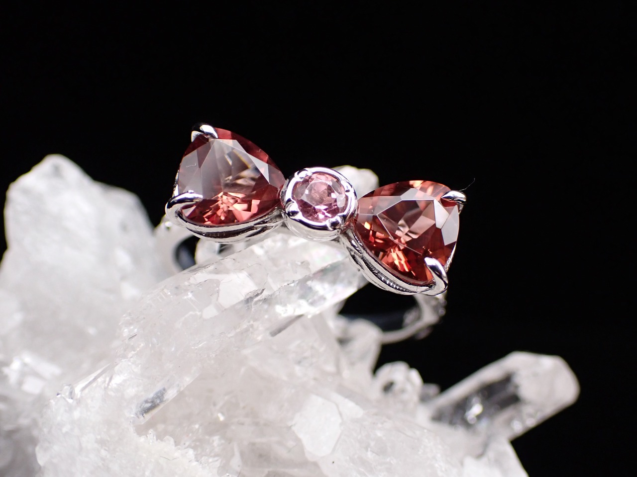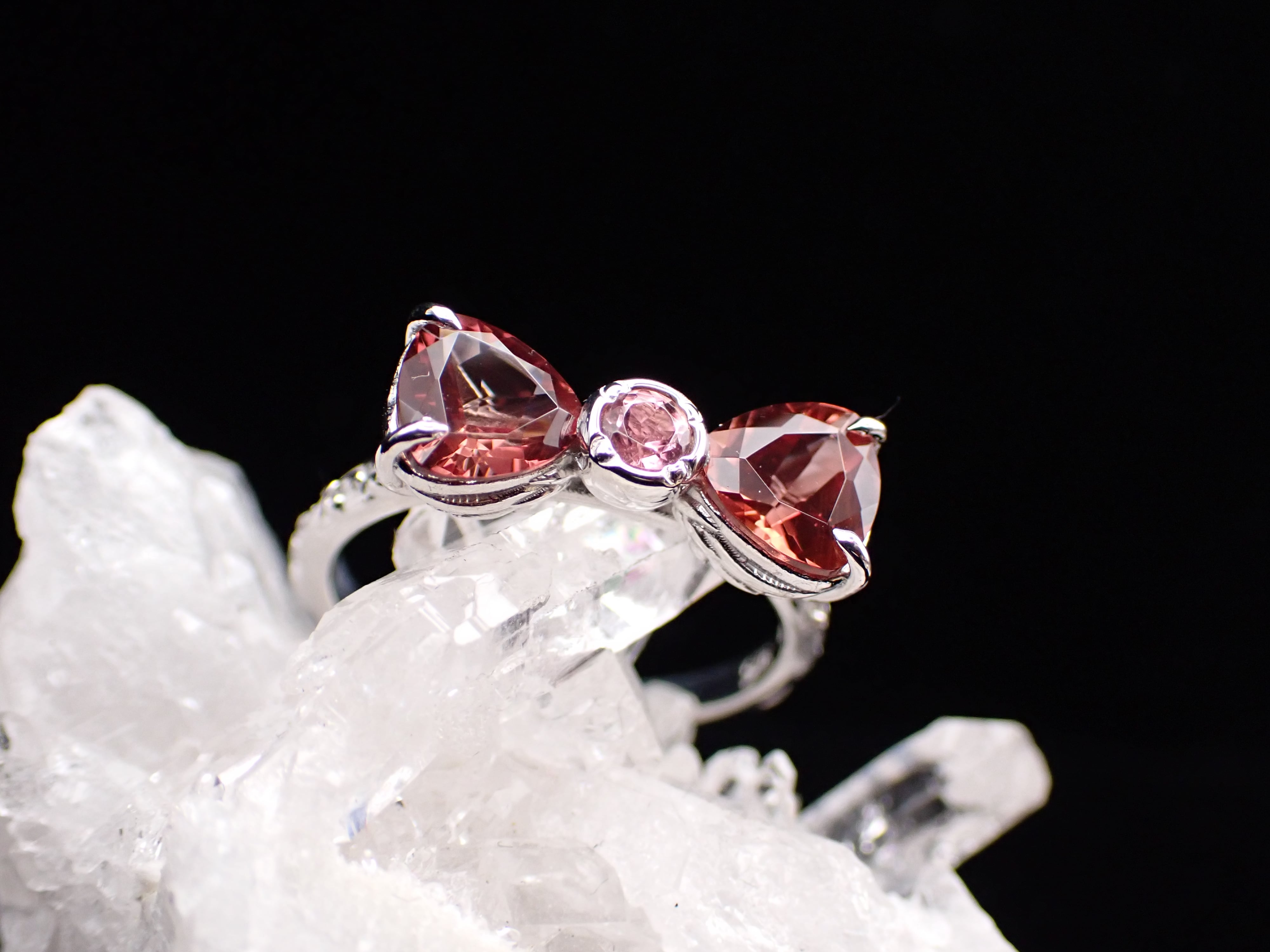 中央は鮮やかなピンクトルマリンです。