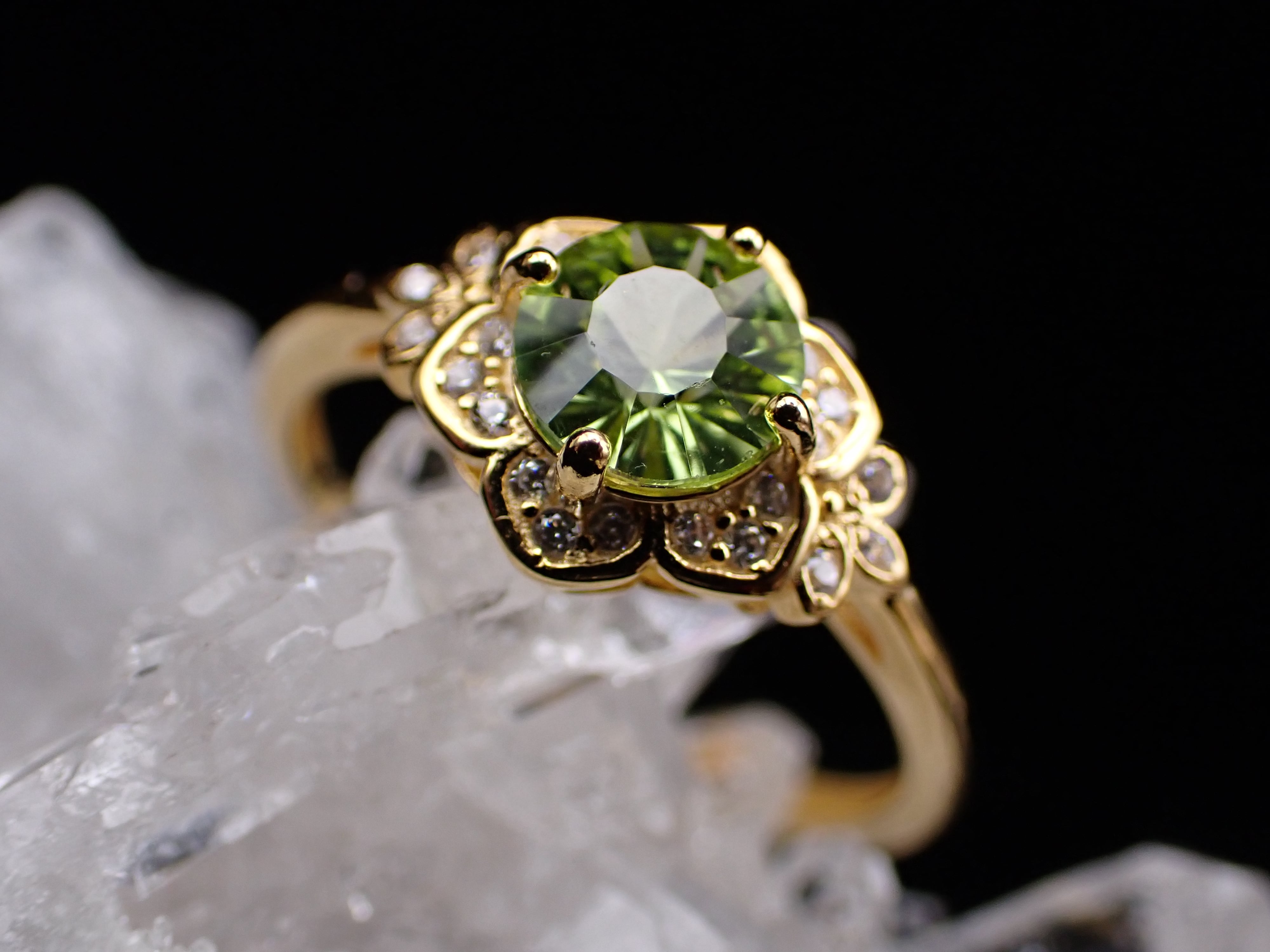 取り巻きのジルコニアに引き立てられ、一段と輝きを増すピースが目を惹きます。