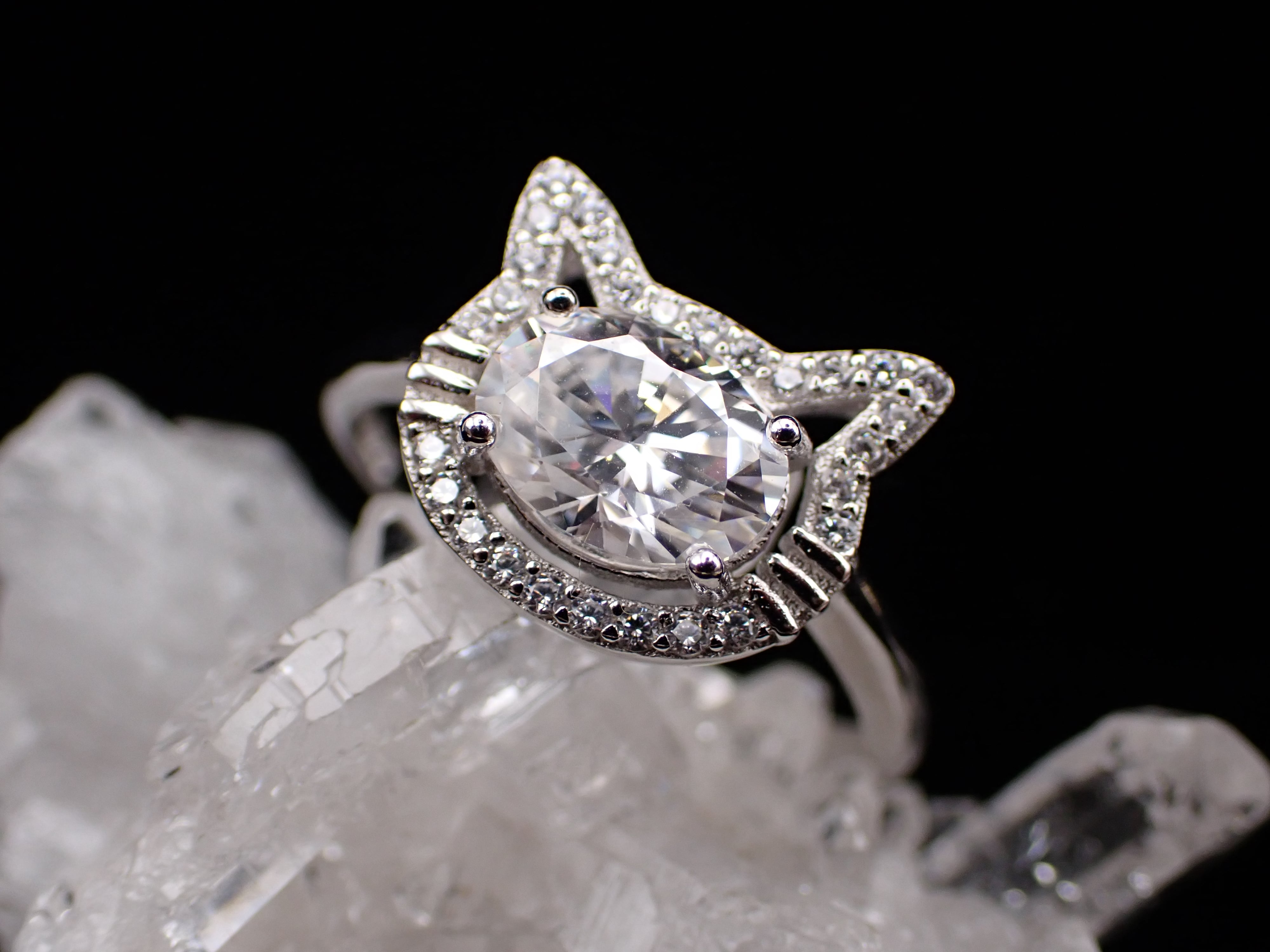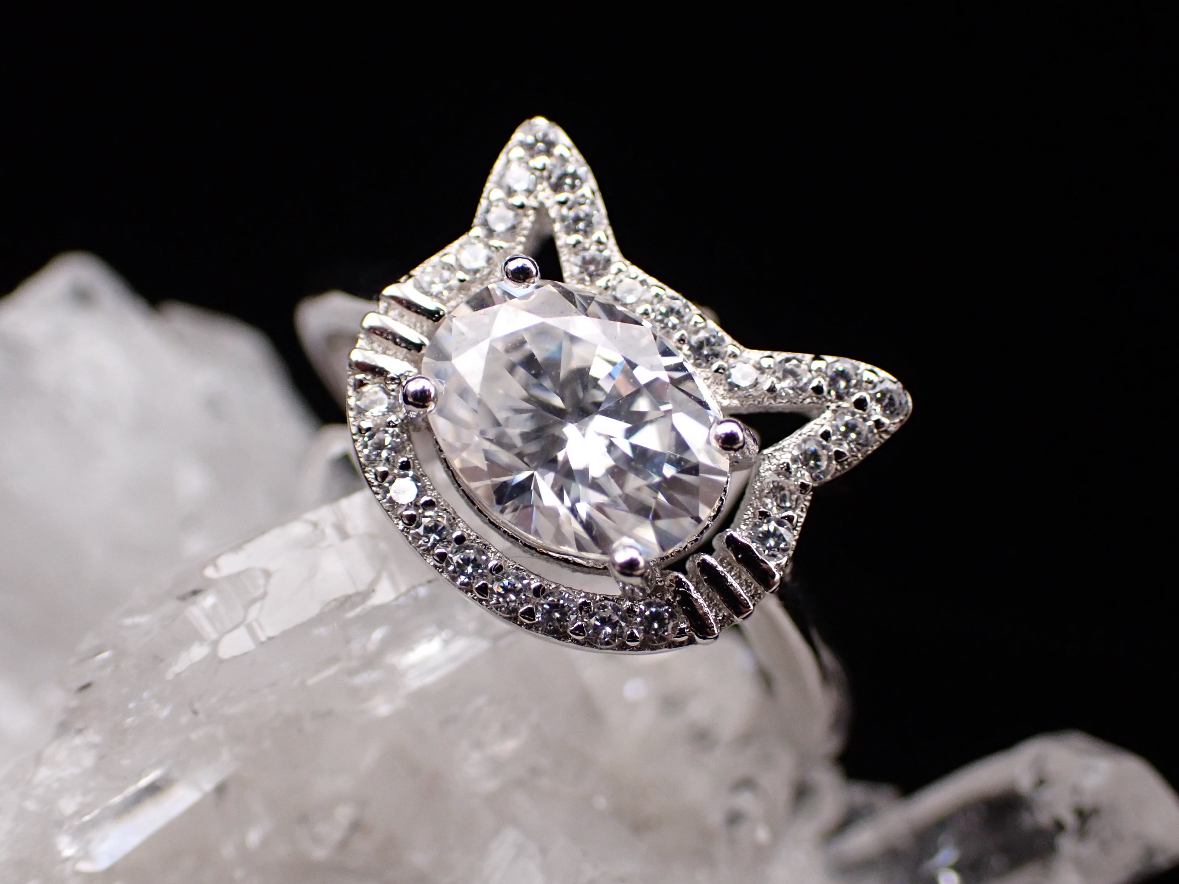 ねこりんぐ ホワイトモアッサナイト✴︎フリーリングSV