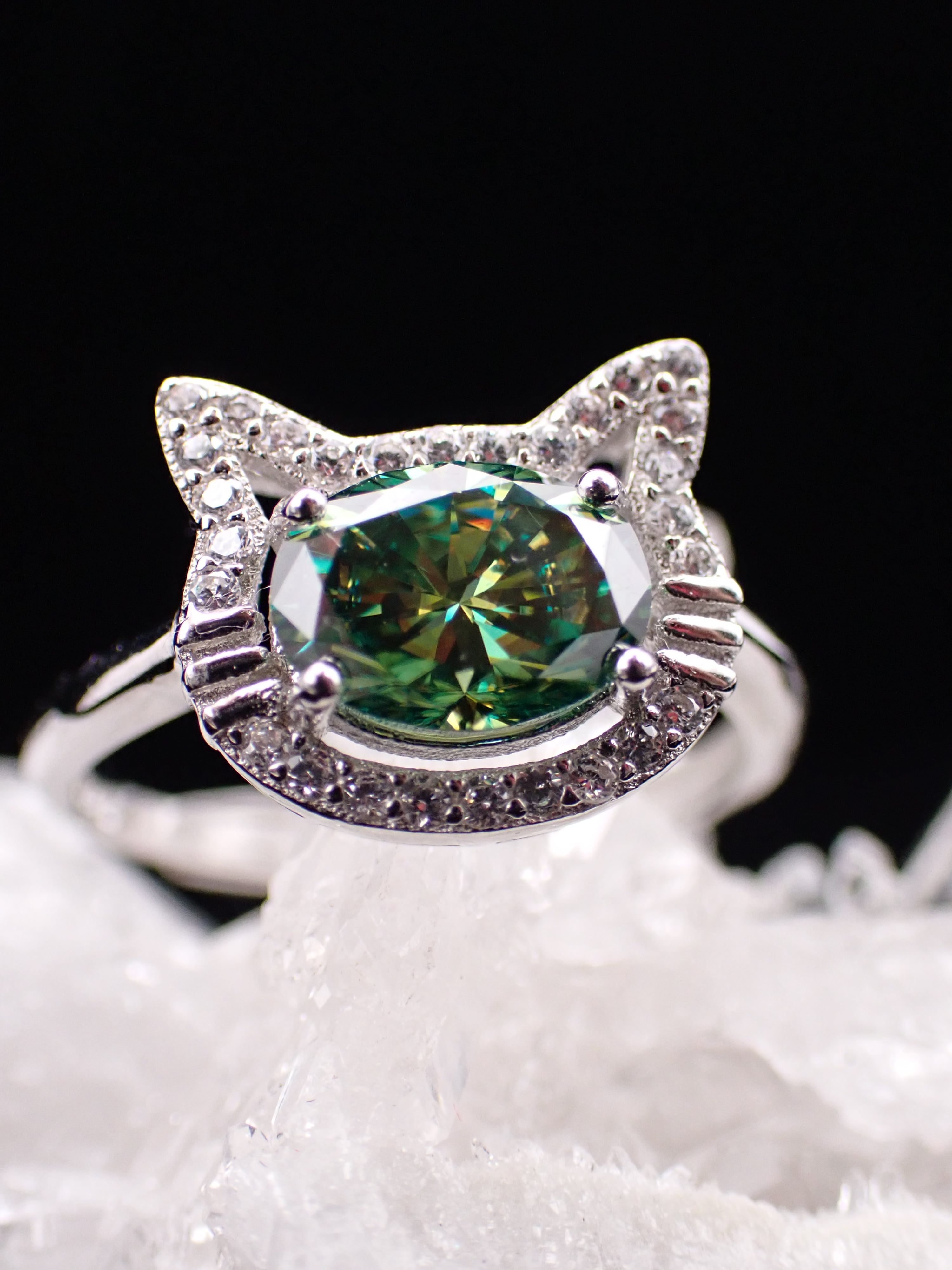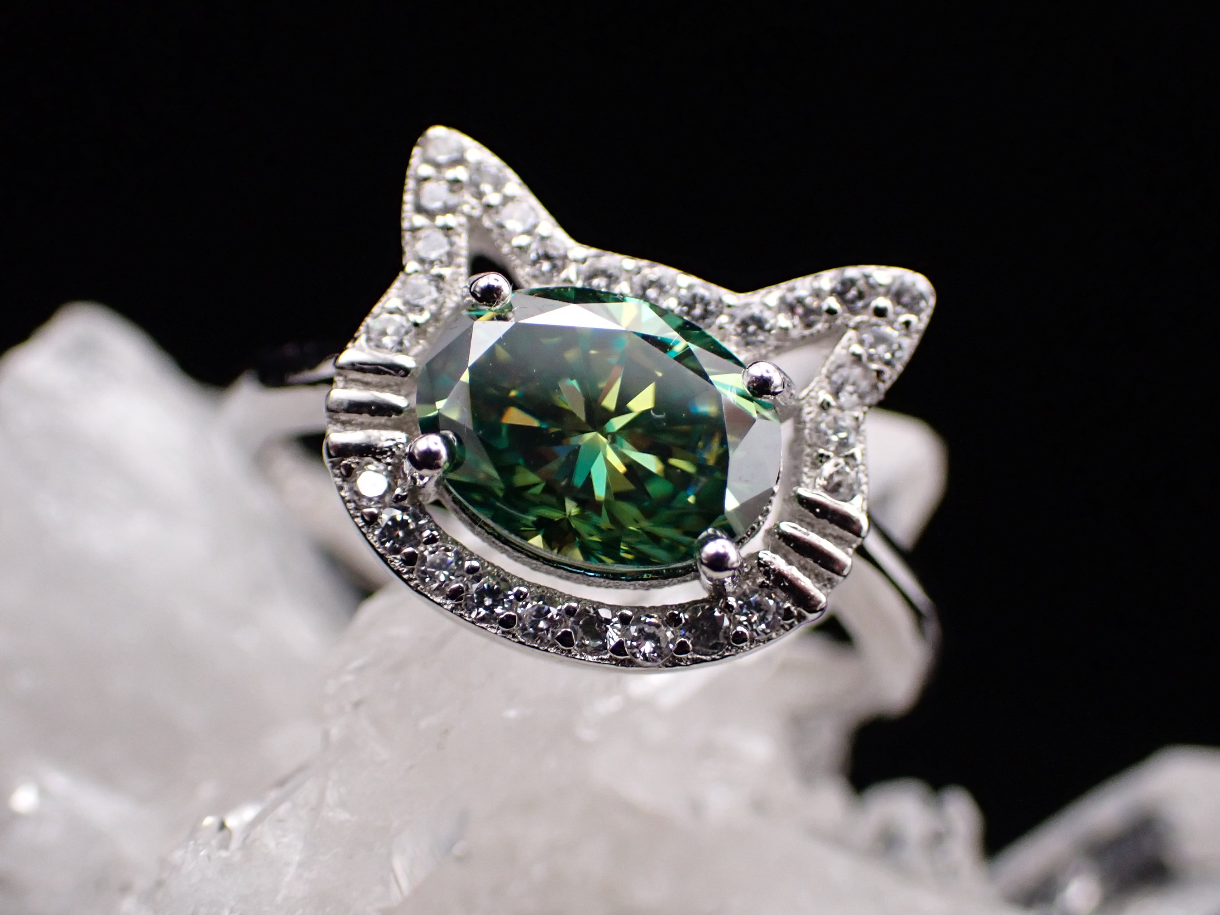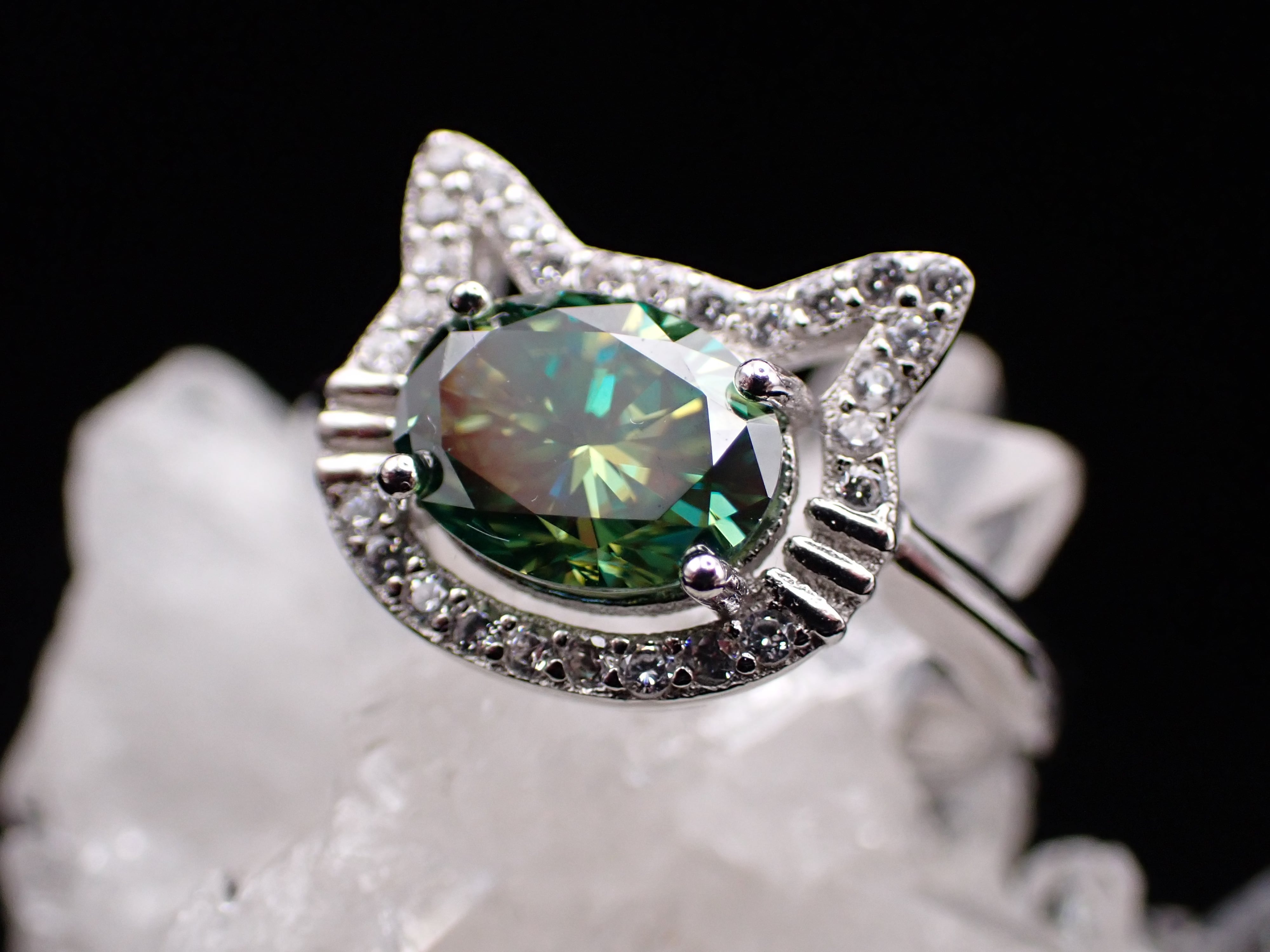 ねこりんぐ グリーンモアッサナイト✴︎フリーリング SV
