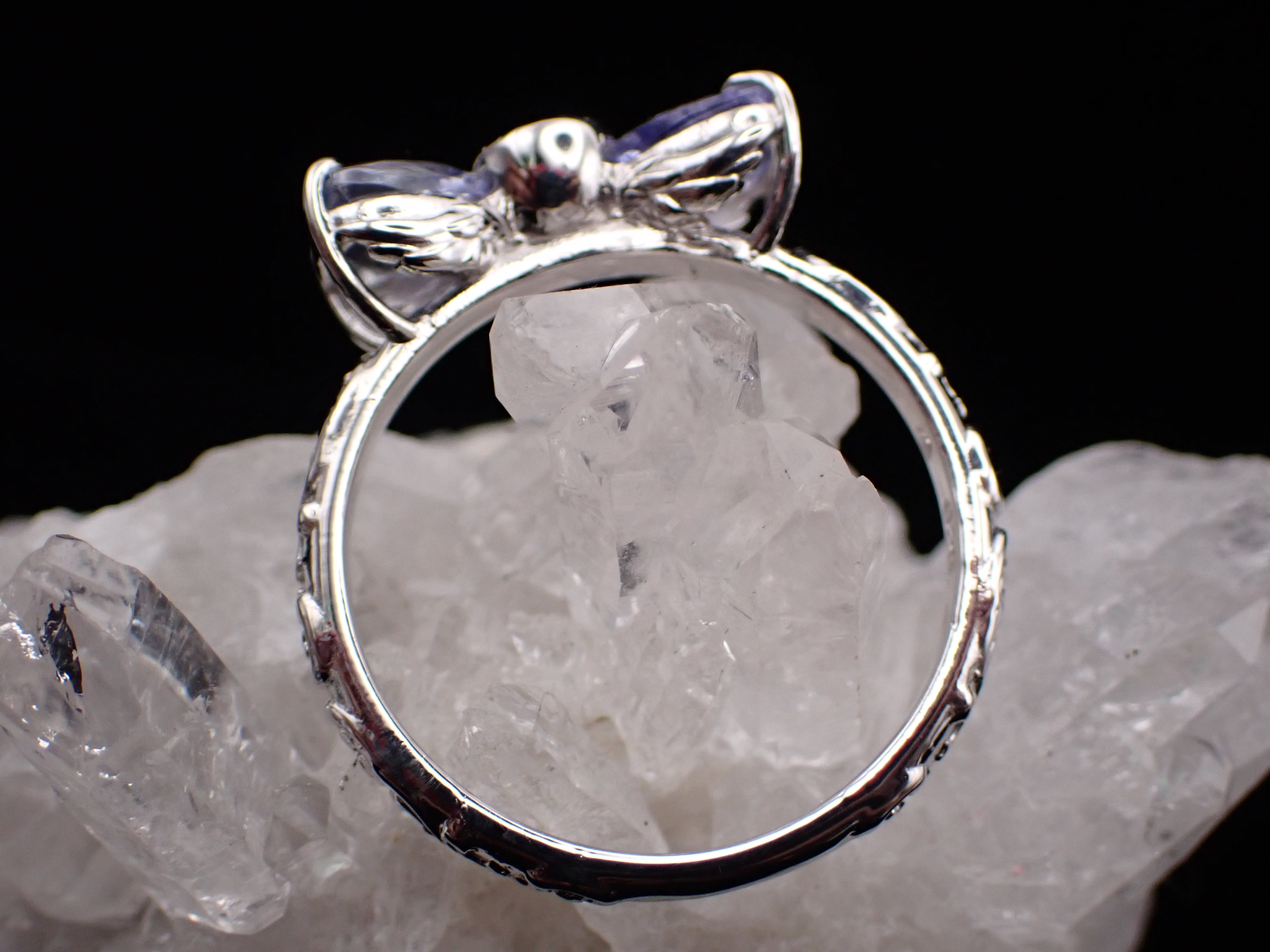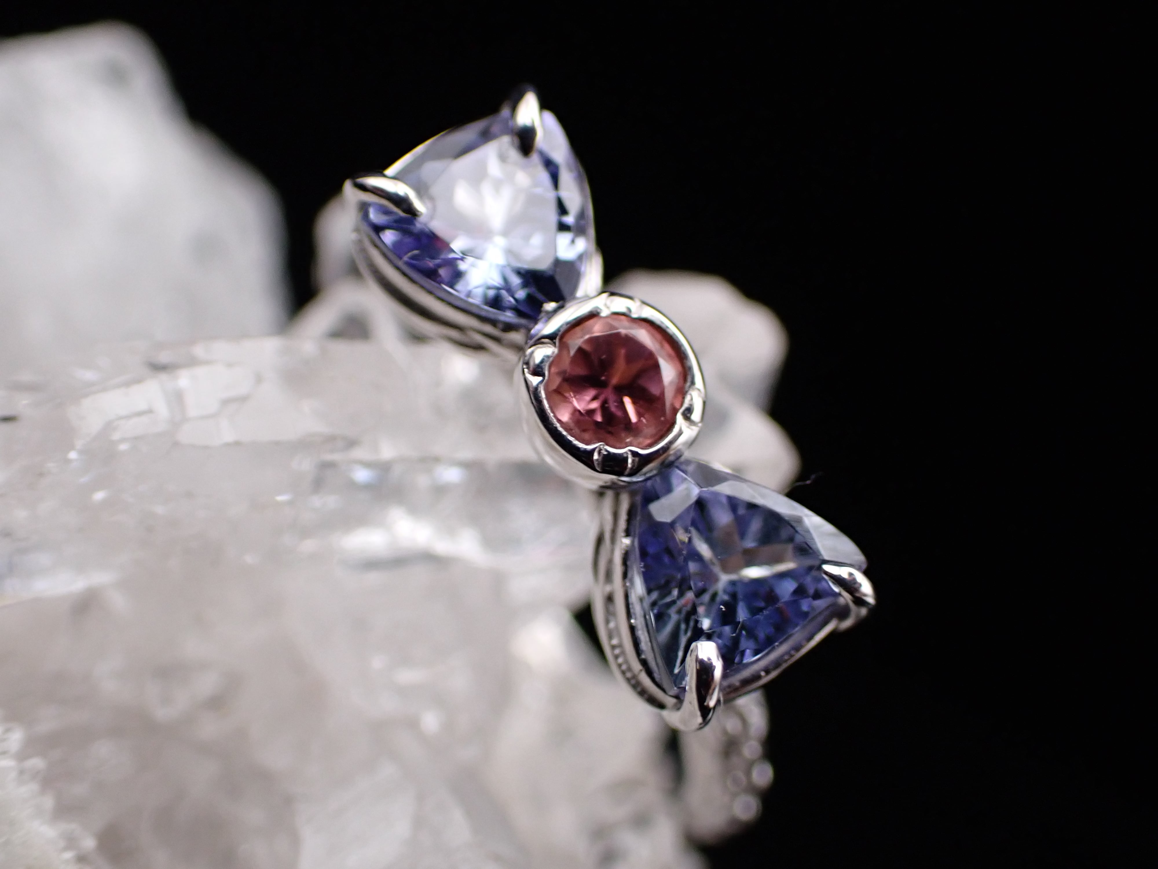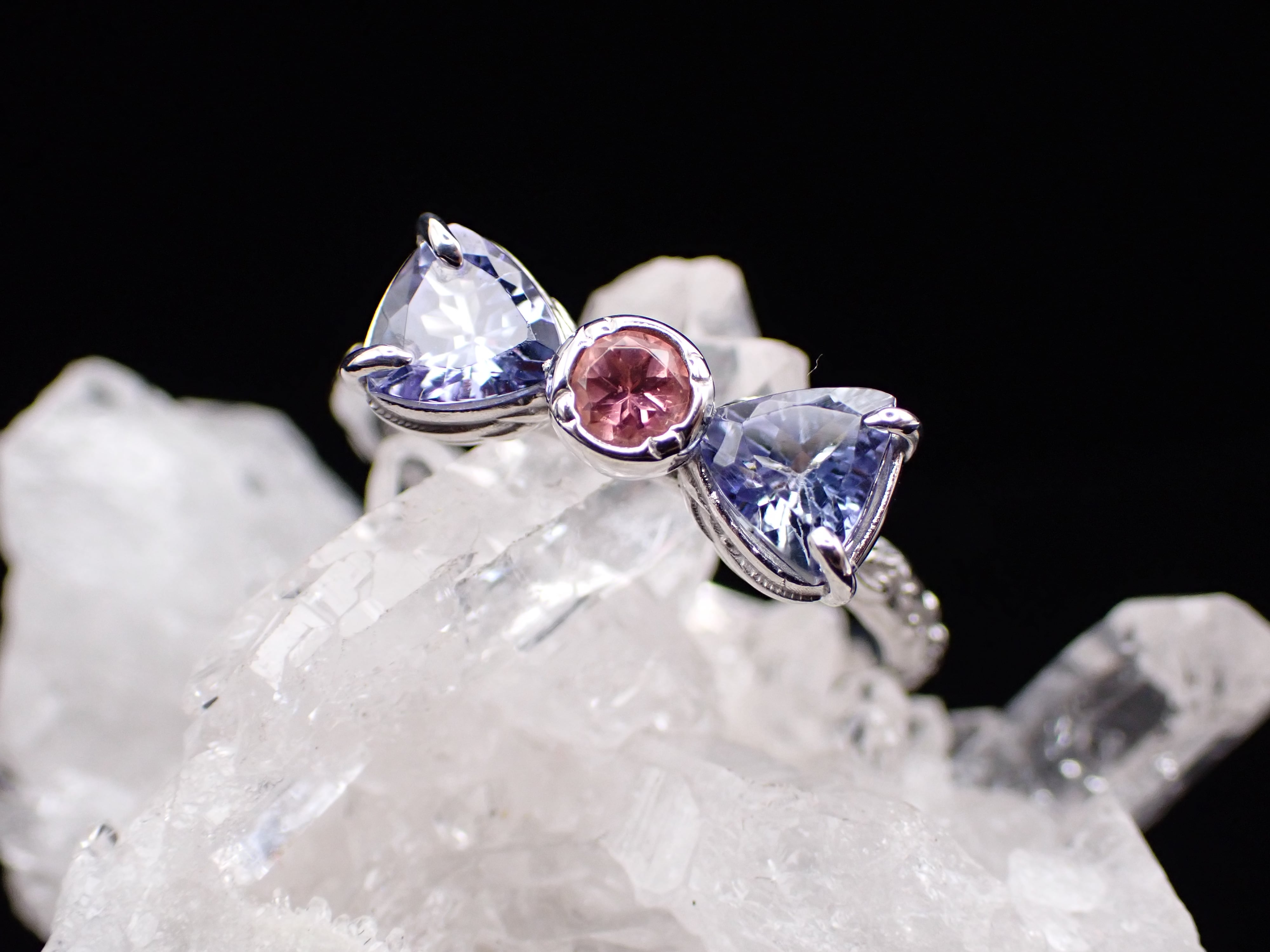 メインは淡いパープルのゾイサイト、中央の石は可愛らしいピンクトルマリンです。