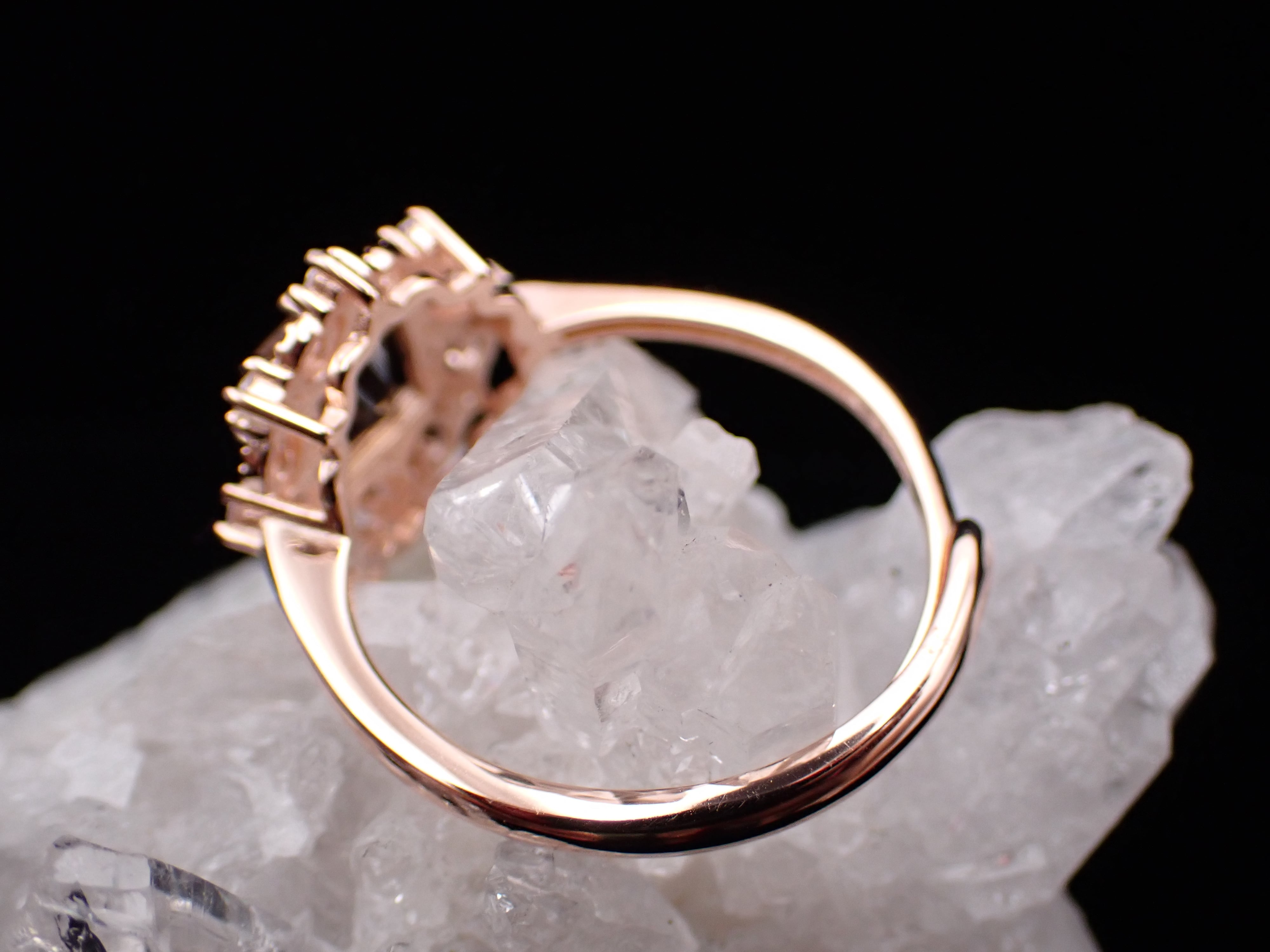 散りばめられたジルコニアたちがダイヤモンドダストの様に輝き、コンケーブカットを引き立てます。