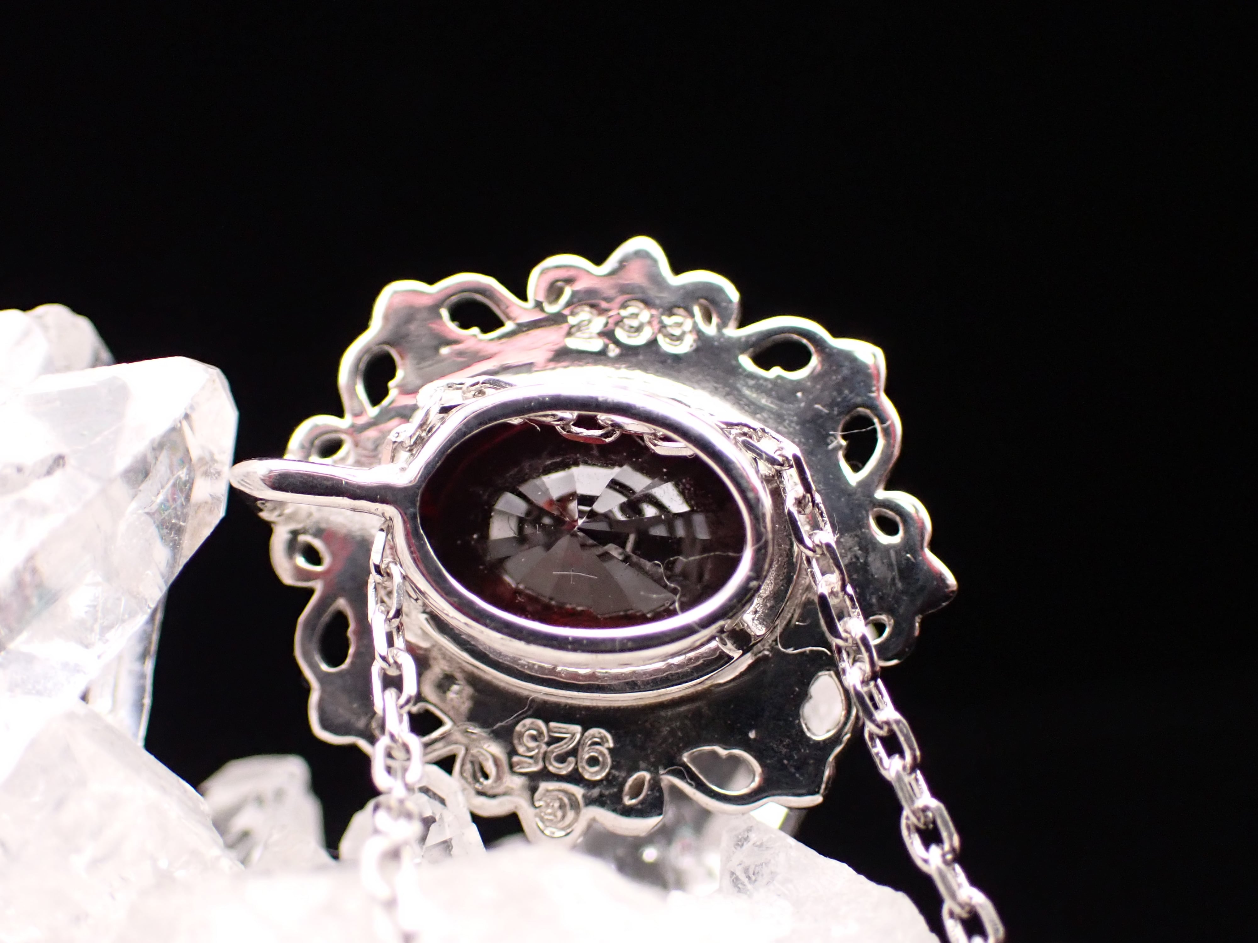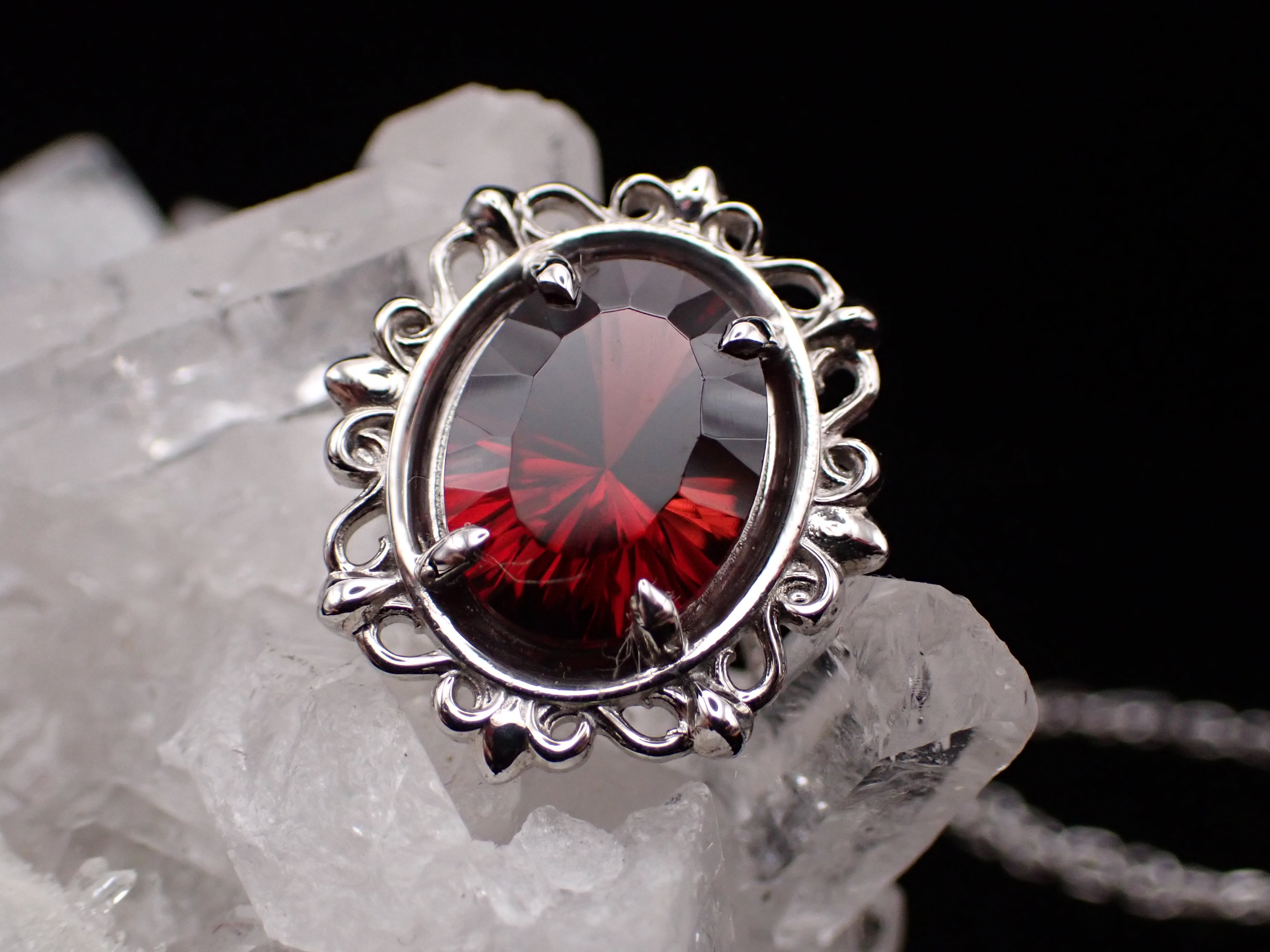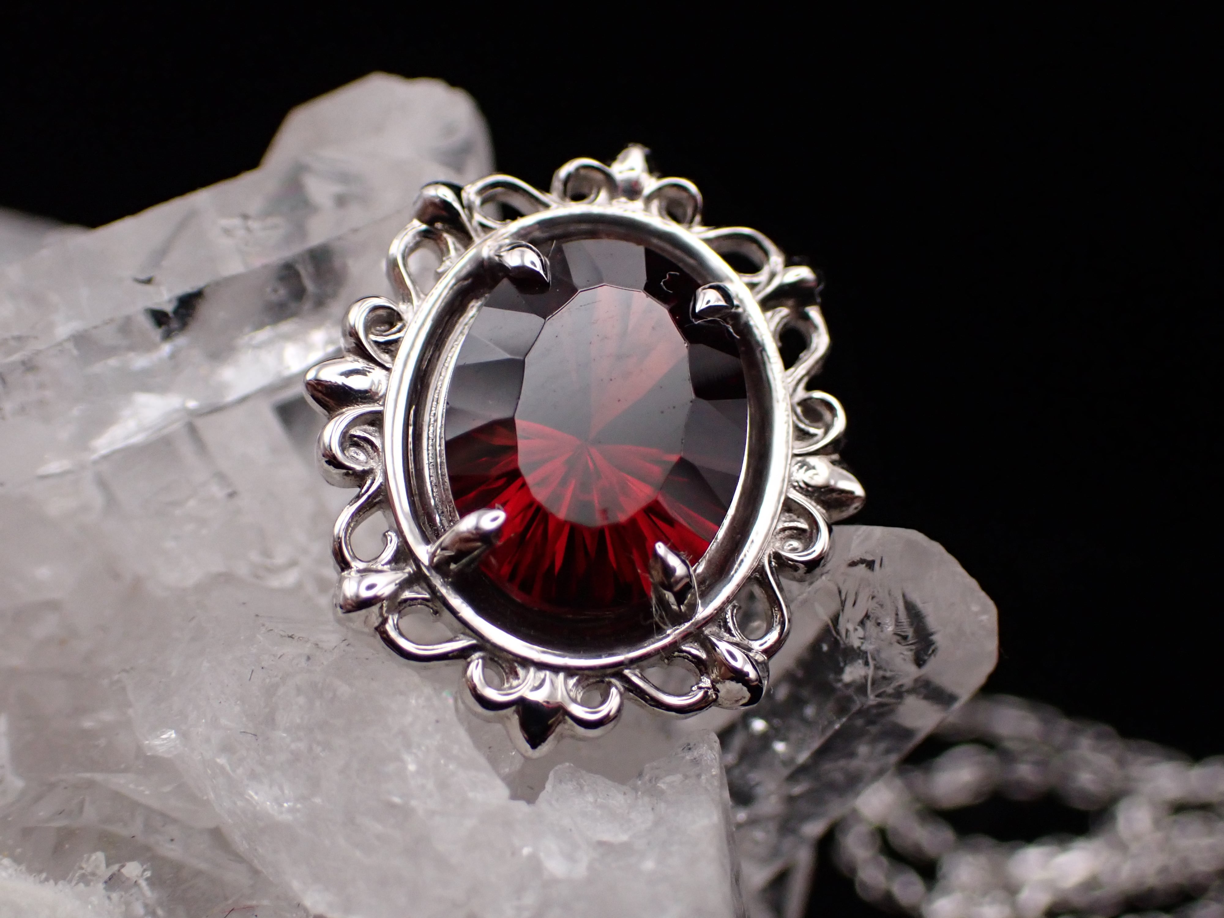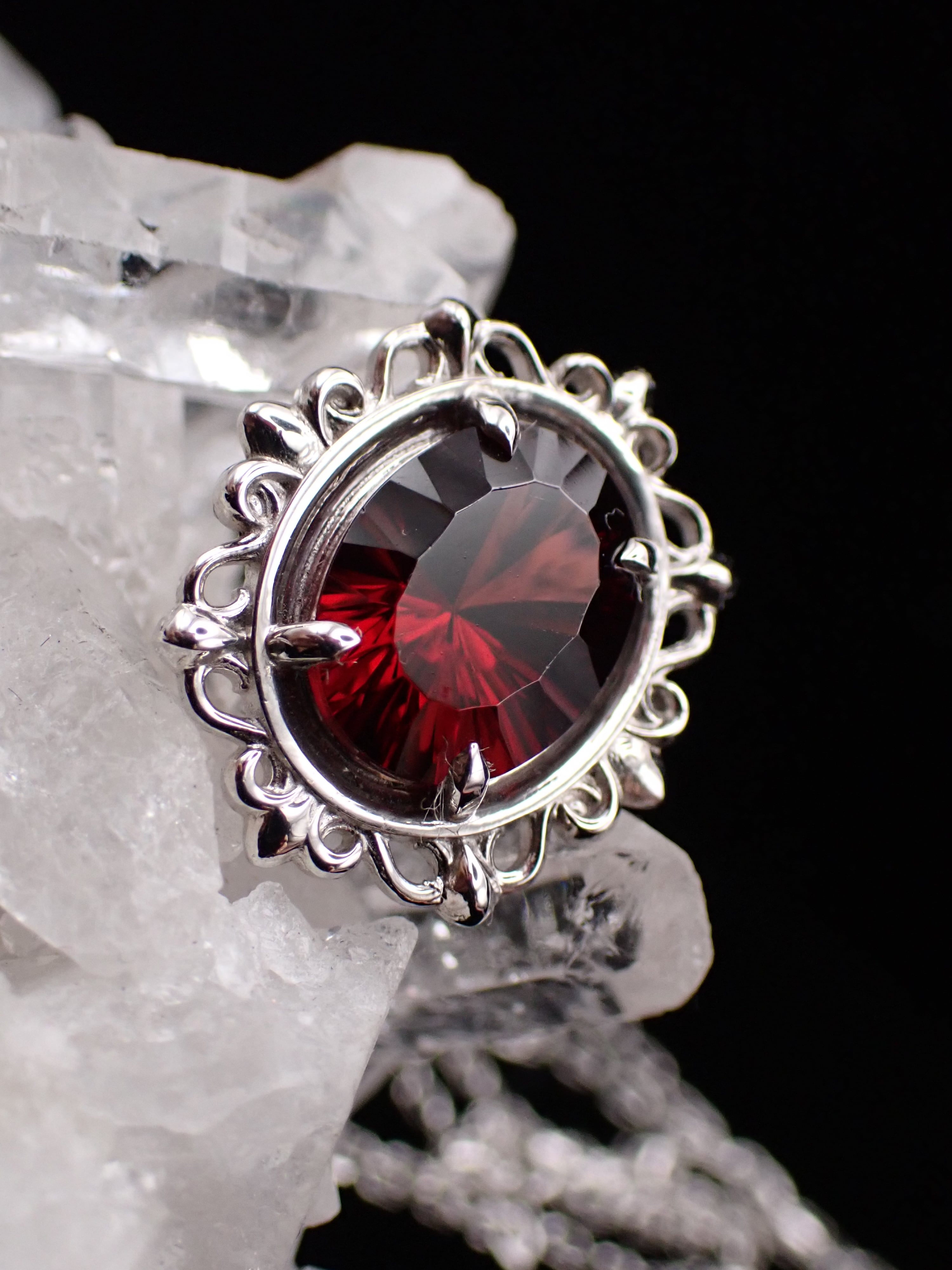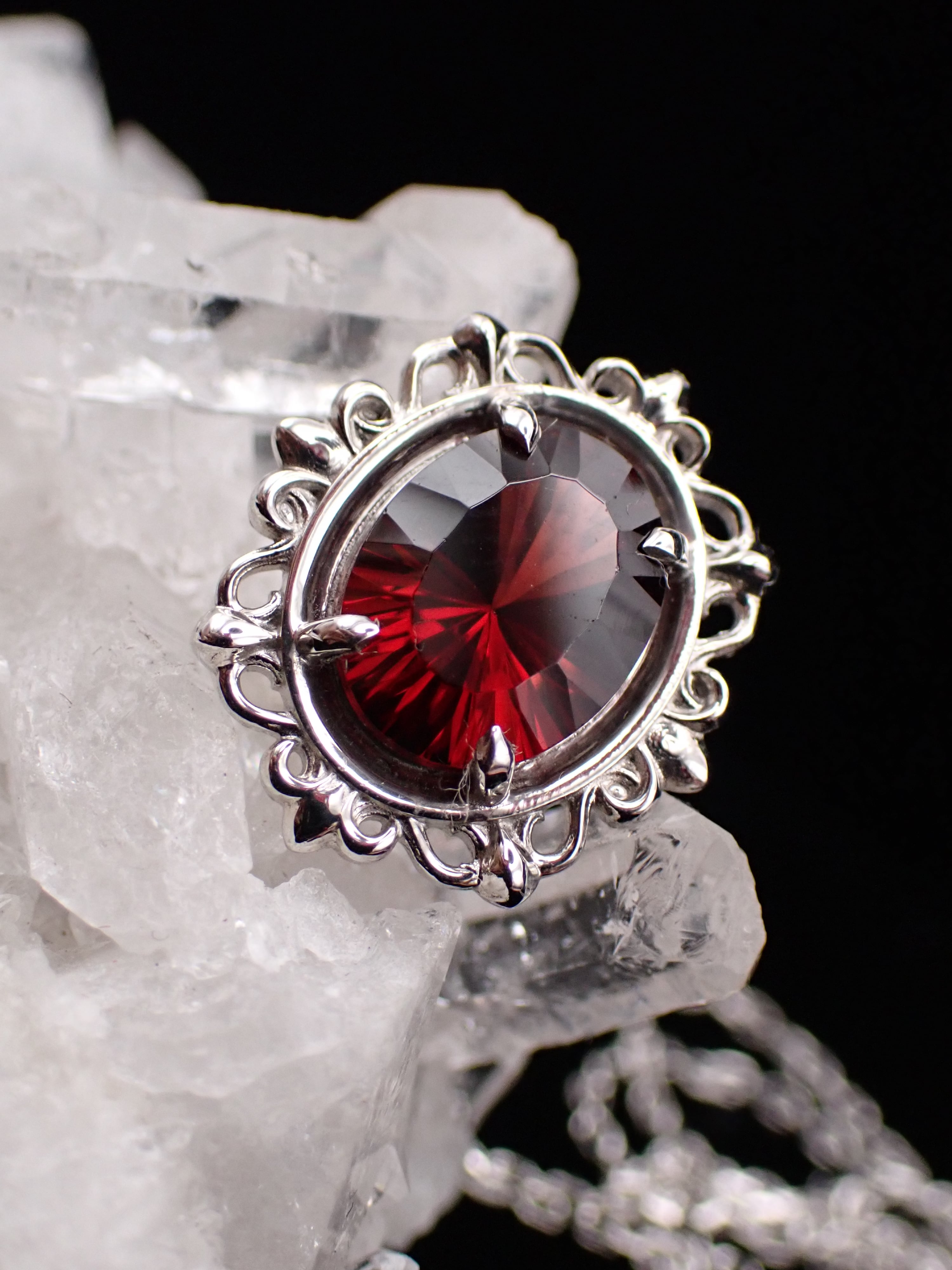 まるで石を絵画のように美しい額縁の中へ、深い赤のガーネットを納めました。