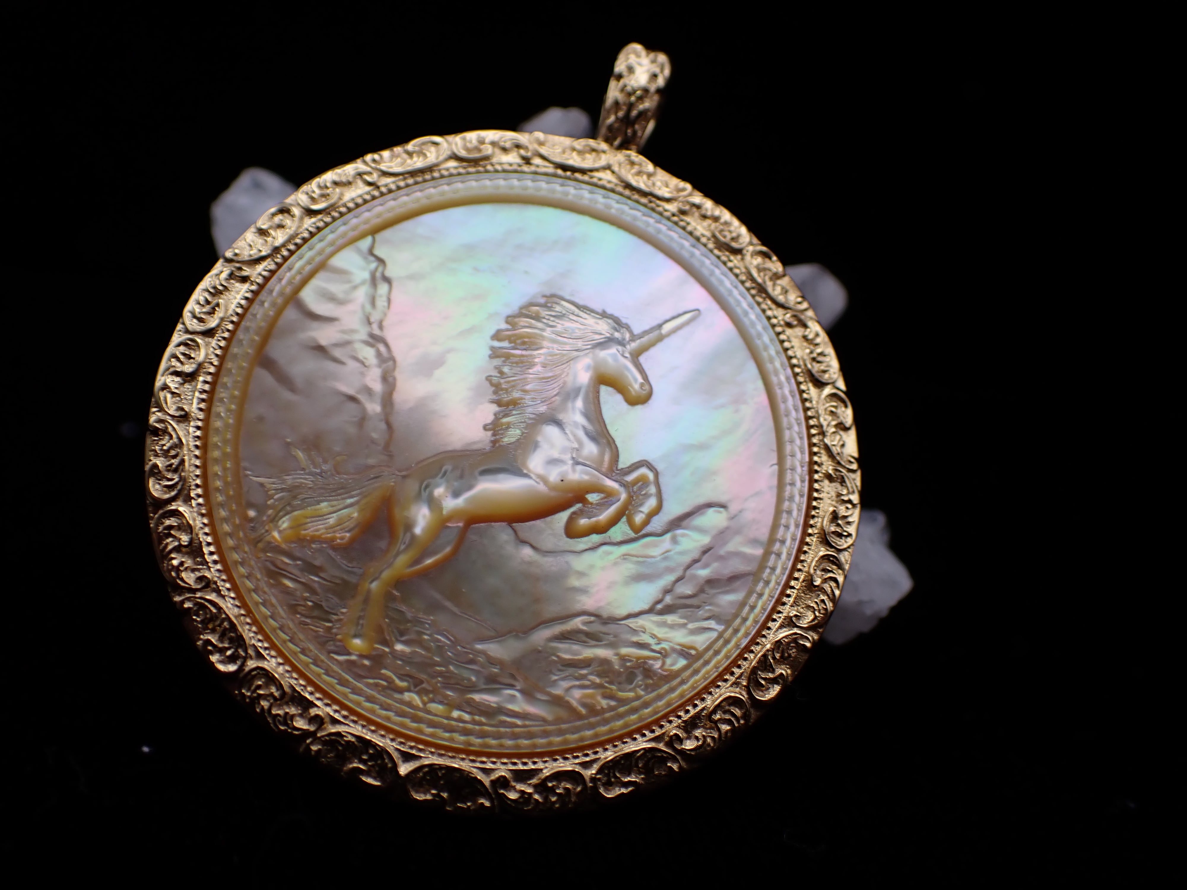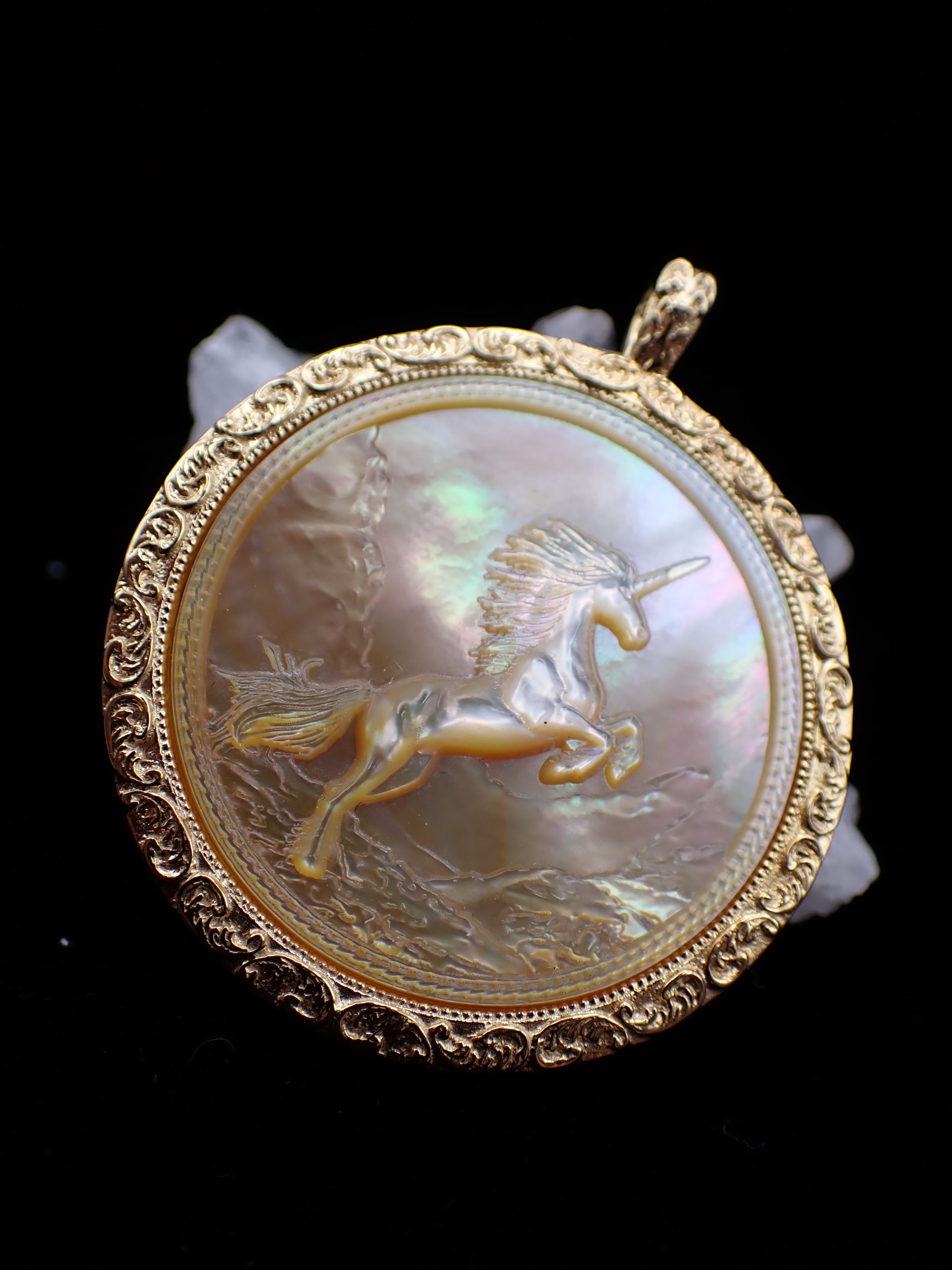 今年の干支、馬(ユニコーン)の美しいシェルペンダントです。