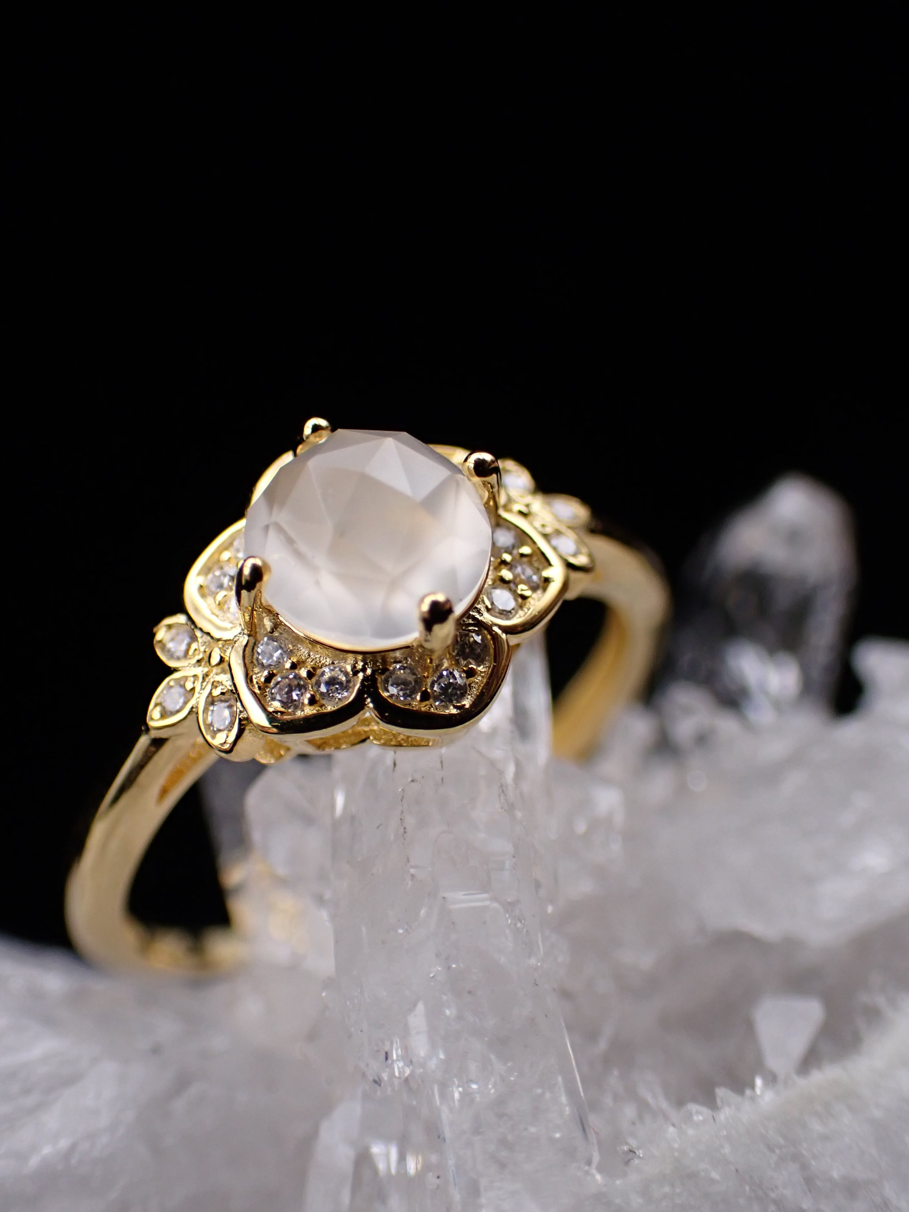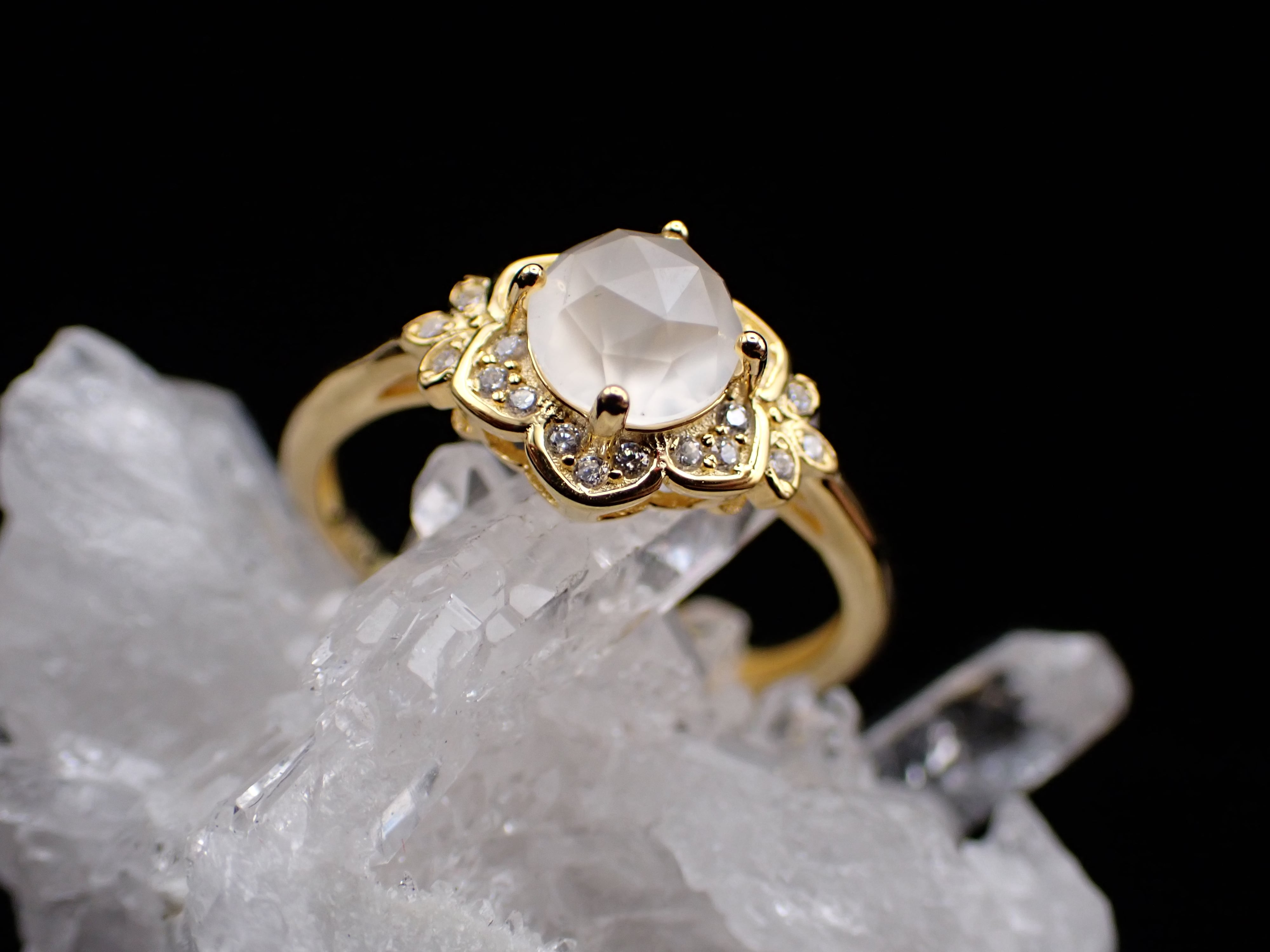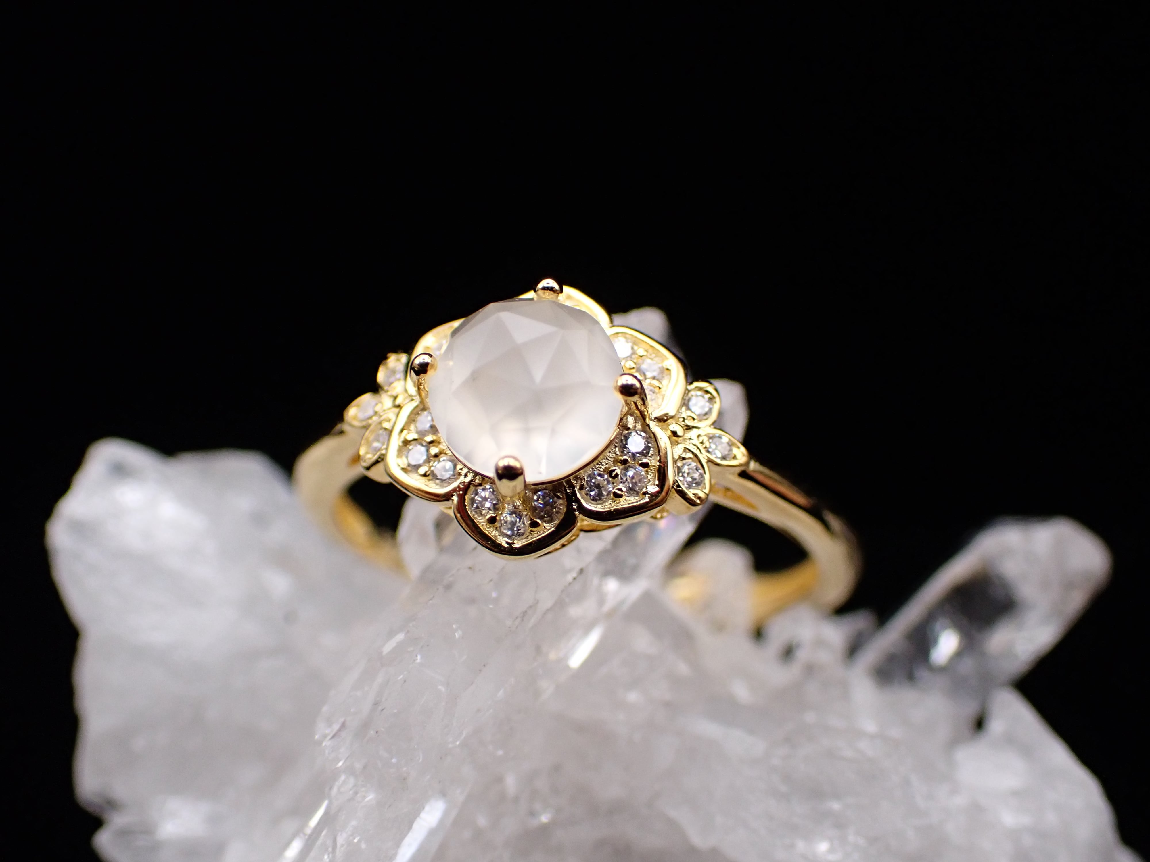 エピコットカットの淡く美しい輝きは、宝石なのにどこか柔らかくほんわかとした印象です。