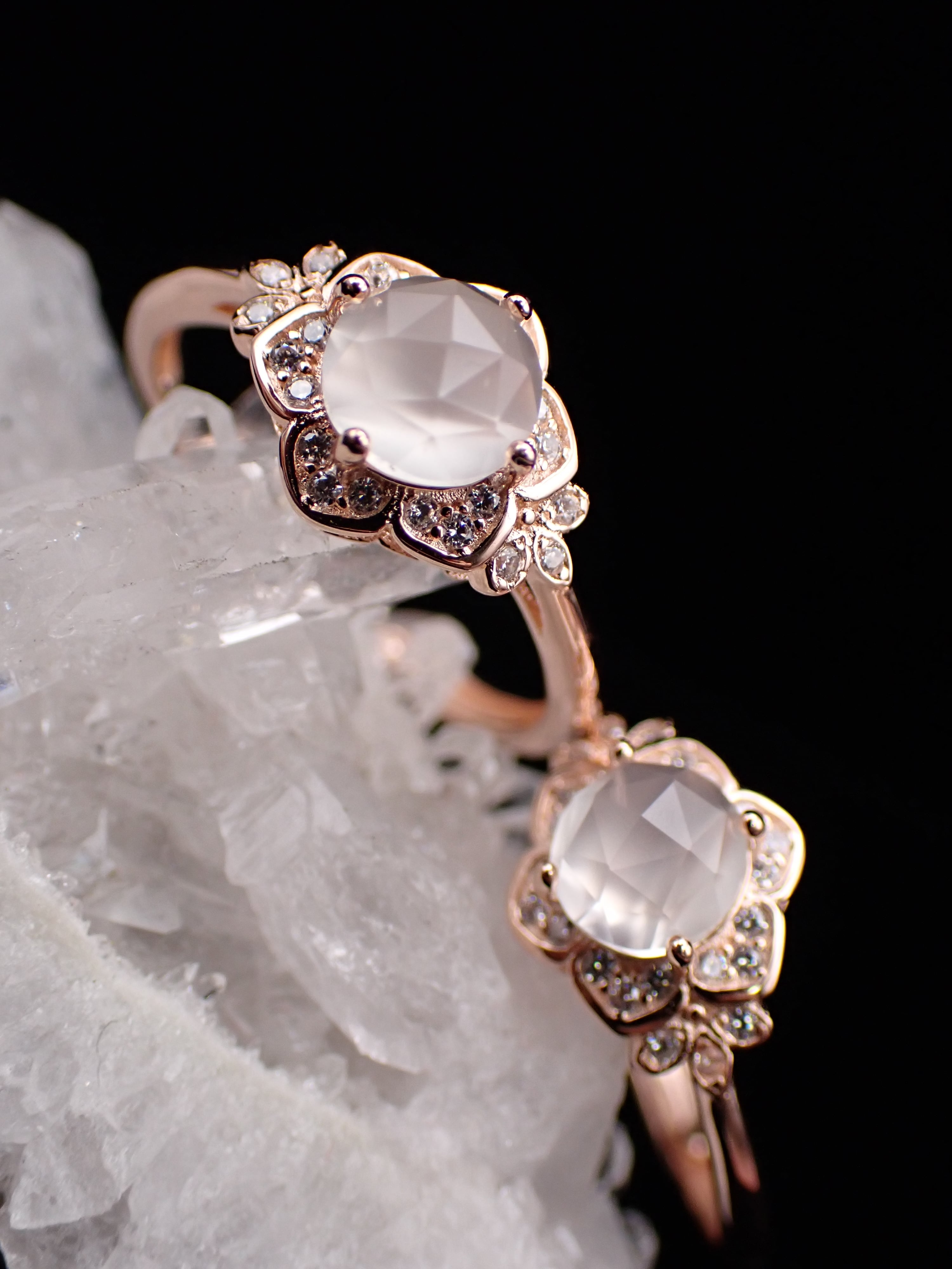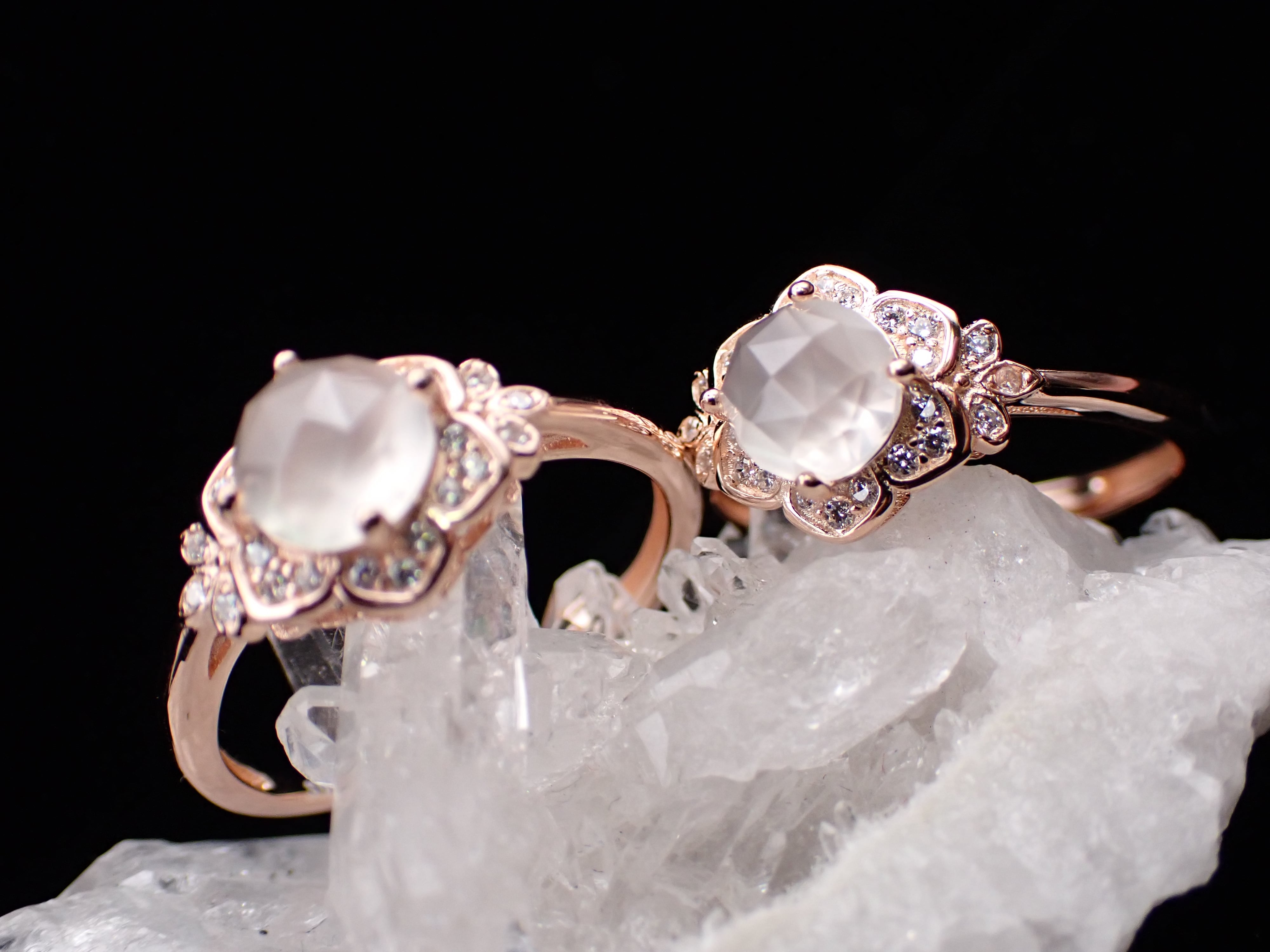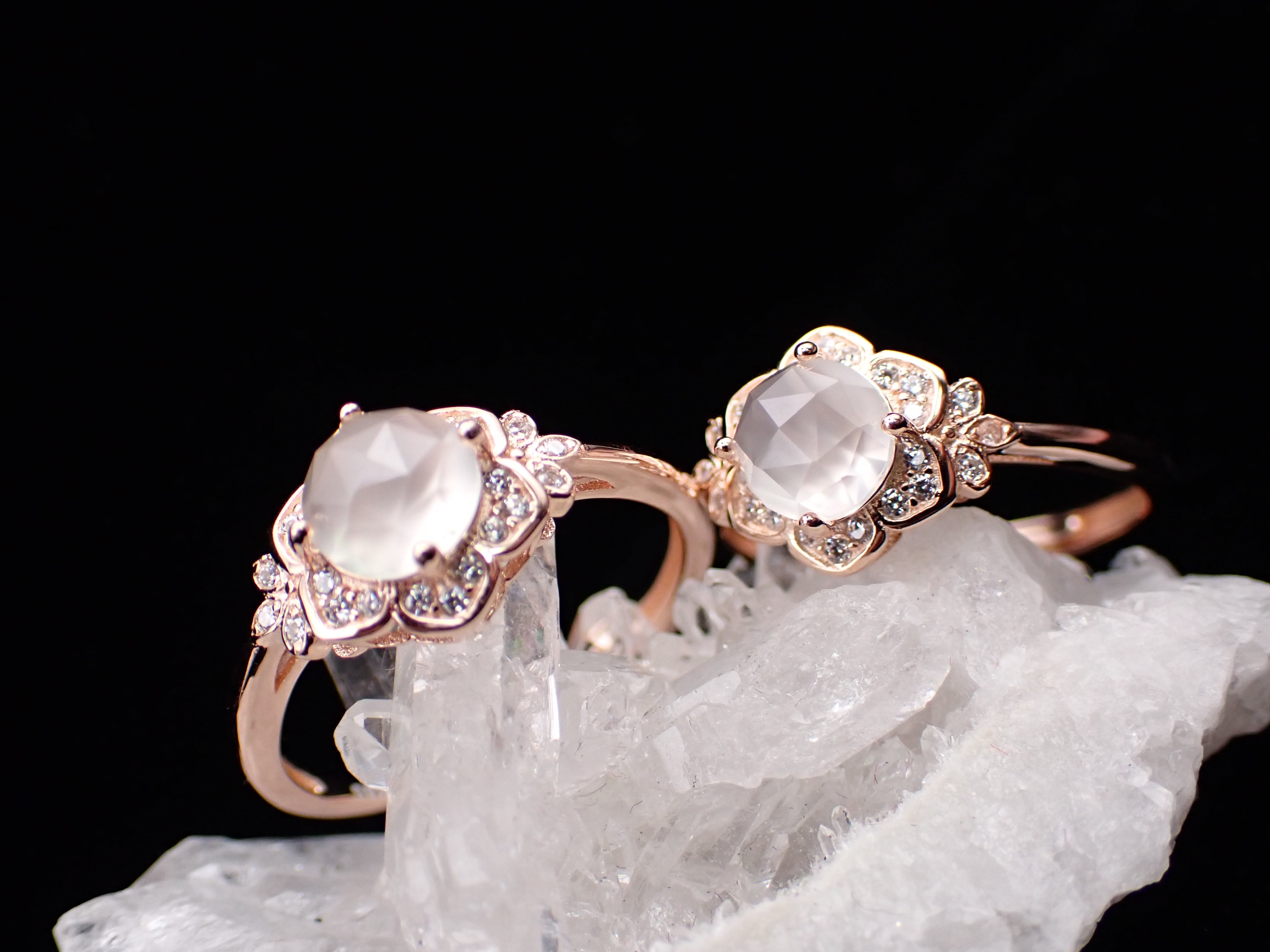 エピコットカットの淡く美しい輝きは、宝石なのにどこか柔らかくほんわかとした印象です。