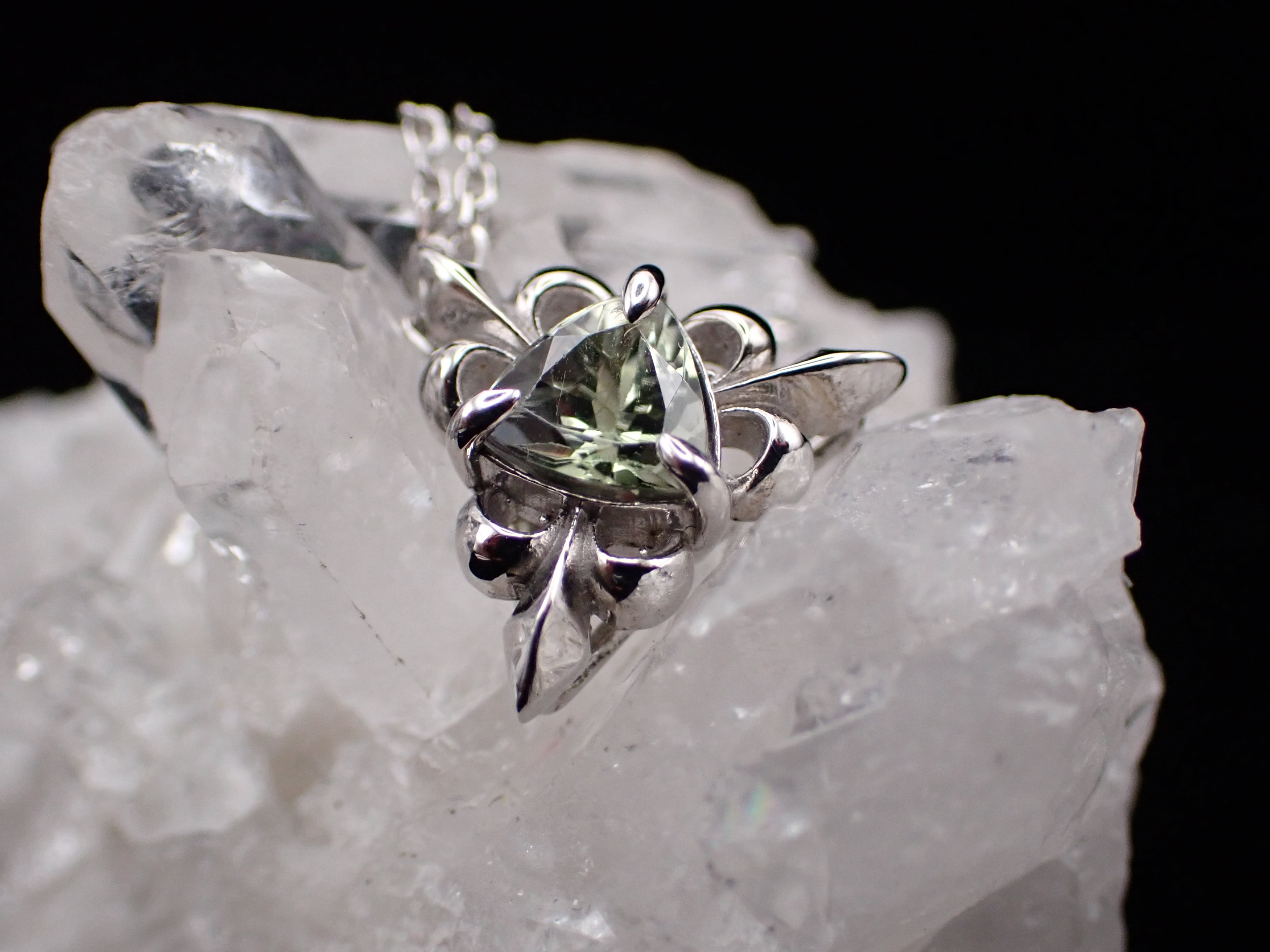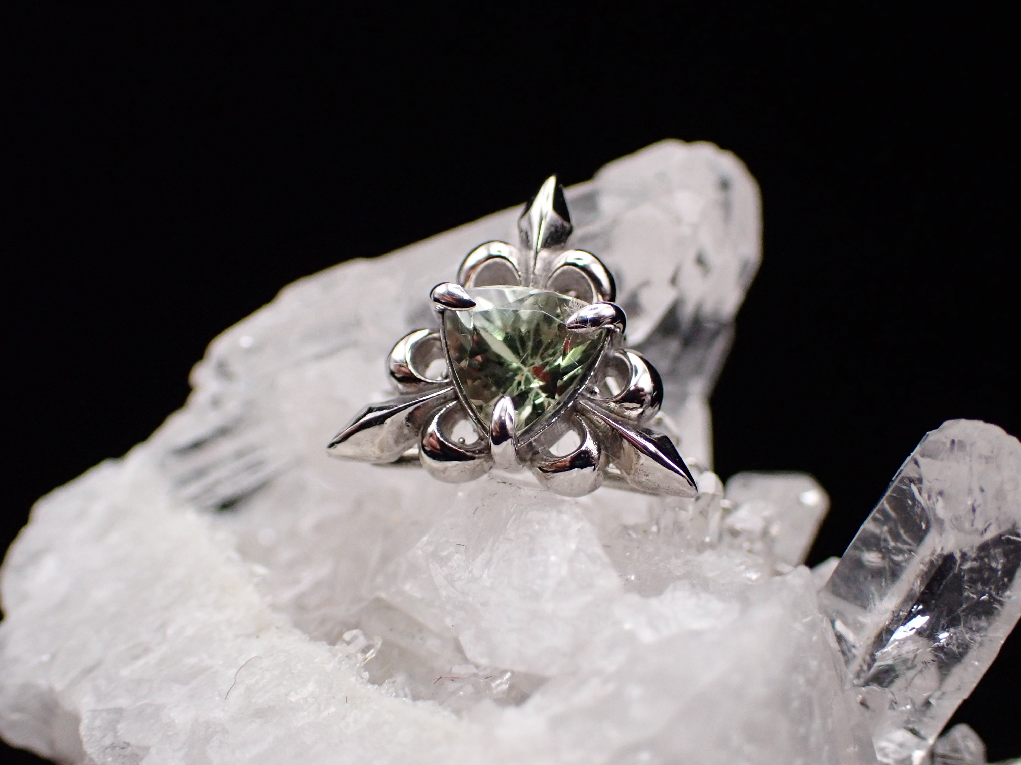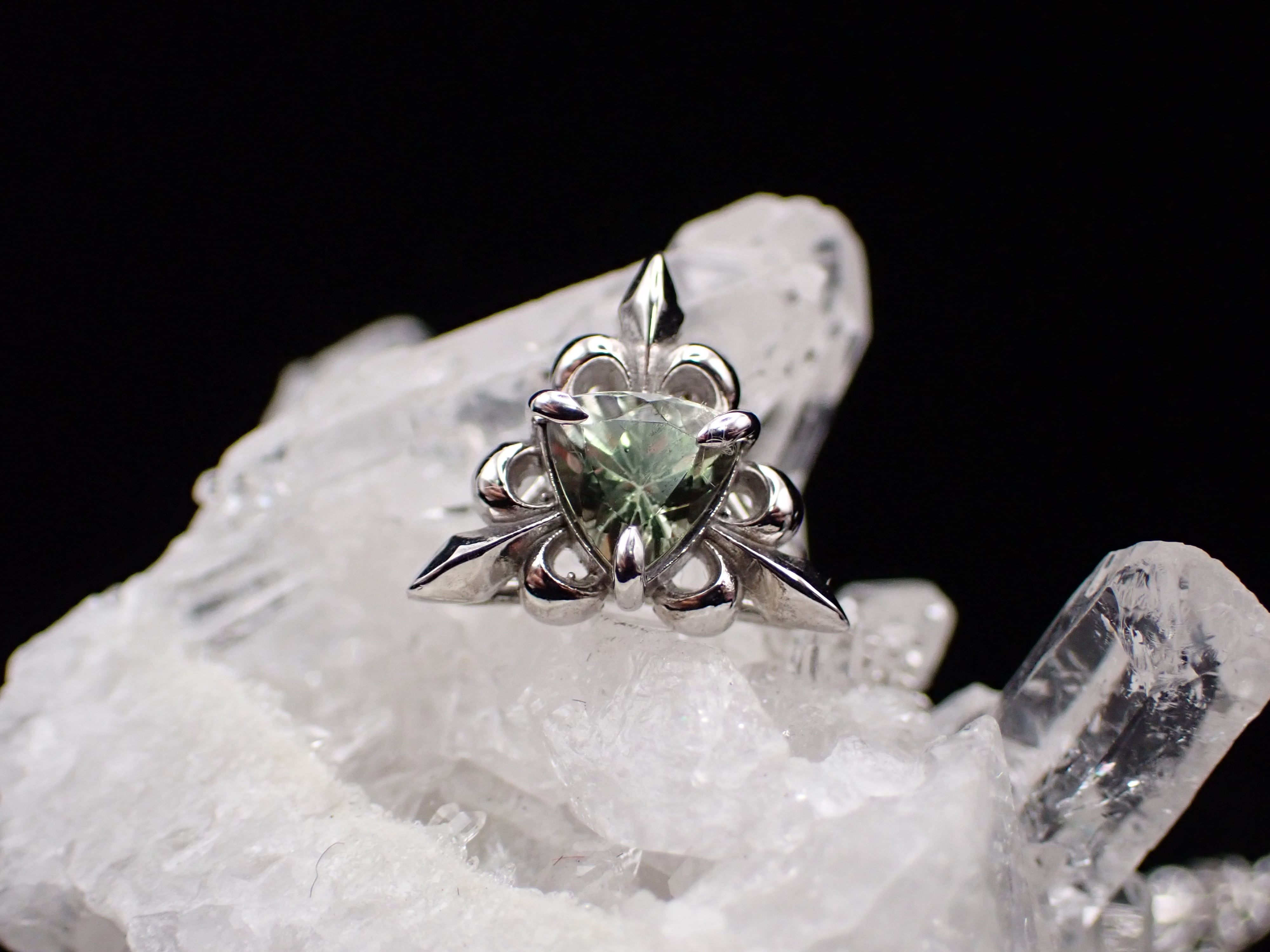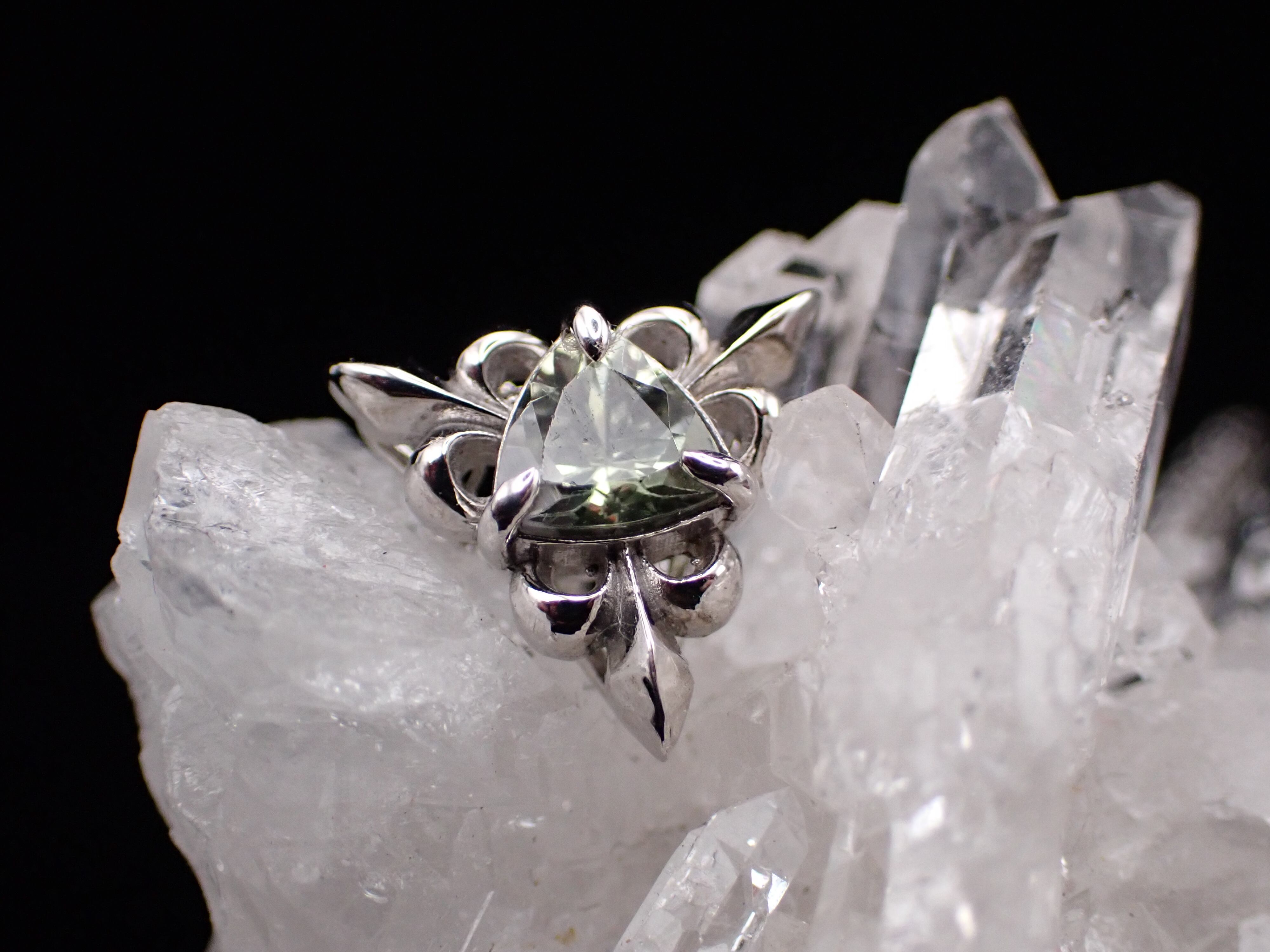 まるで絵画のように美しい百合の紋章の額縁に、澄んだゾイサイトを納めました。