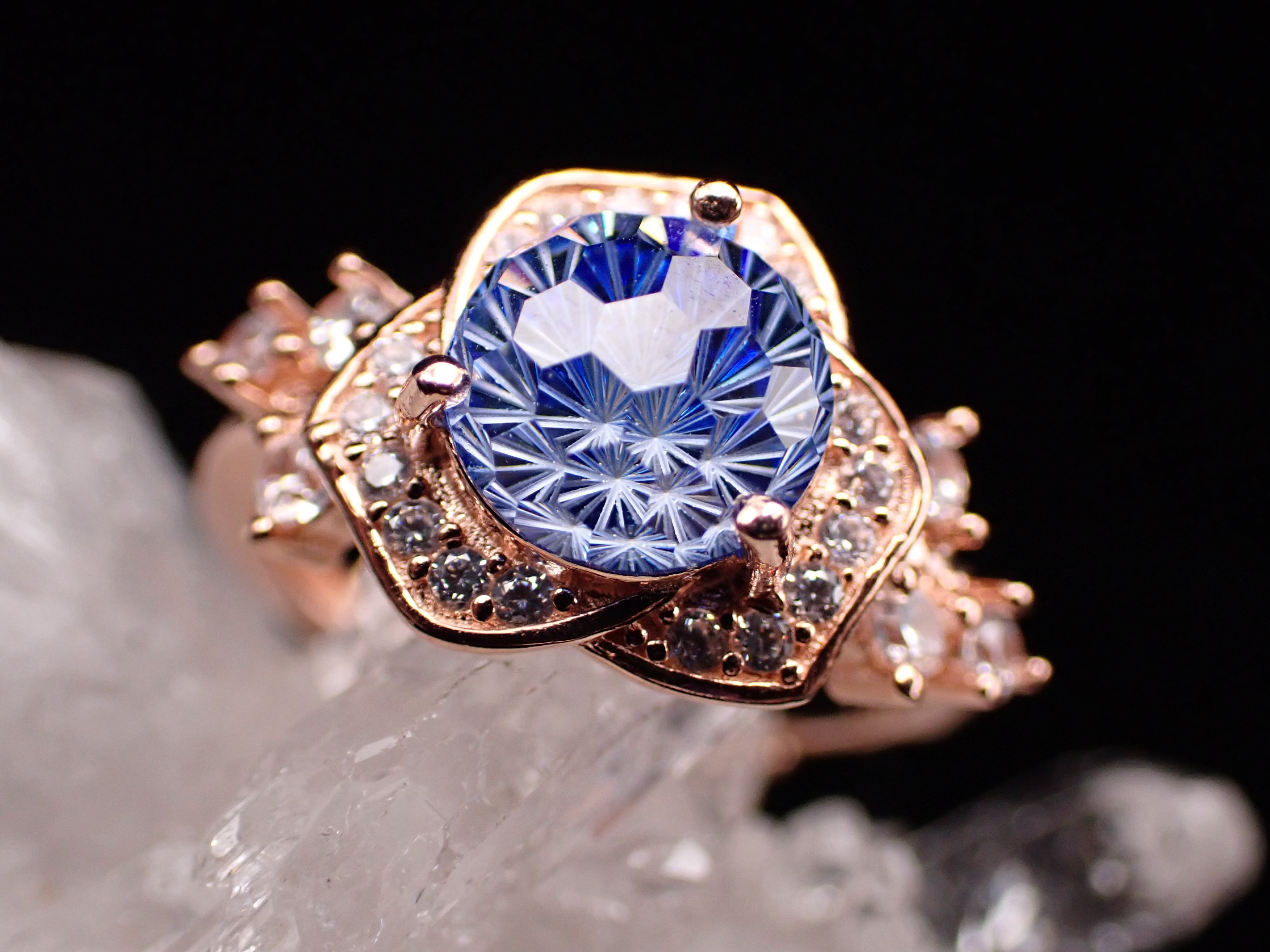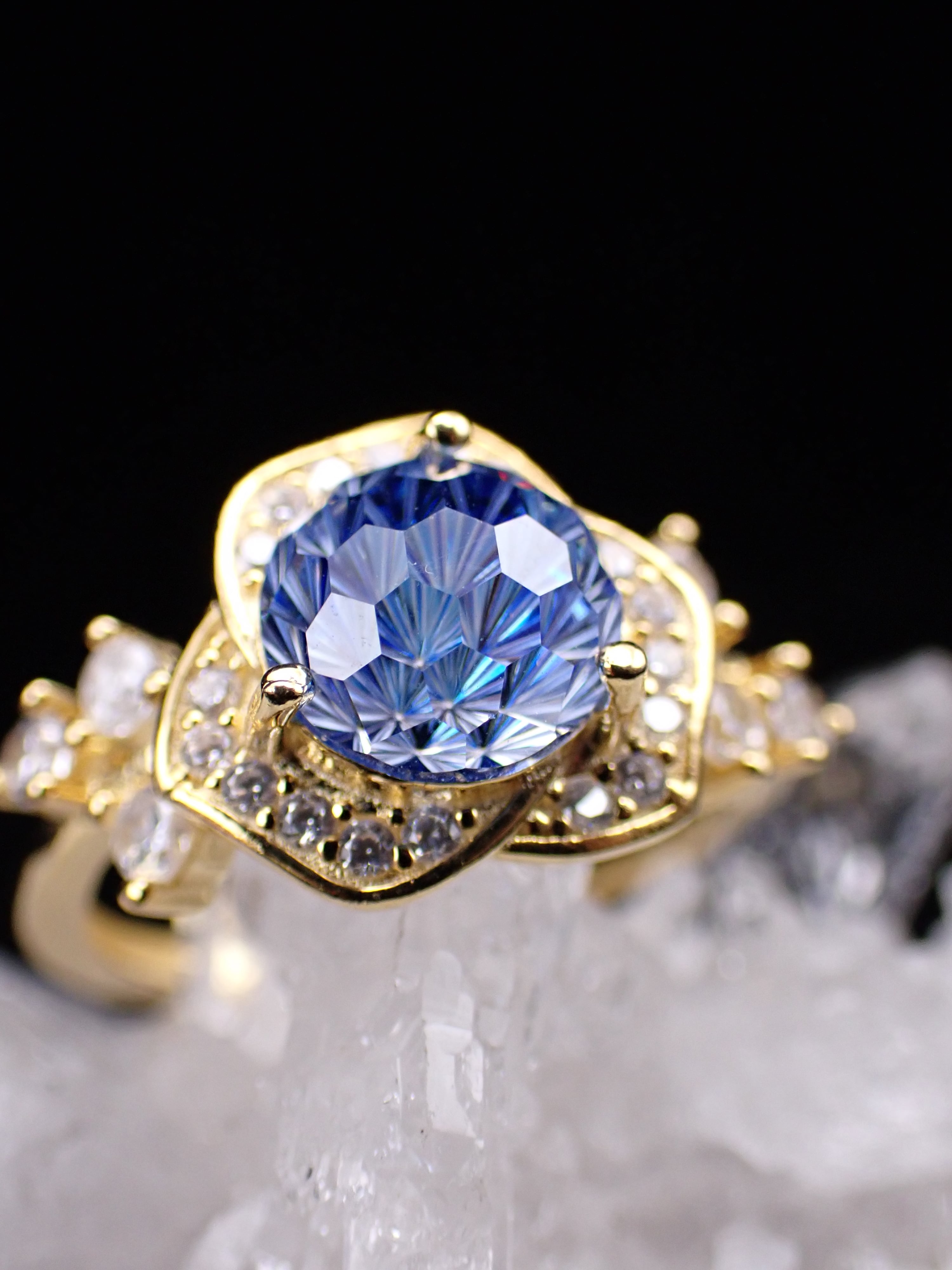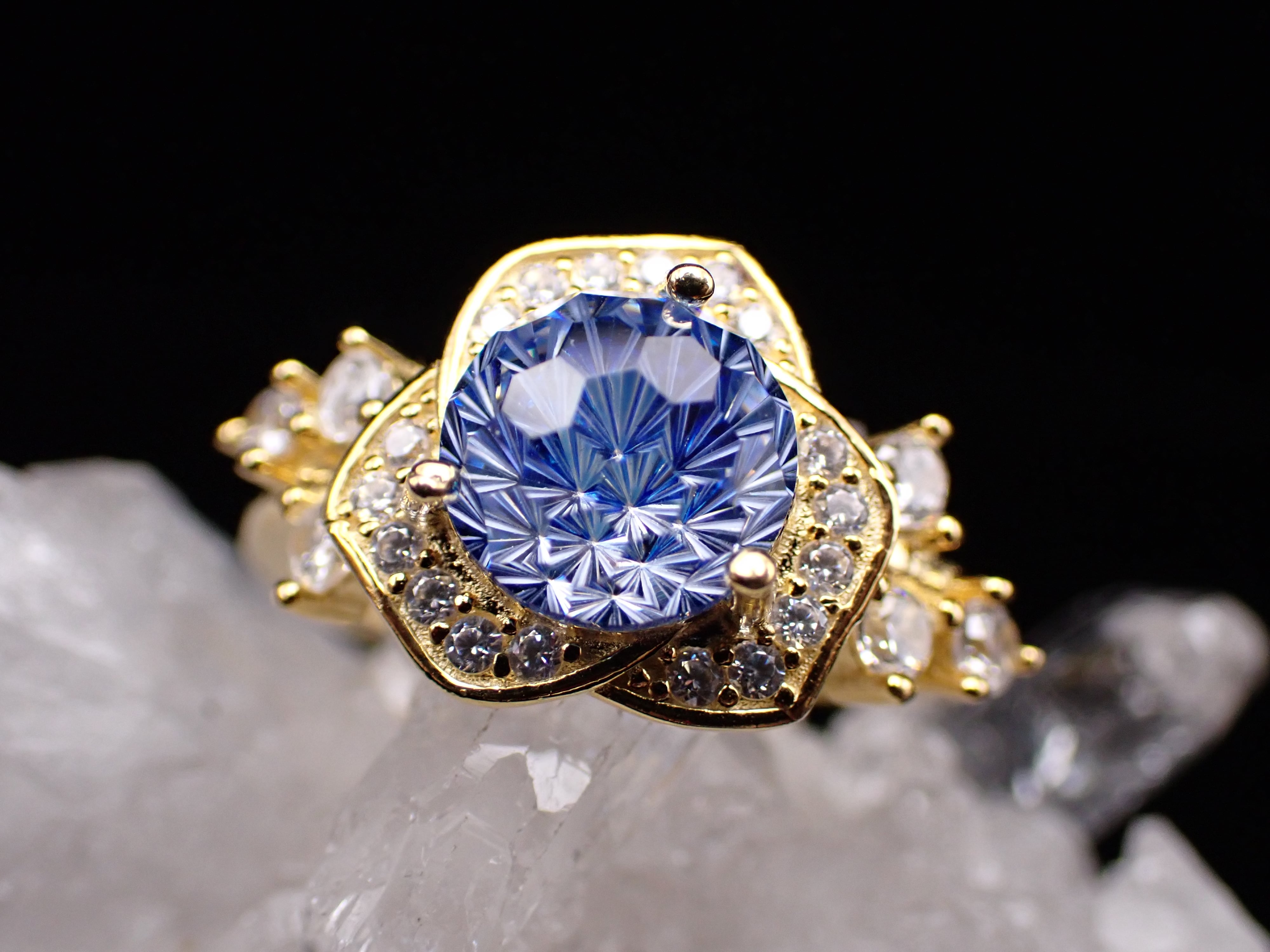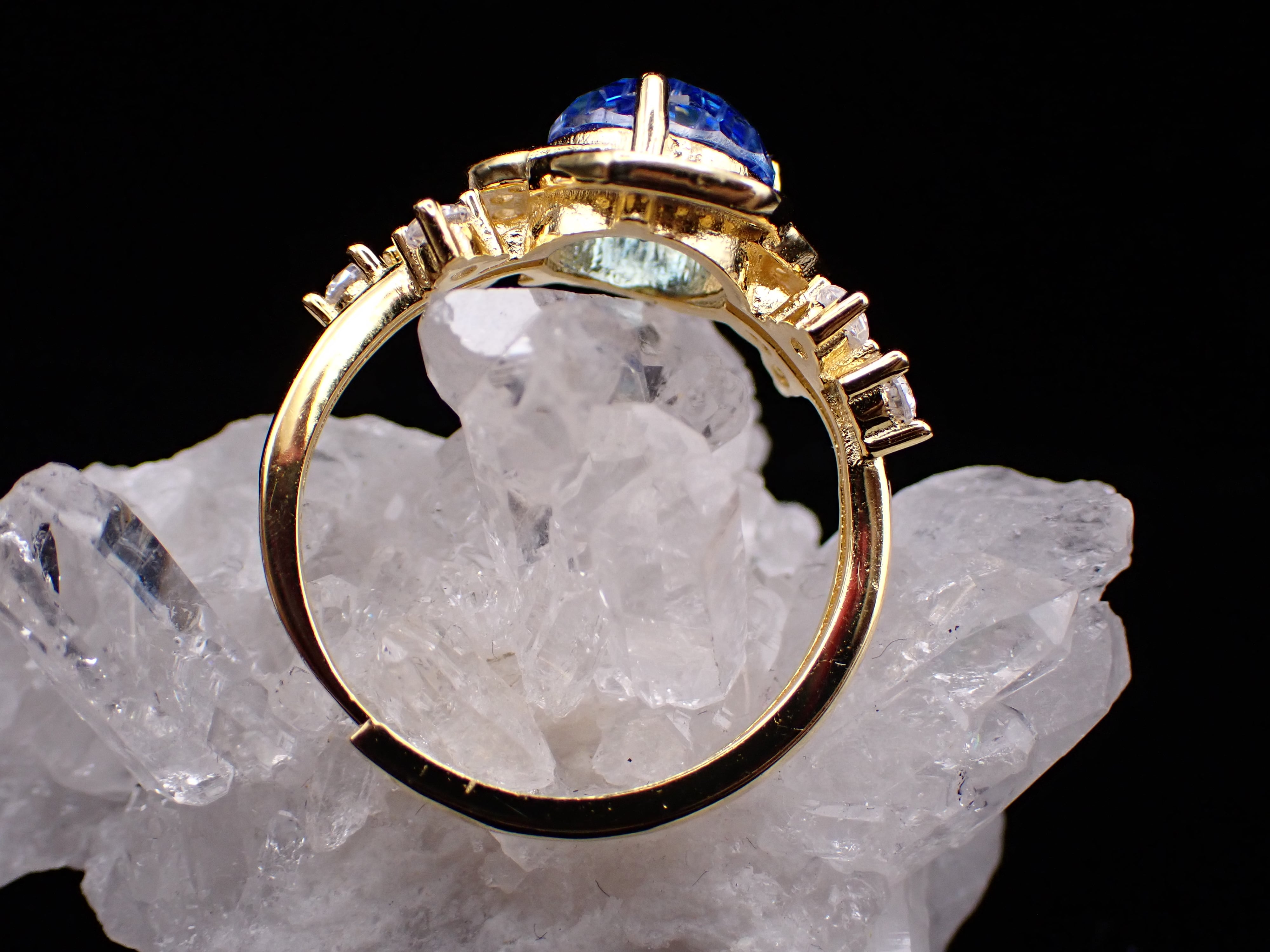 薔薇ring ✴︎ 花火カット×クリアブルー フリーサイズリングYG