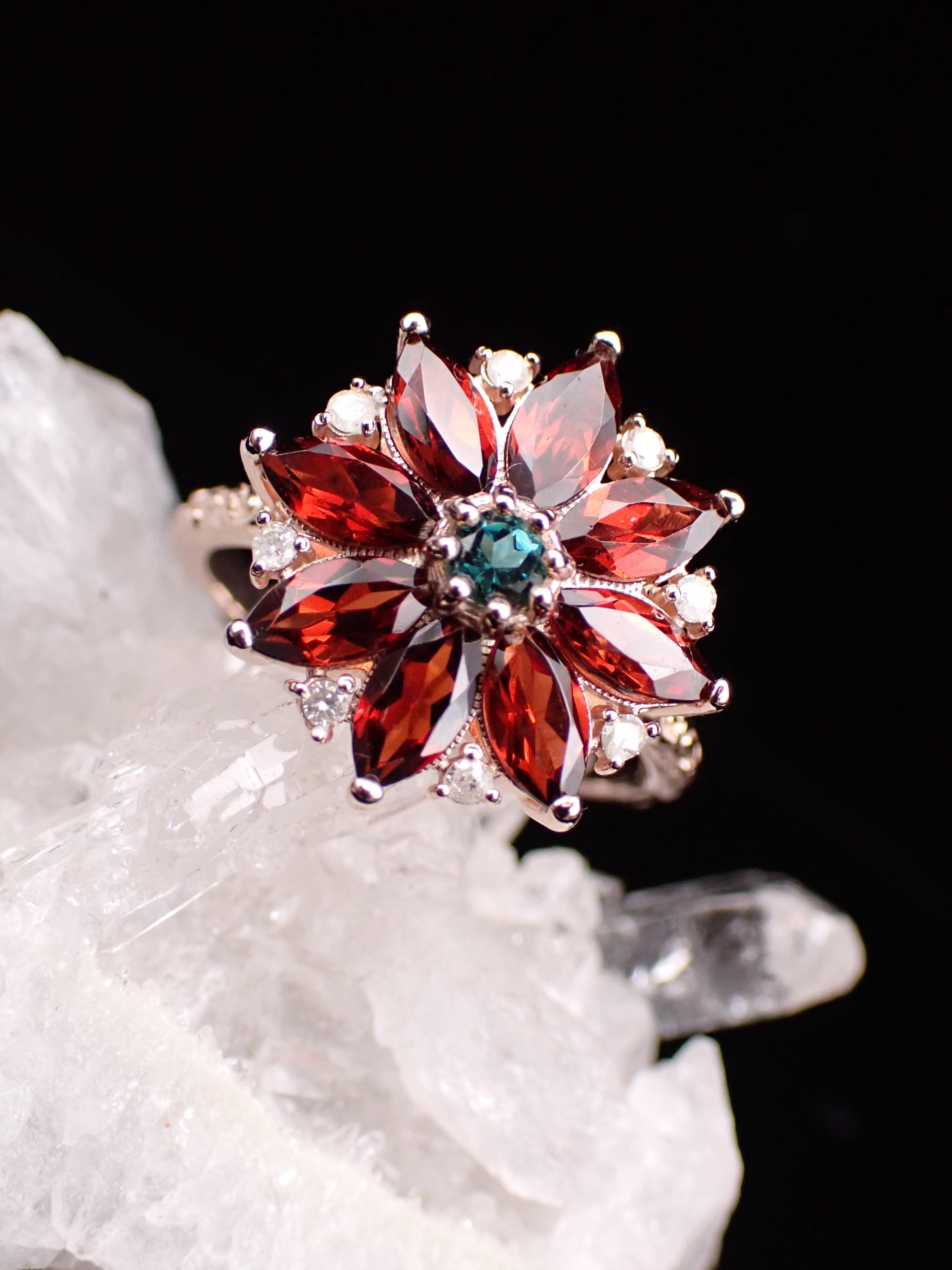 【 R.nouveau 】Poinsettia ring✳︎Full Bloom✳︎ガーネット&グリーントルマリンPG 13.5号