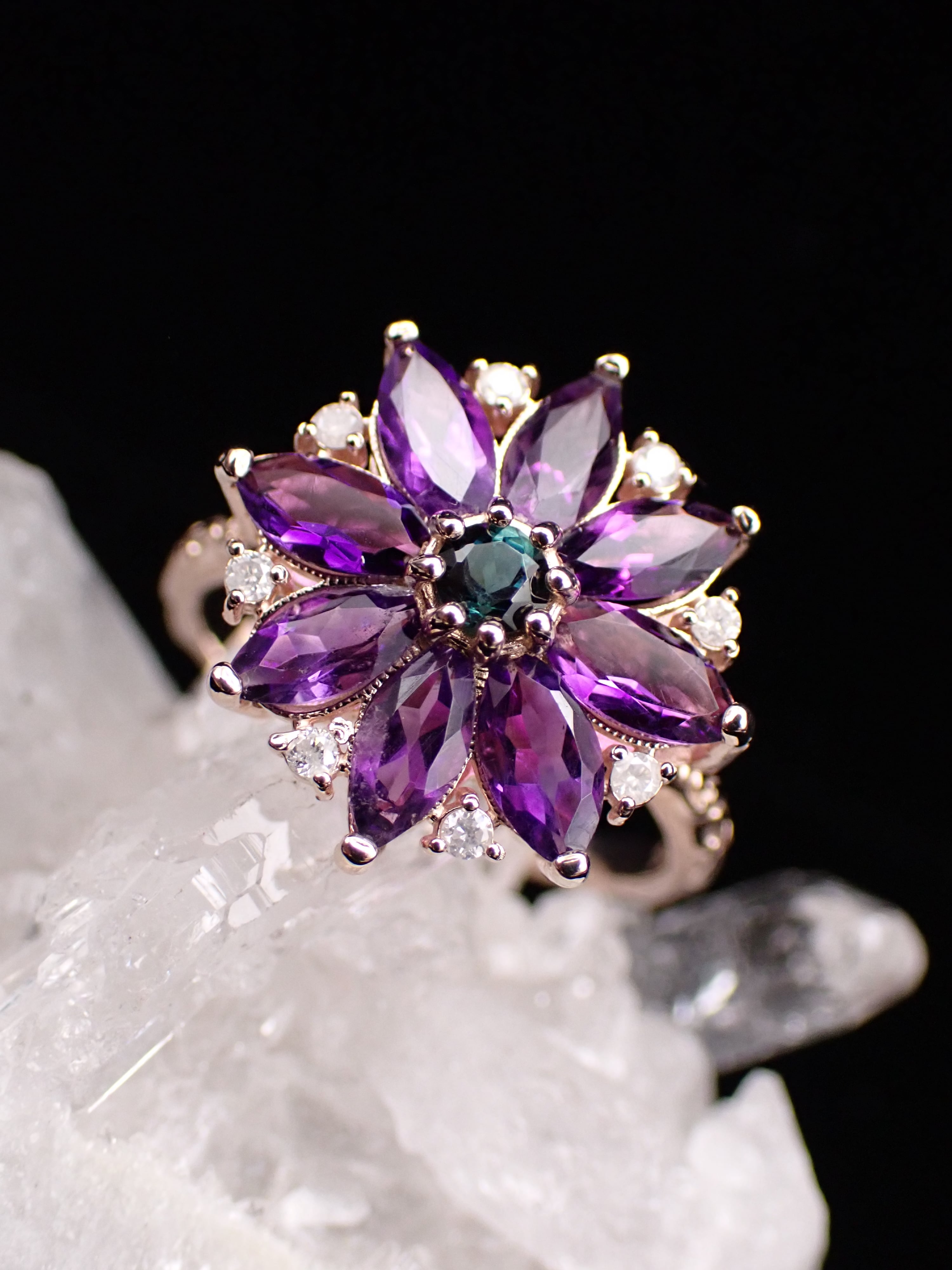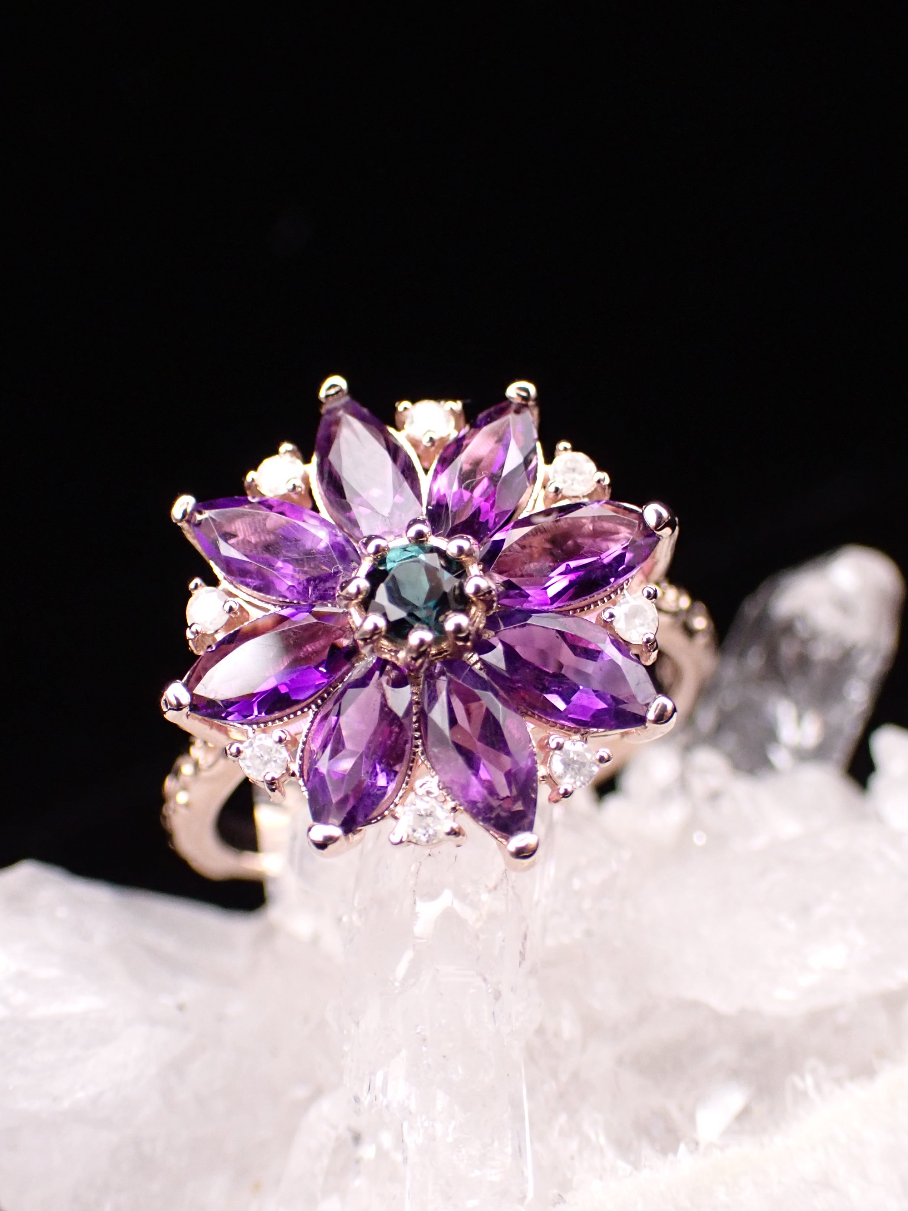 【 R.nouveau 】Poinsettia ring✳︎Full Bloom✳︎アメジスト&グリーントルマリンPG 13.5号