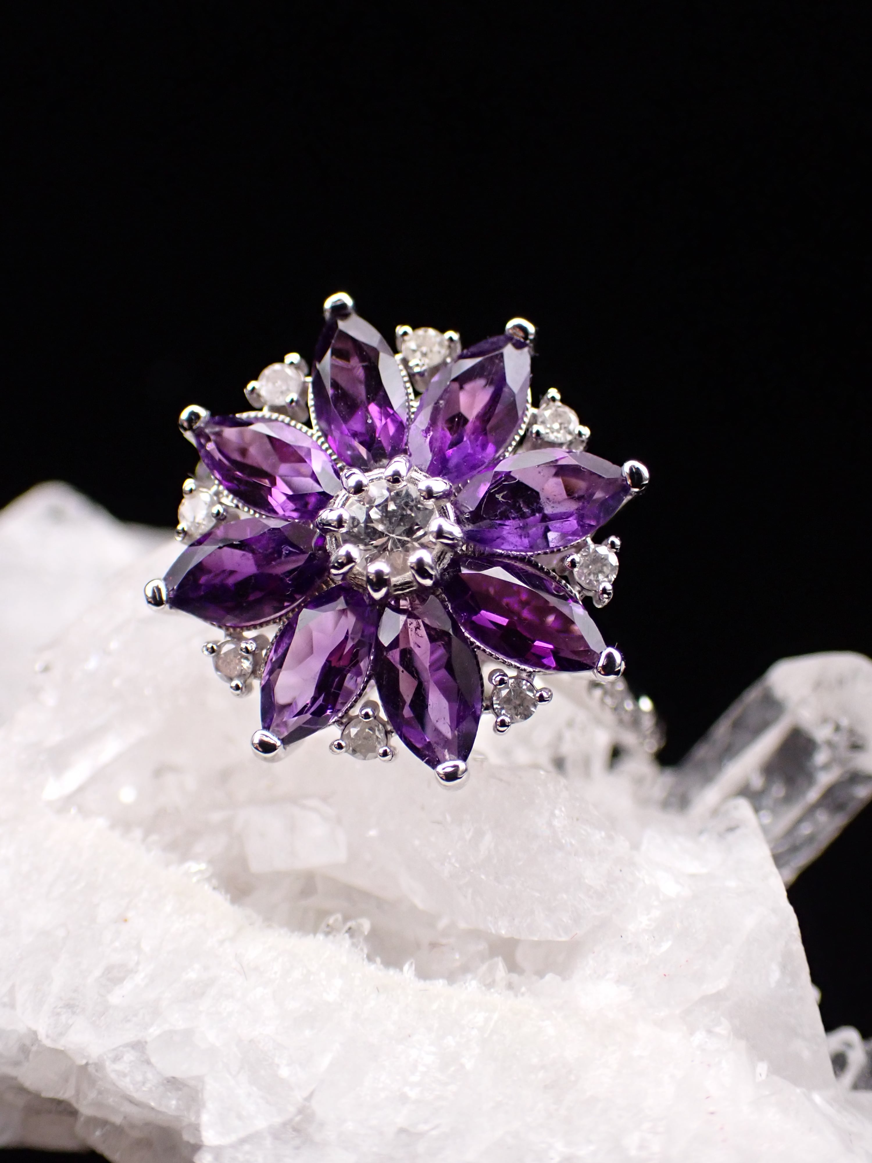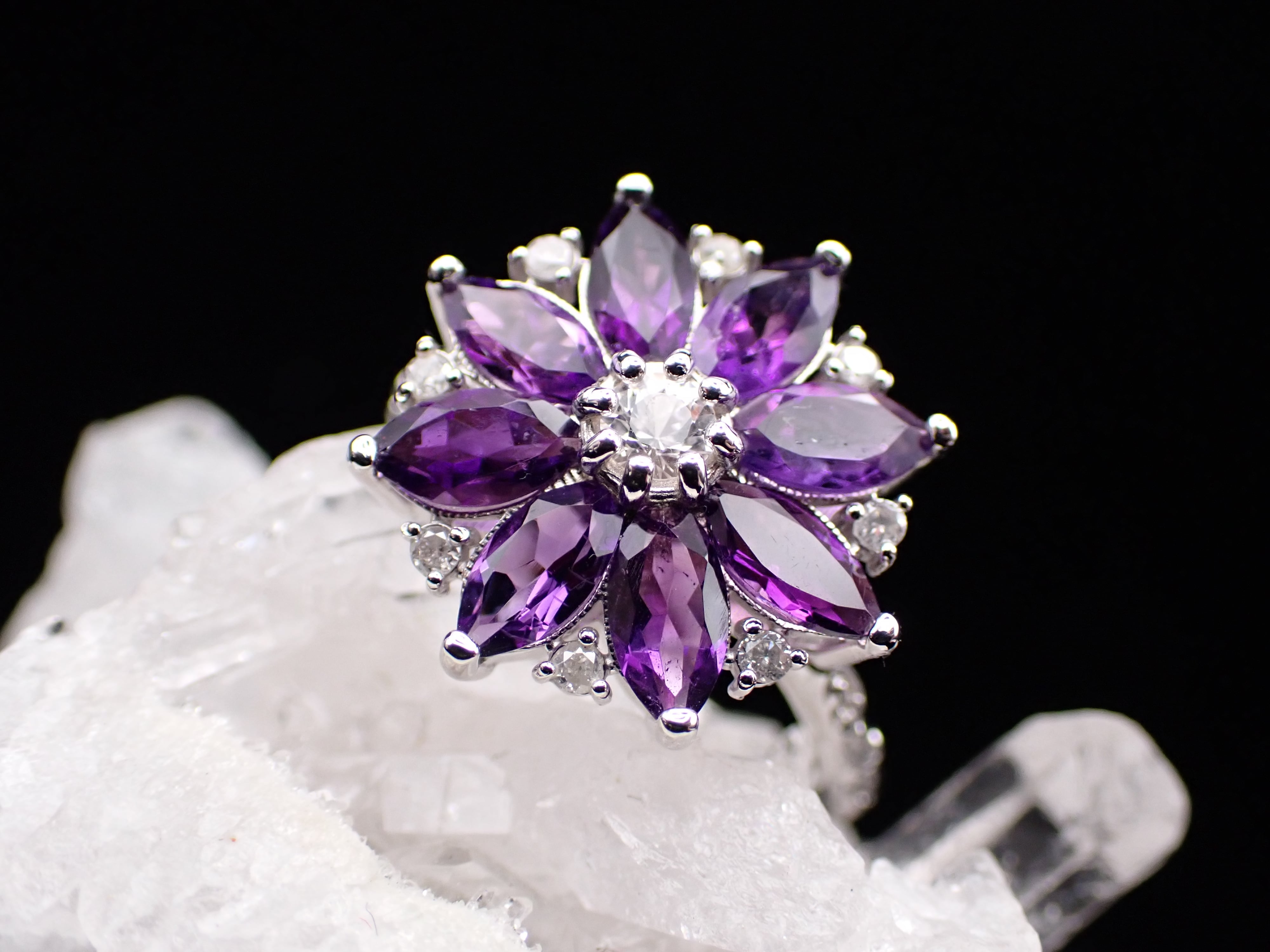 二部構造でしっかりと作り込み、8枚のマーキスの花弁がそれぞれ輝きます。