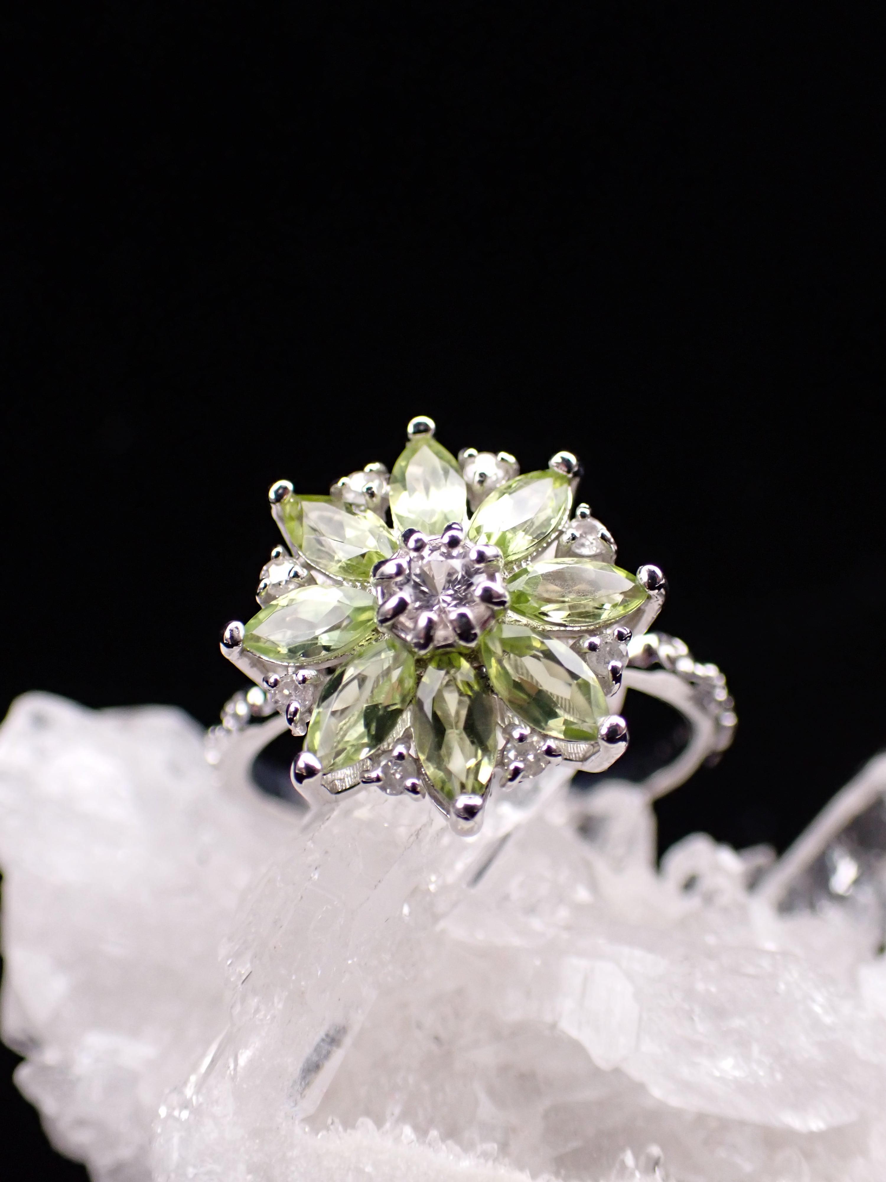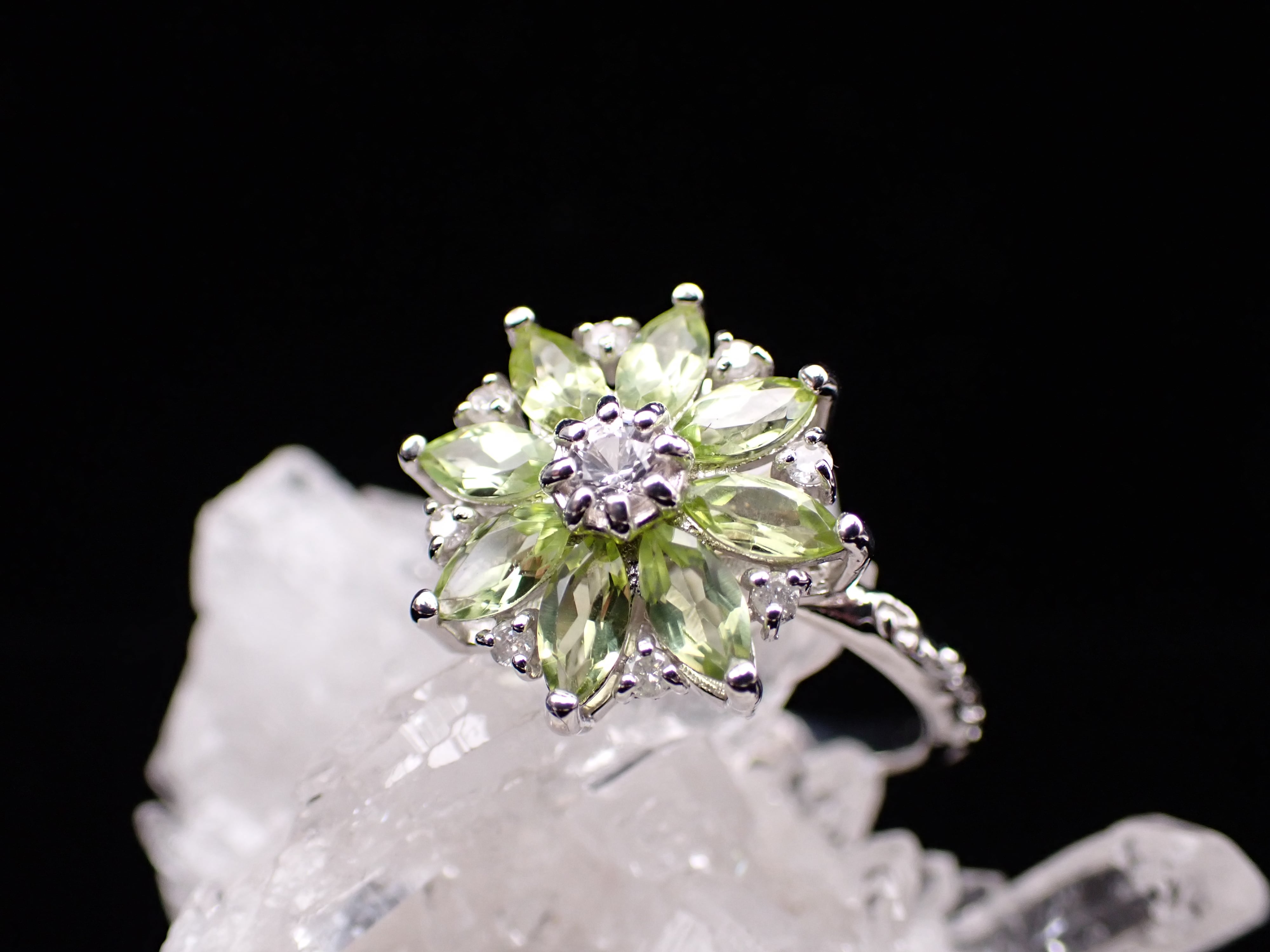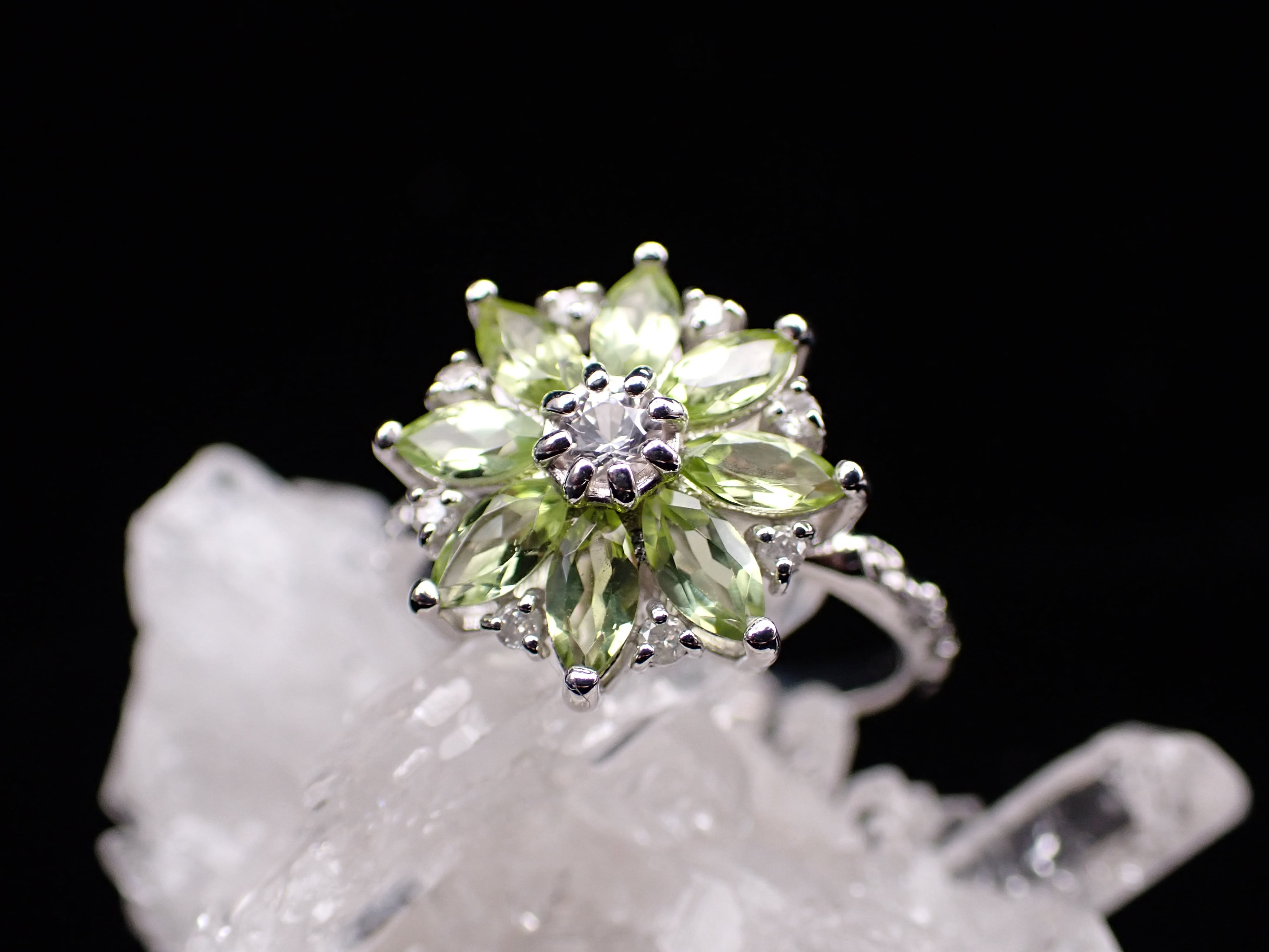 【 R.nouveau 】Poinsettia ring✳︎Petite Bloom✳︎グリーンサファイア&ホワイトサファイアSV 14号