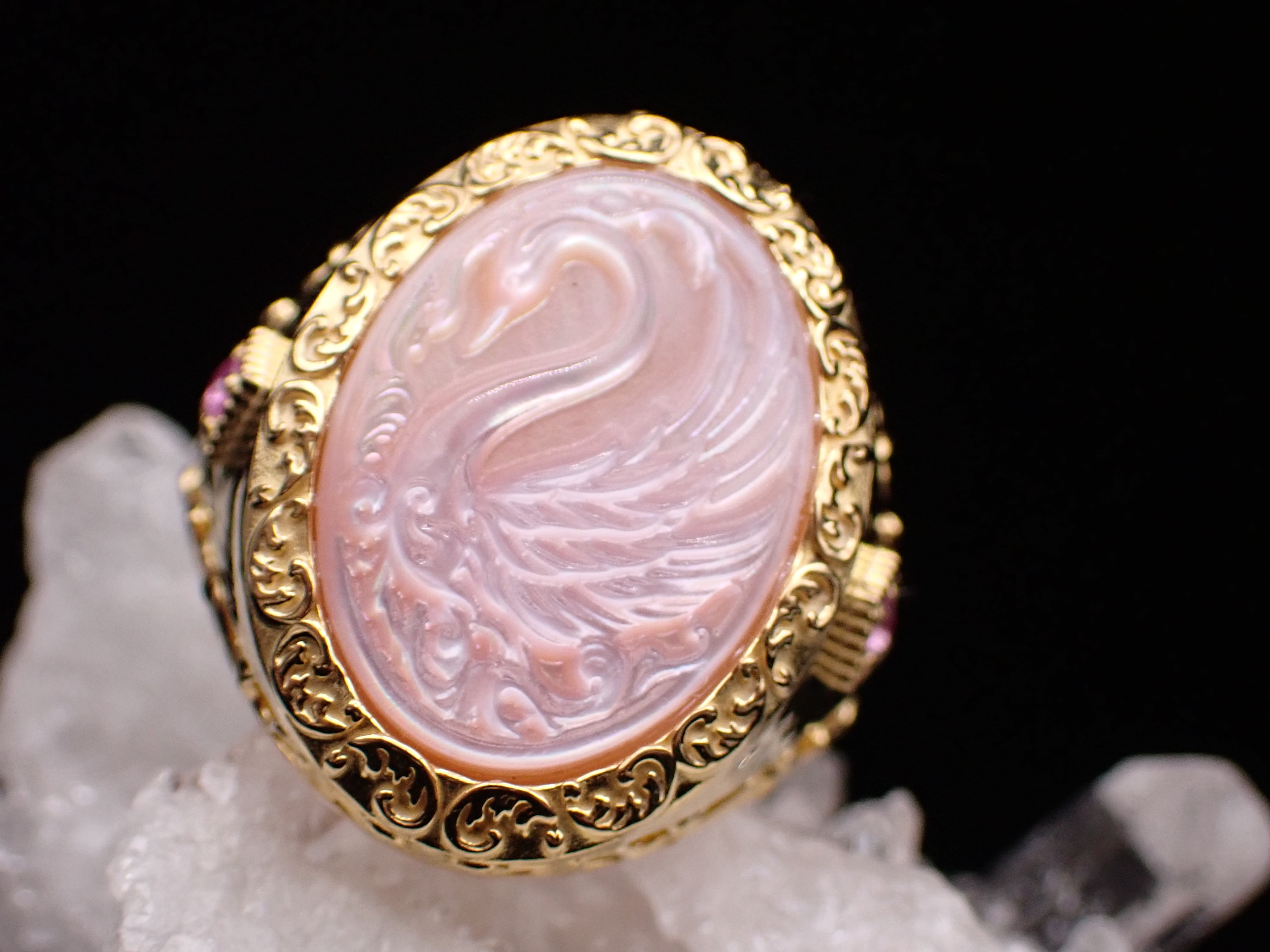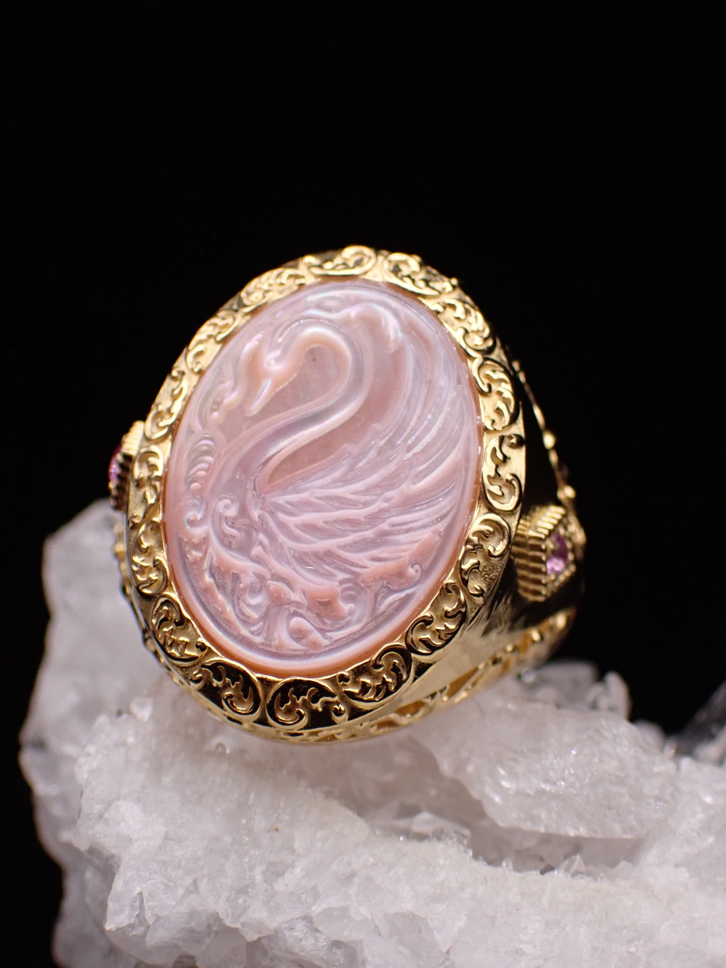 【 R.nouveau 】Signet ring ✴︎ pink swan 15.5号リングYG メレピンクサファイア