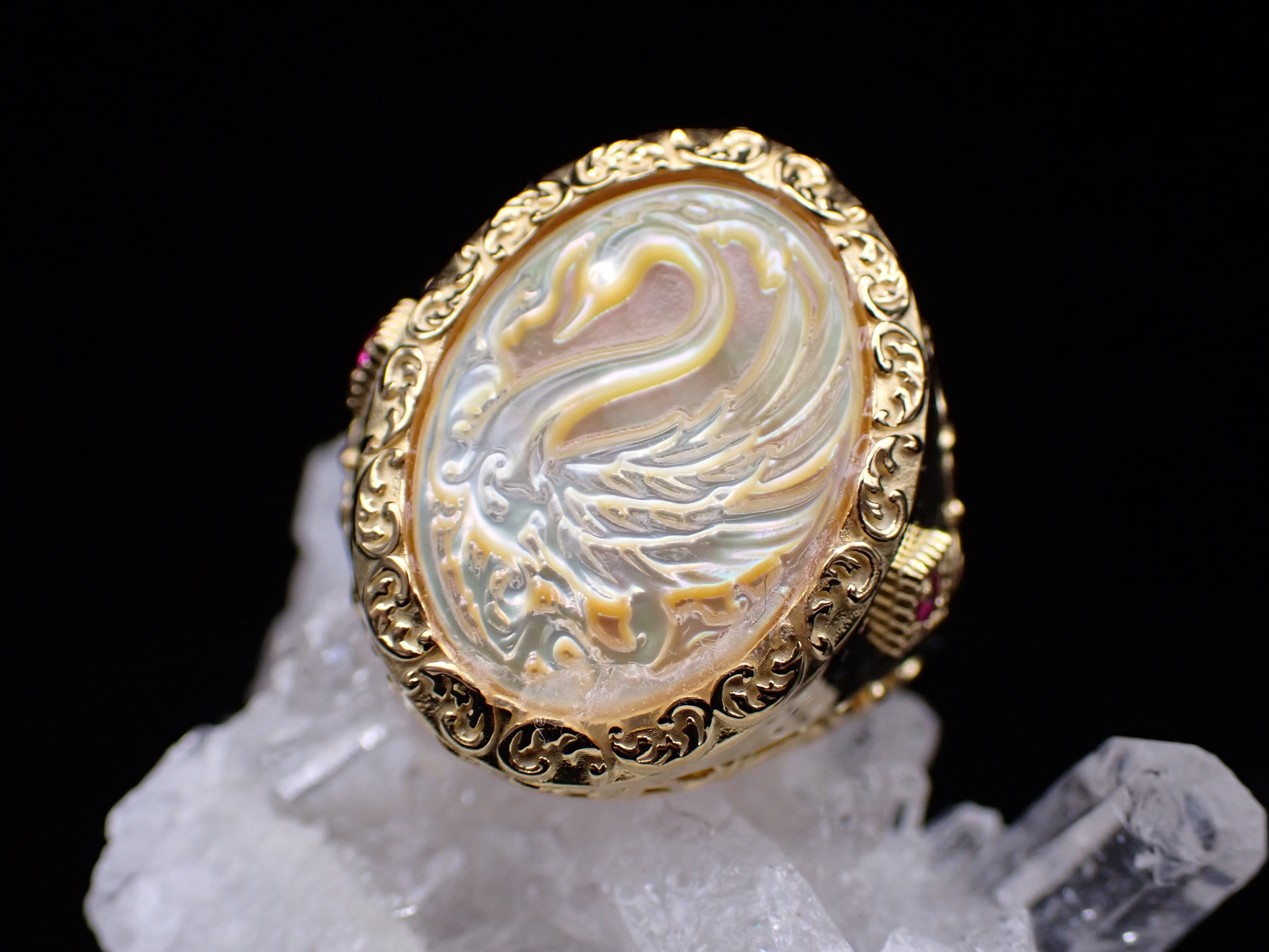 【 R.nouveau 】Signet ring ✴︎ yellow swan 15.5号リングYG メレルビー