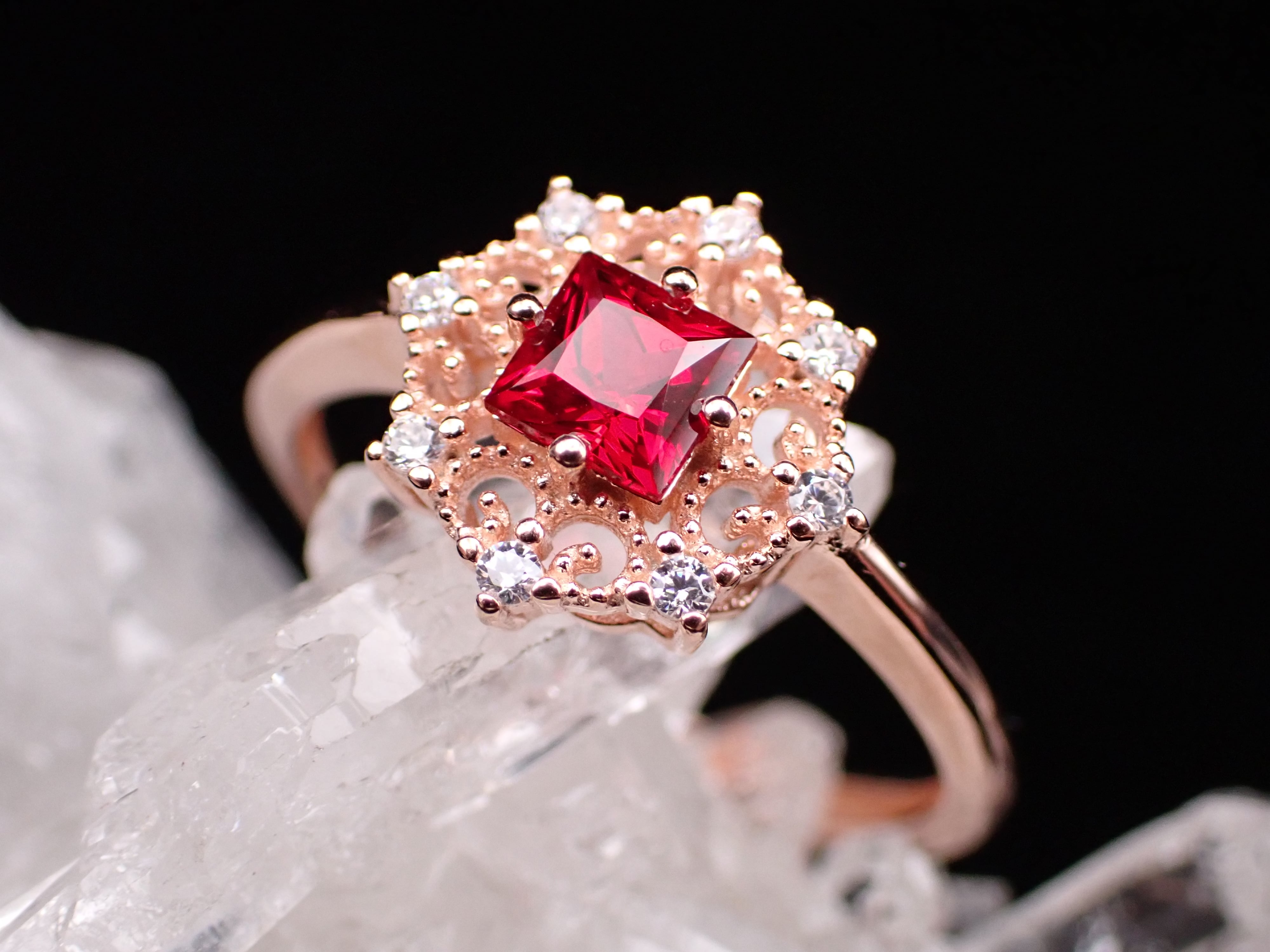 Snow Magic ring ❄︎ 合成ルビー 4mm フリーサイズPG