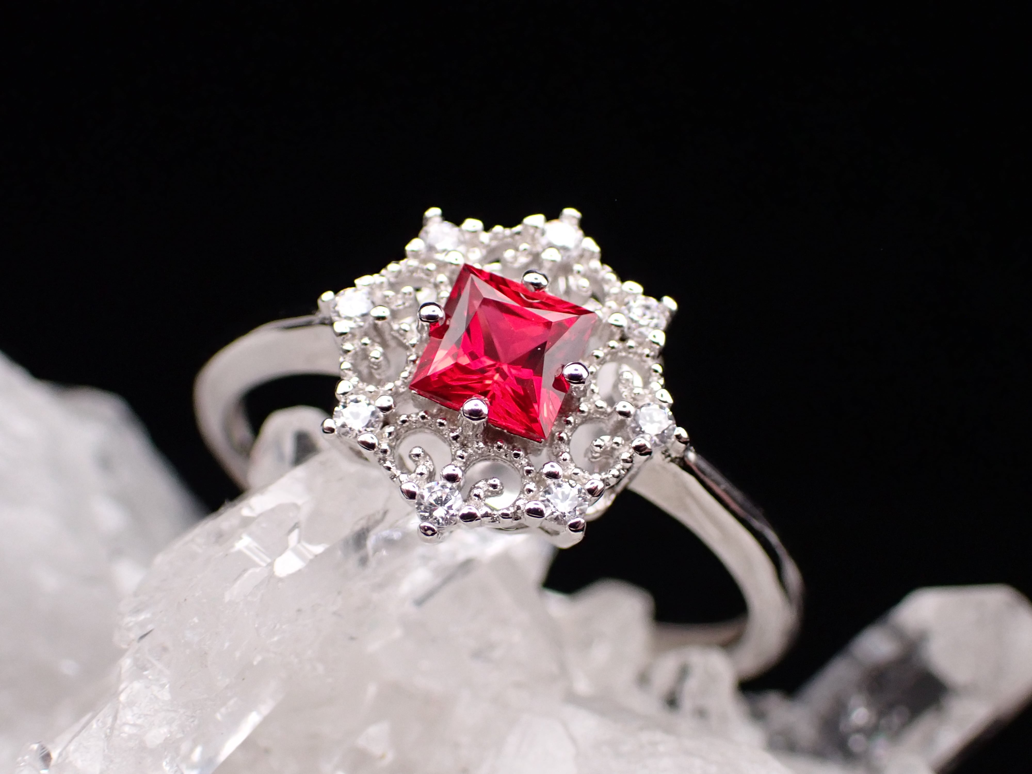Snow Magic ring ❄︎ 合成ルビー 4mm フリーサイズSV