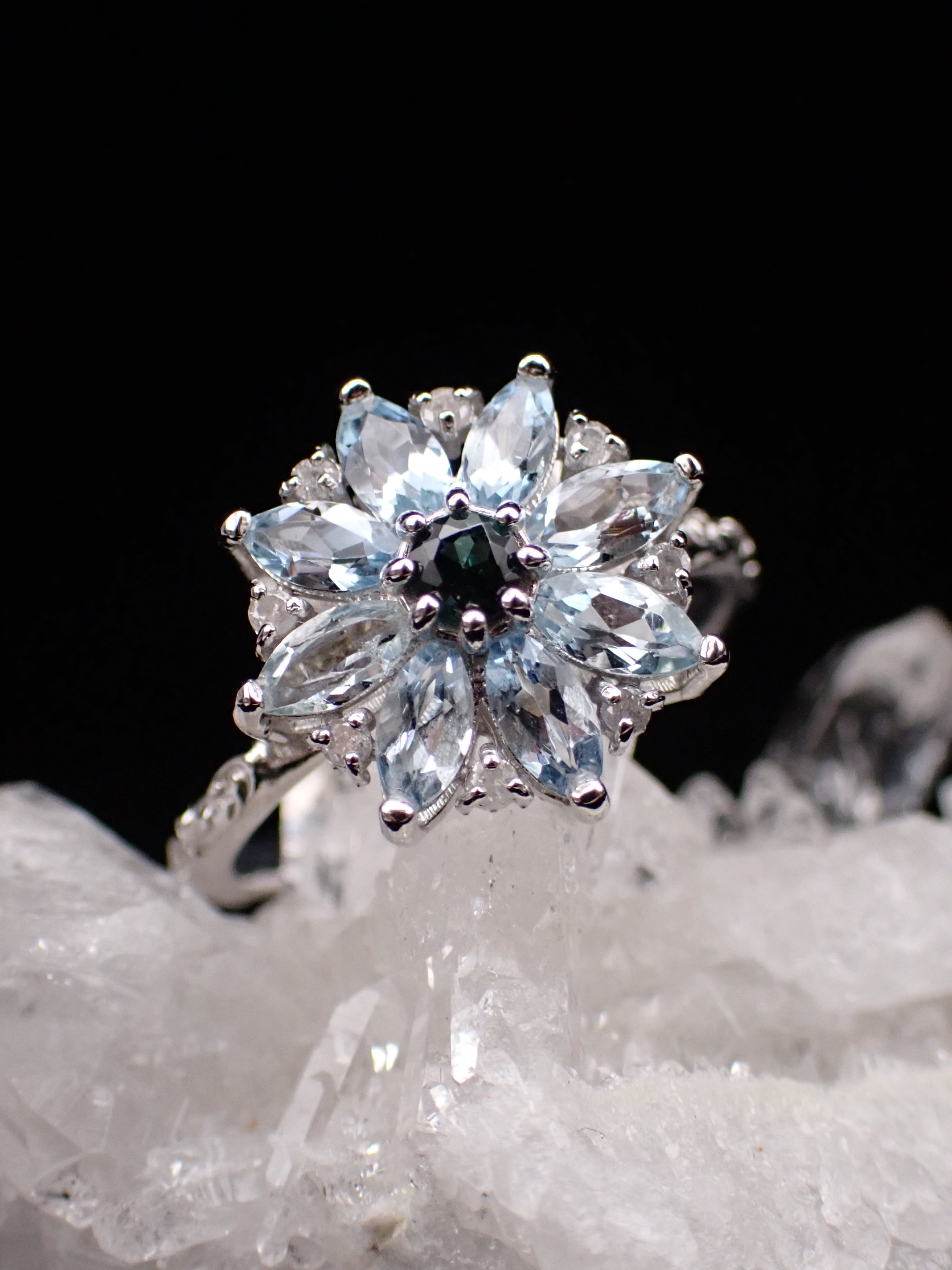 【 R.nouveau 】Poinsettia ring✳︎Full Bloom✳︎アクアマリン&グリーントルマリンSV 13号
