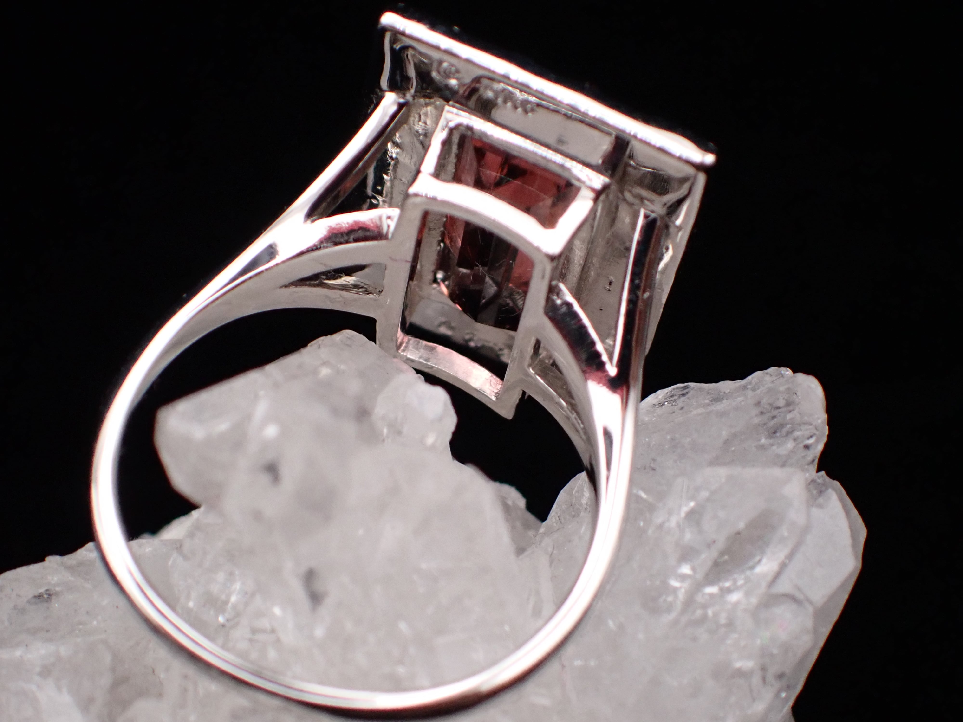 宝石そのものが肌に触れないように、光が入りやすいようにサイドを広く開けて輝きが最大限になるようにお作りしております。