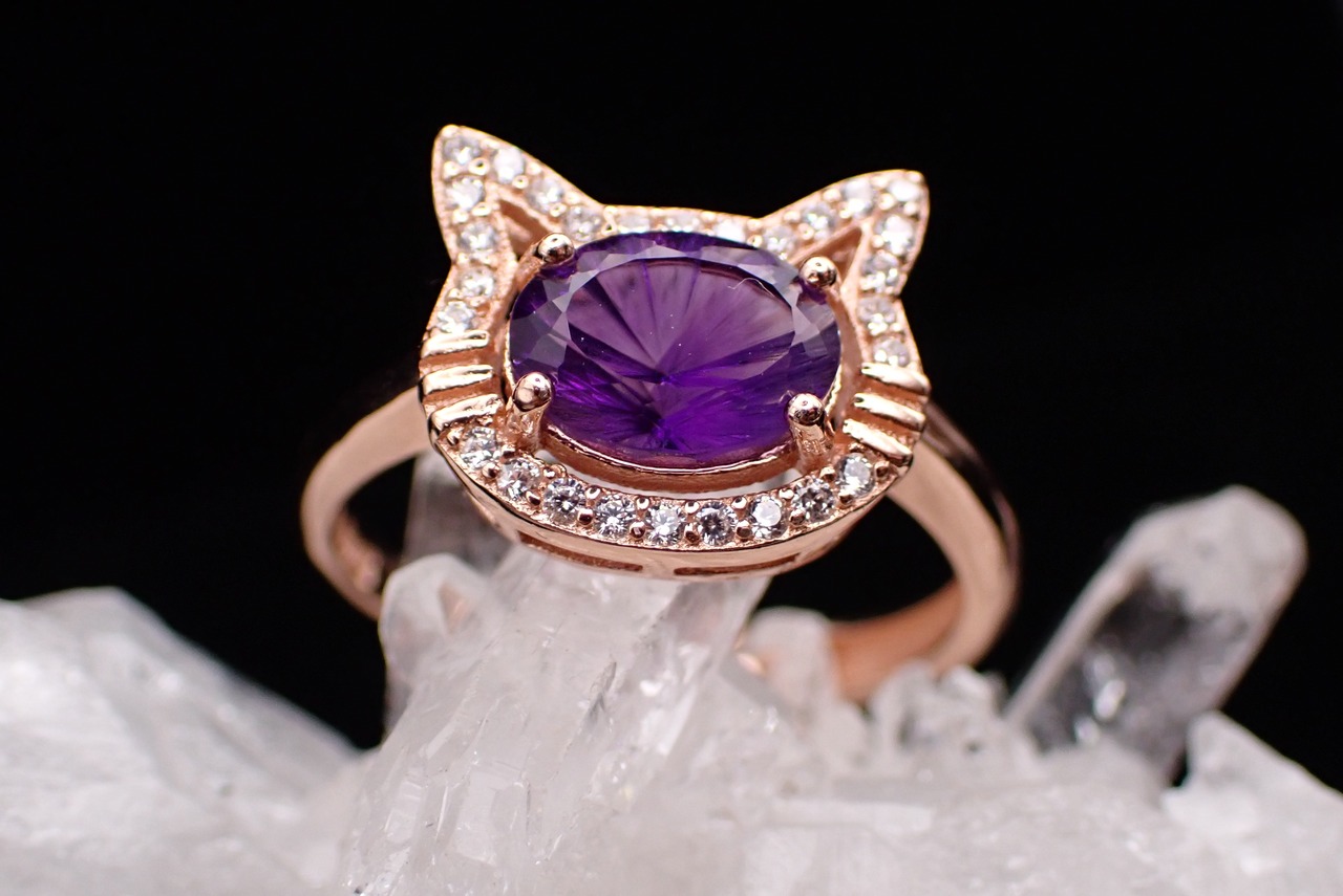 中央のストーンは特殊カットのコンケーブアメジスト。