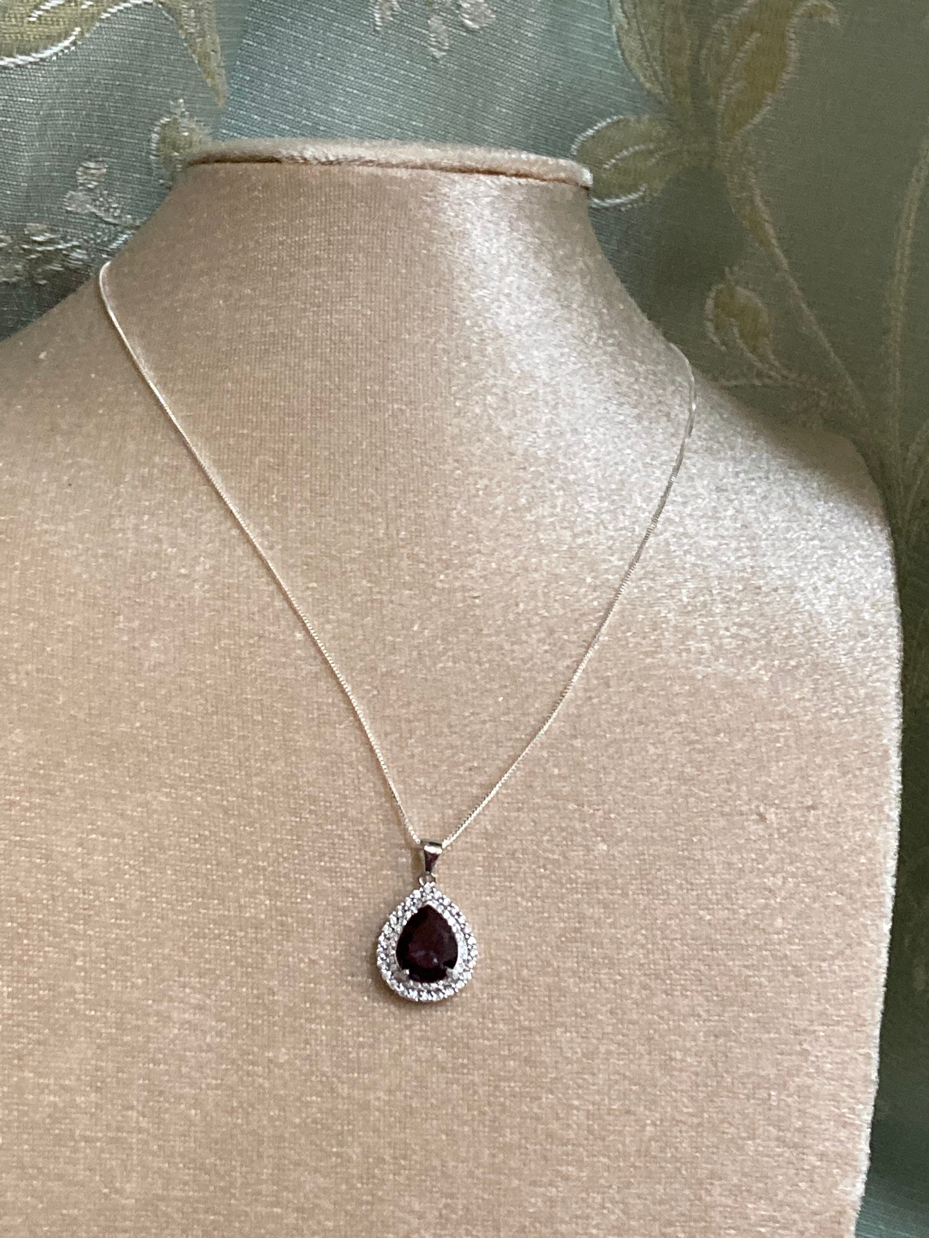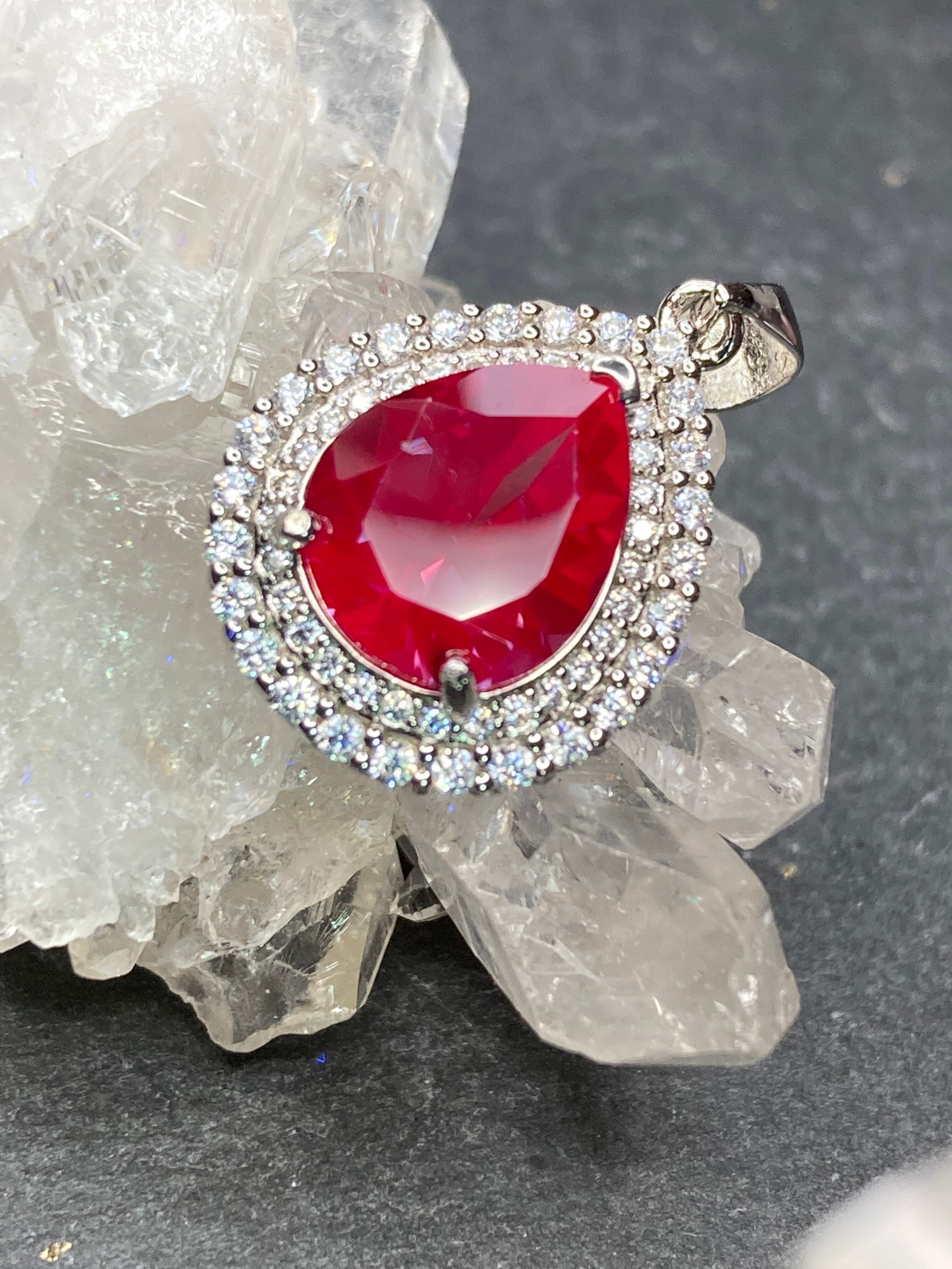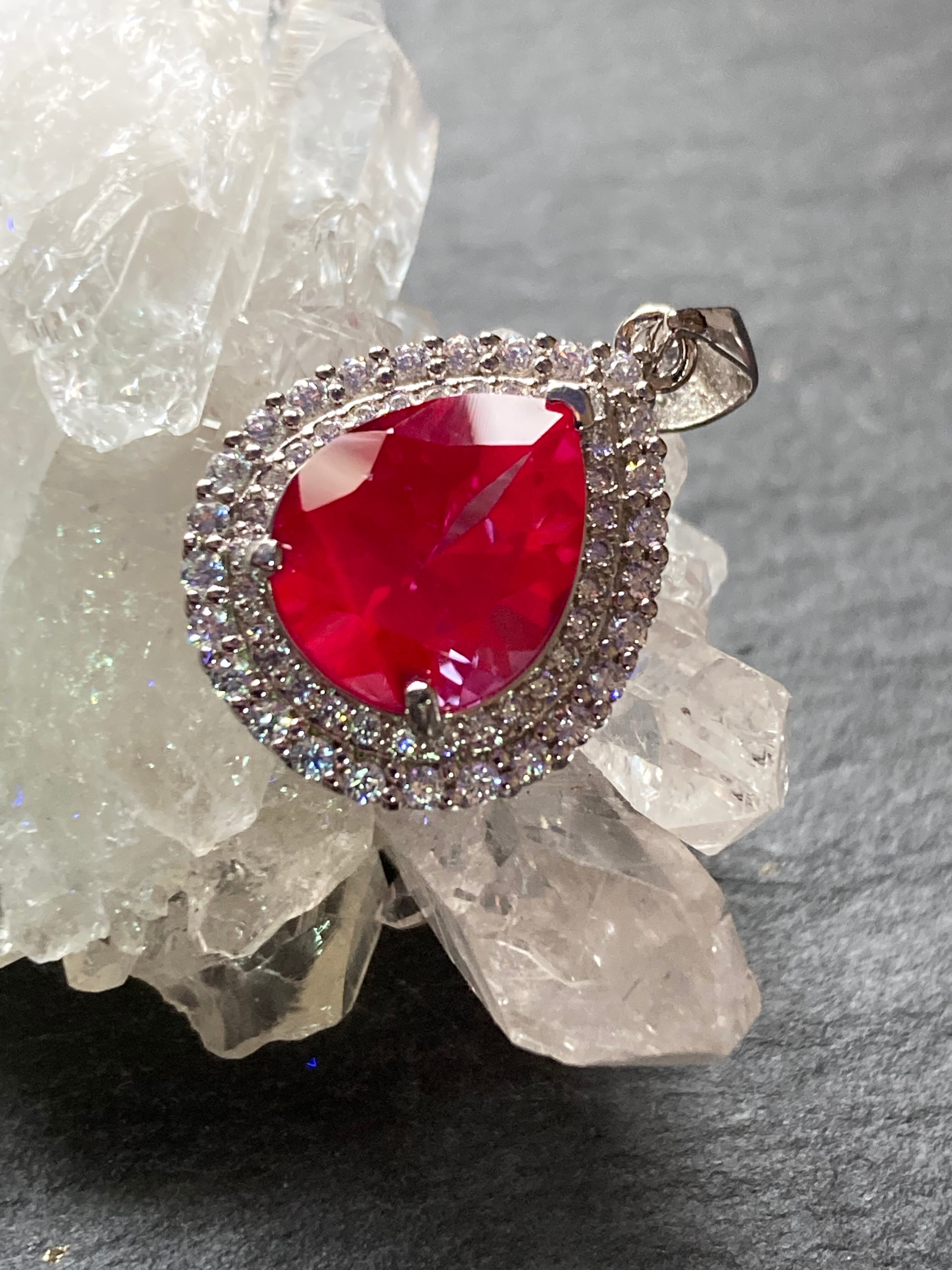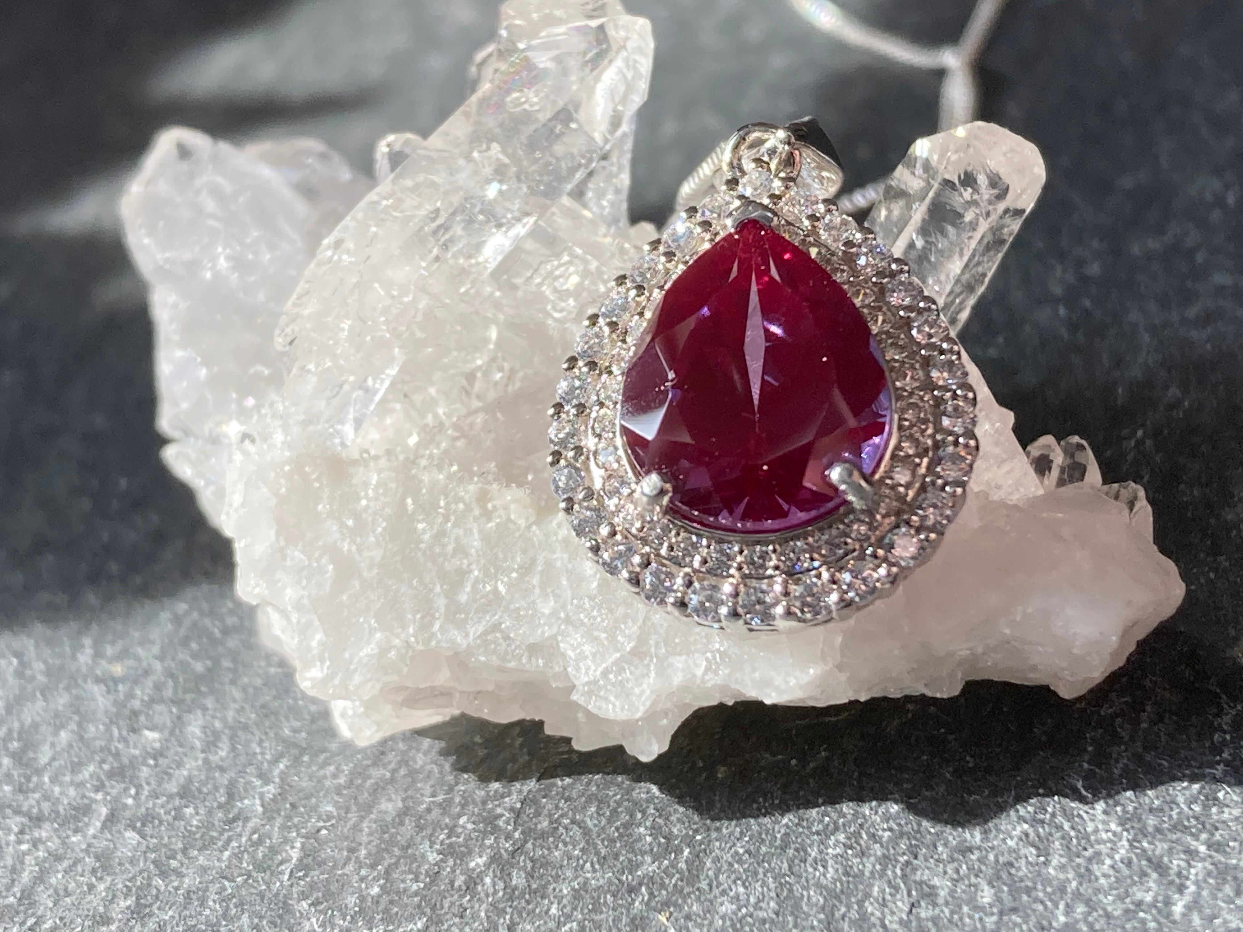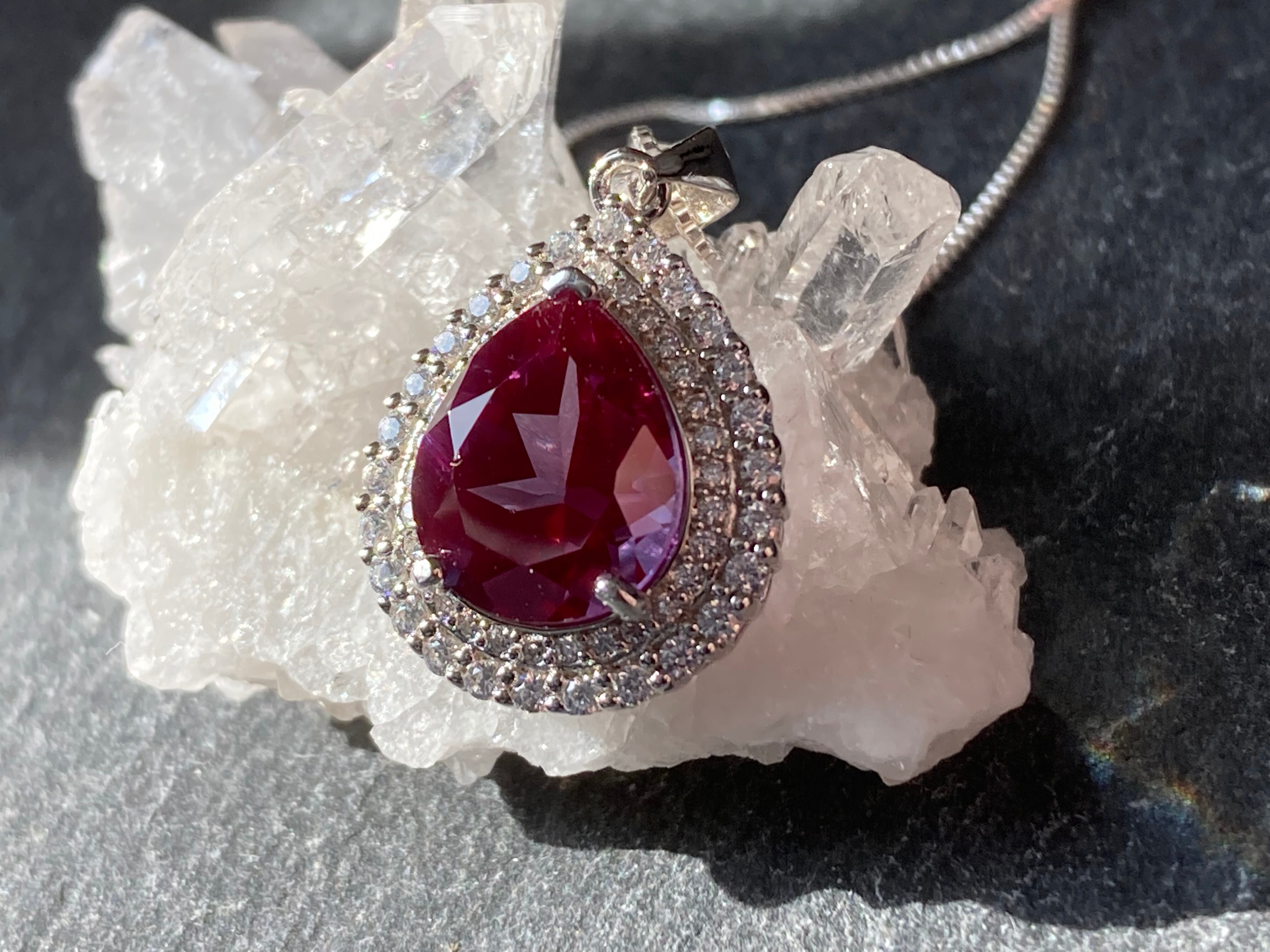 煌びやかに散るジルコニアの中央に佇む、深いパープルが美しい合成アレキサンドライトのペンダントです。