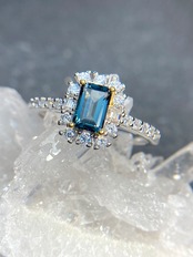 カットが美しく、取り巻きのジルコニアがブルートパーズの輝きをさらに引き立てています✨