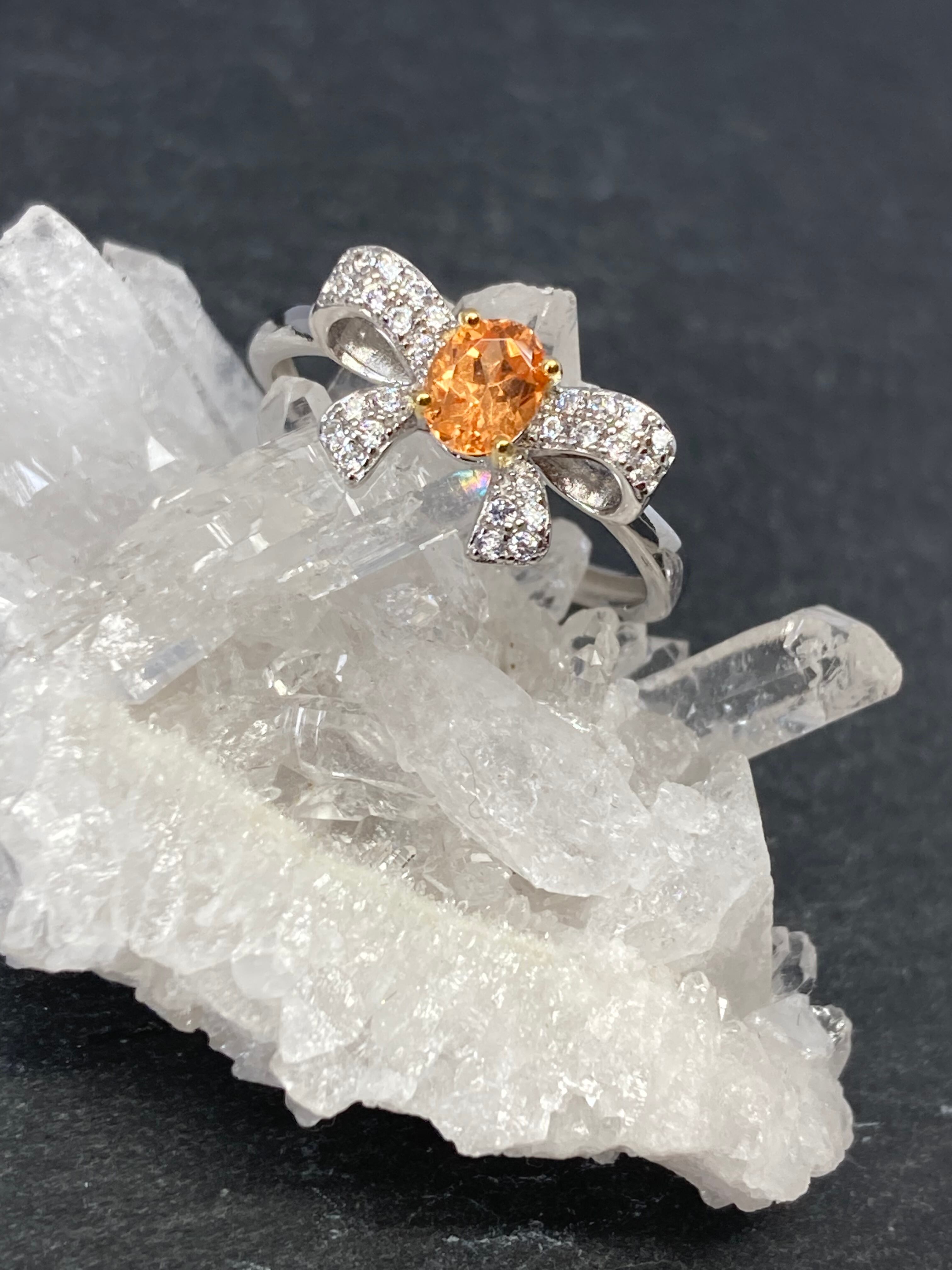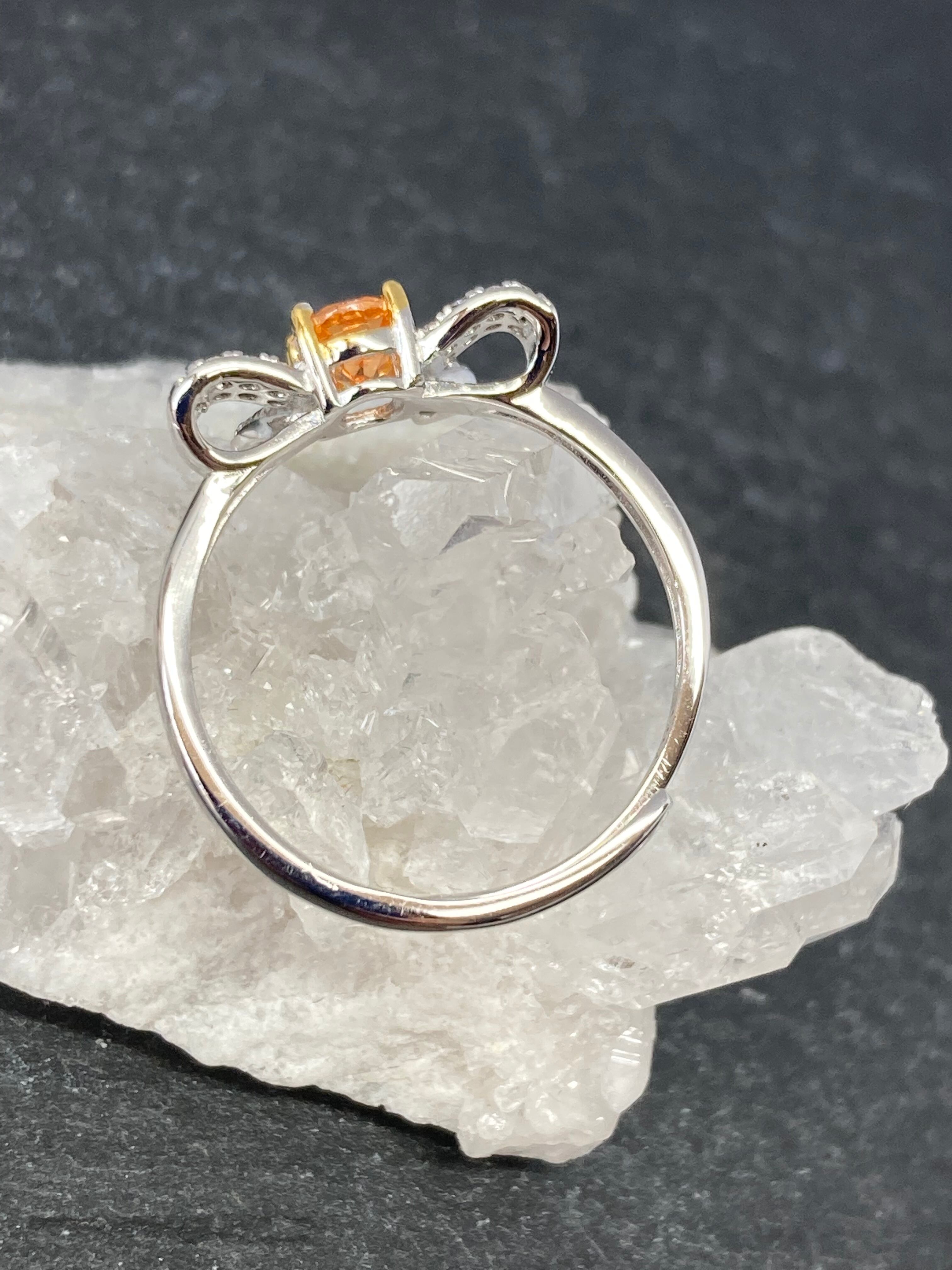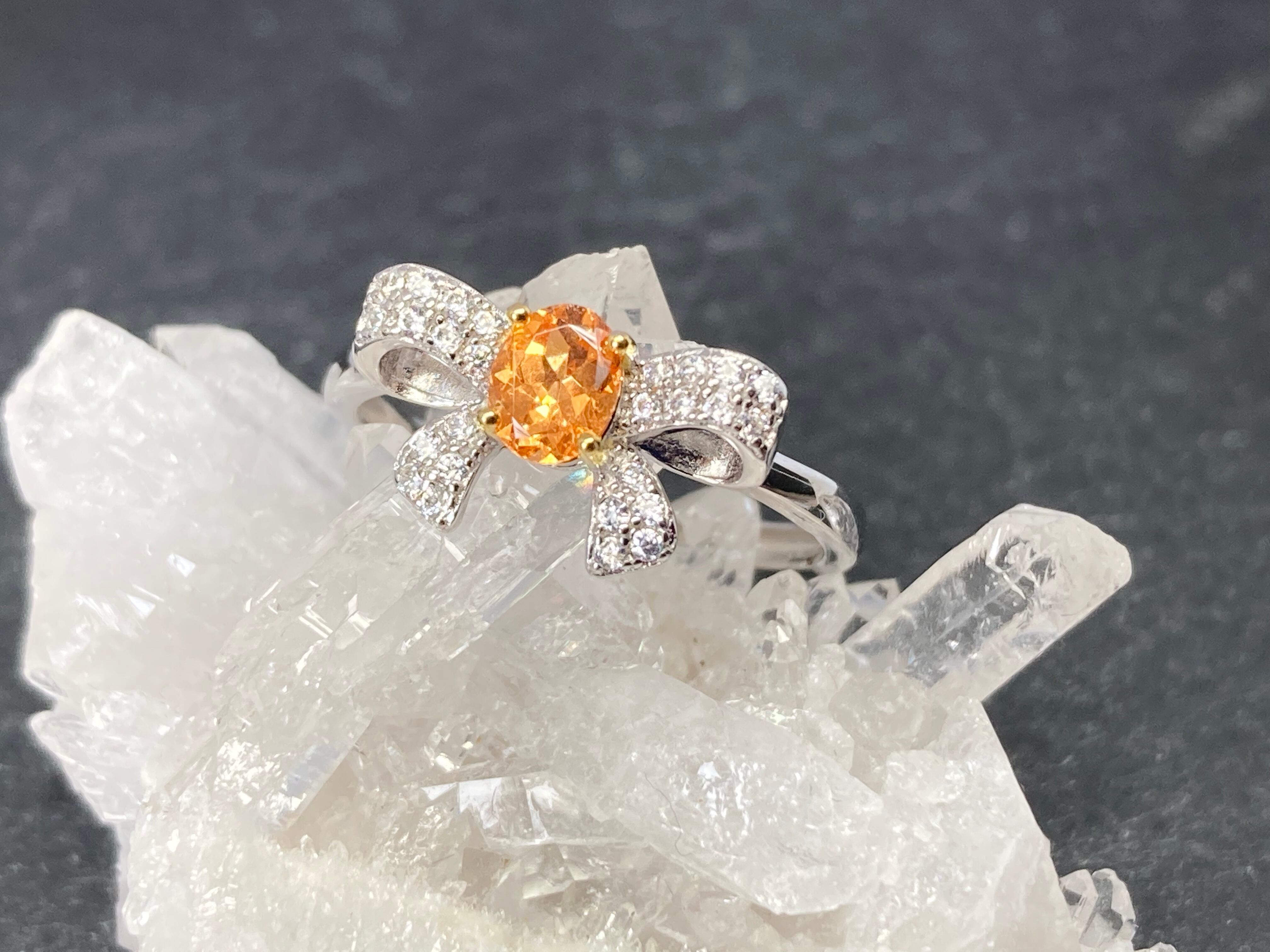 中央に美しいオレンジのスペサタイトガーネットをセッティングしたふわりとしたリボンモチーフのリングです。
