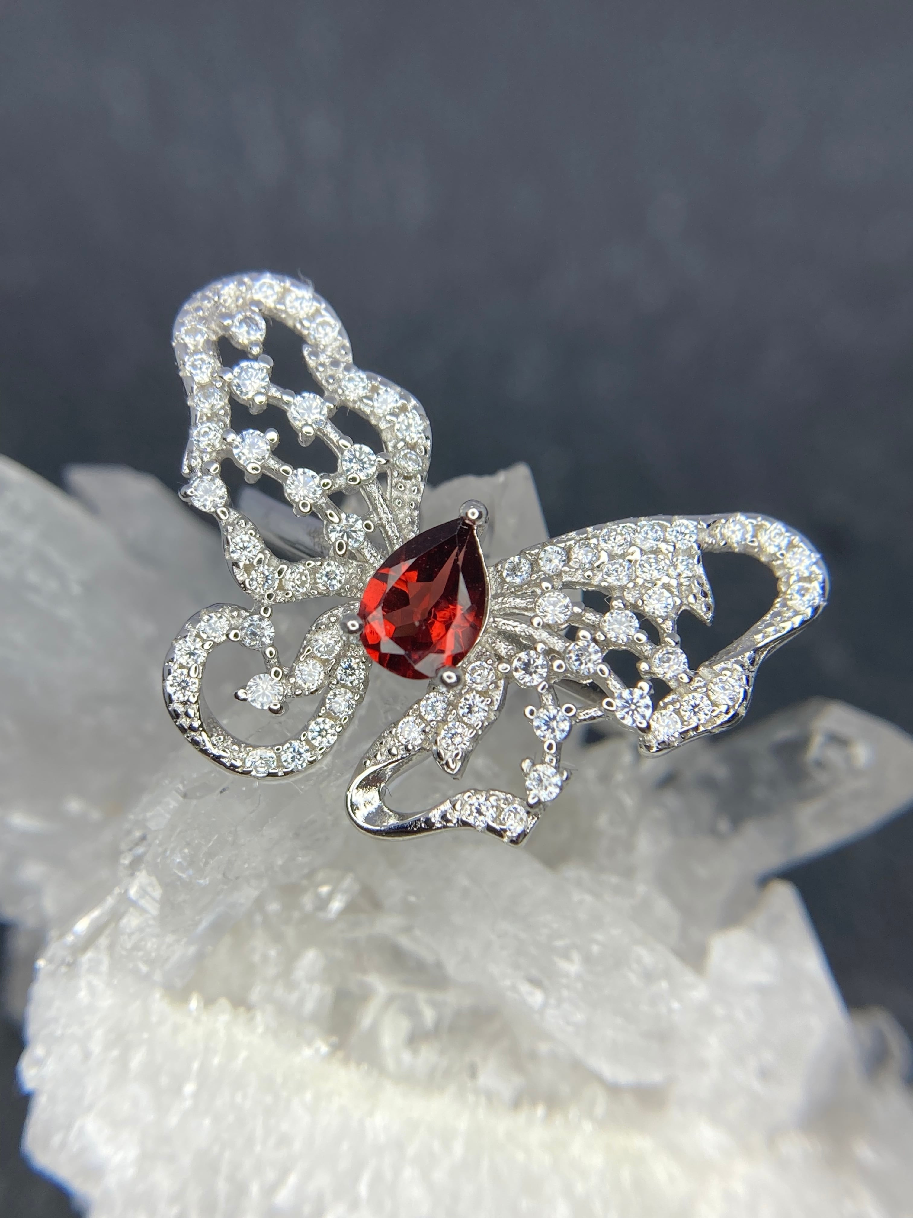 小さなジルコニアたちがガーネットの輝きを引き立てる可愛らしいリングです。