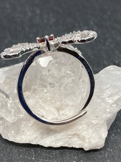 中央にガーネットをセッティングしたリボンが重なったようなてふてふモチーフのリングです。