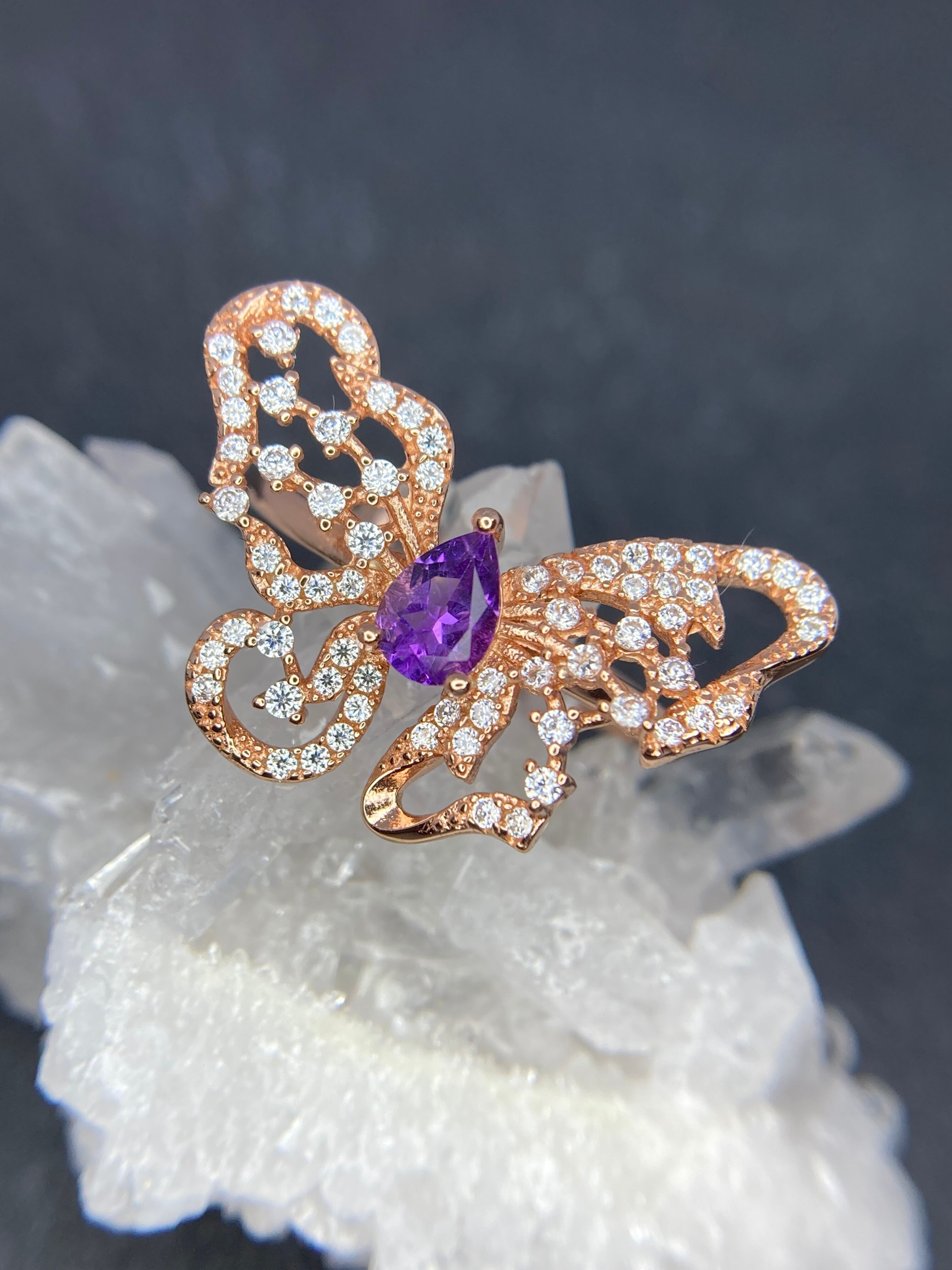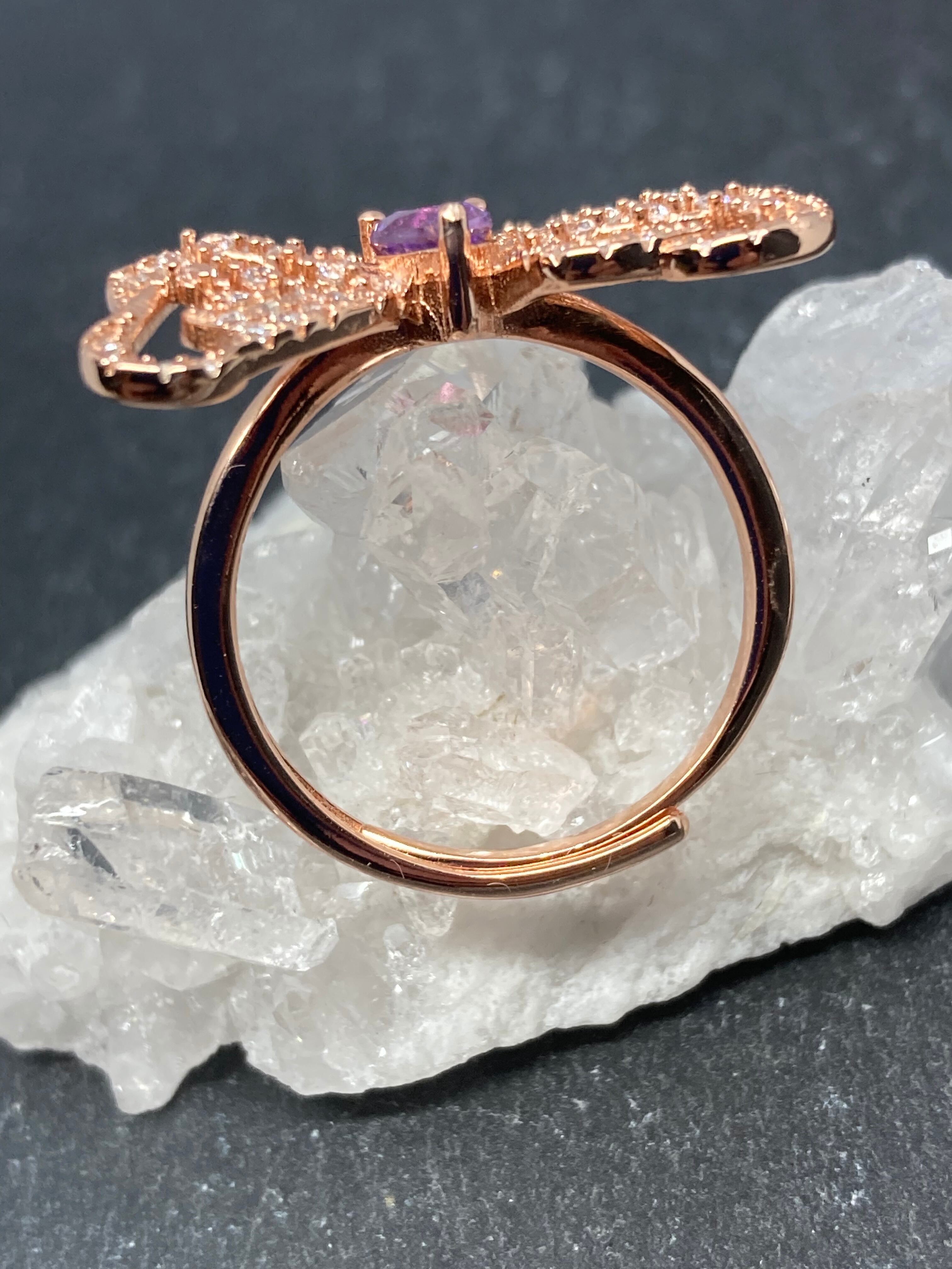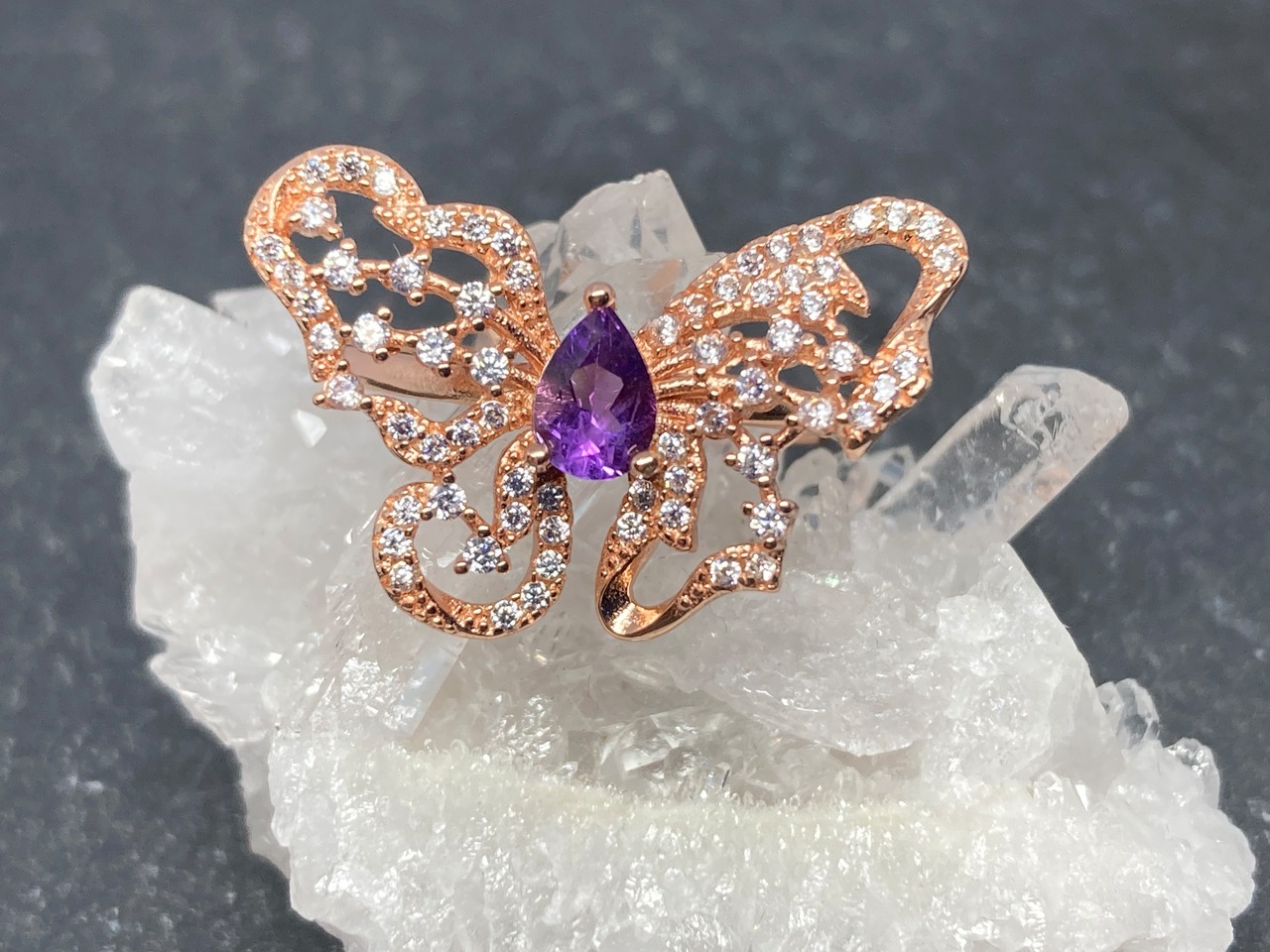 中央にアメジストをセッティングしたリボンが重なったようなてふてふモチーフのリングです。
