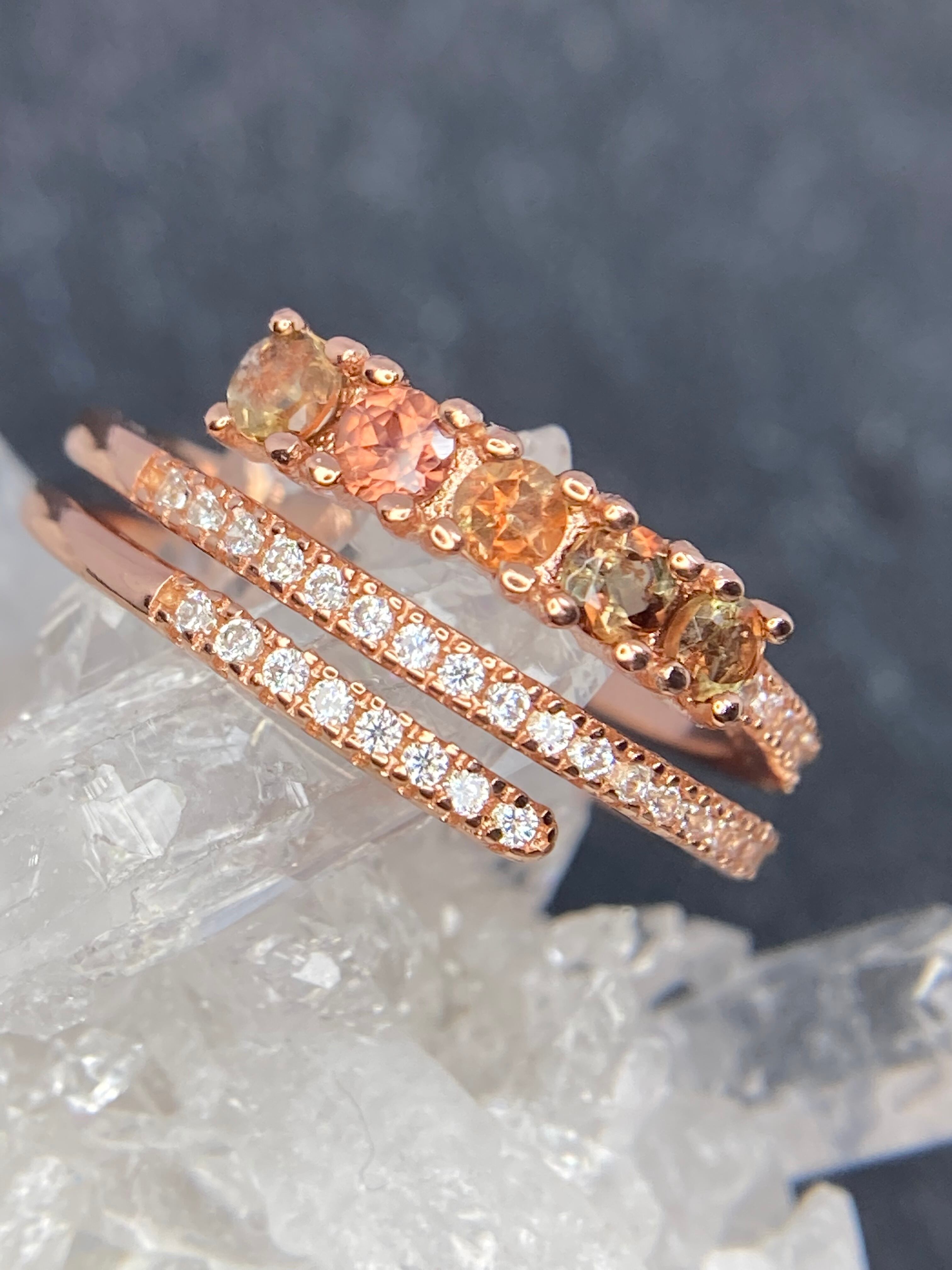 小さいながらも輝くジルコニアたちも相まって、指を動かすたびにアンダリュサイトの輝きをお楽しみいただけます。