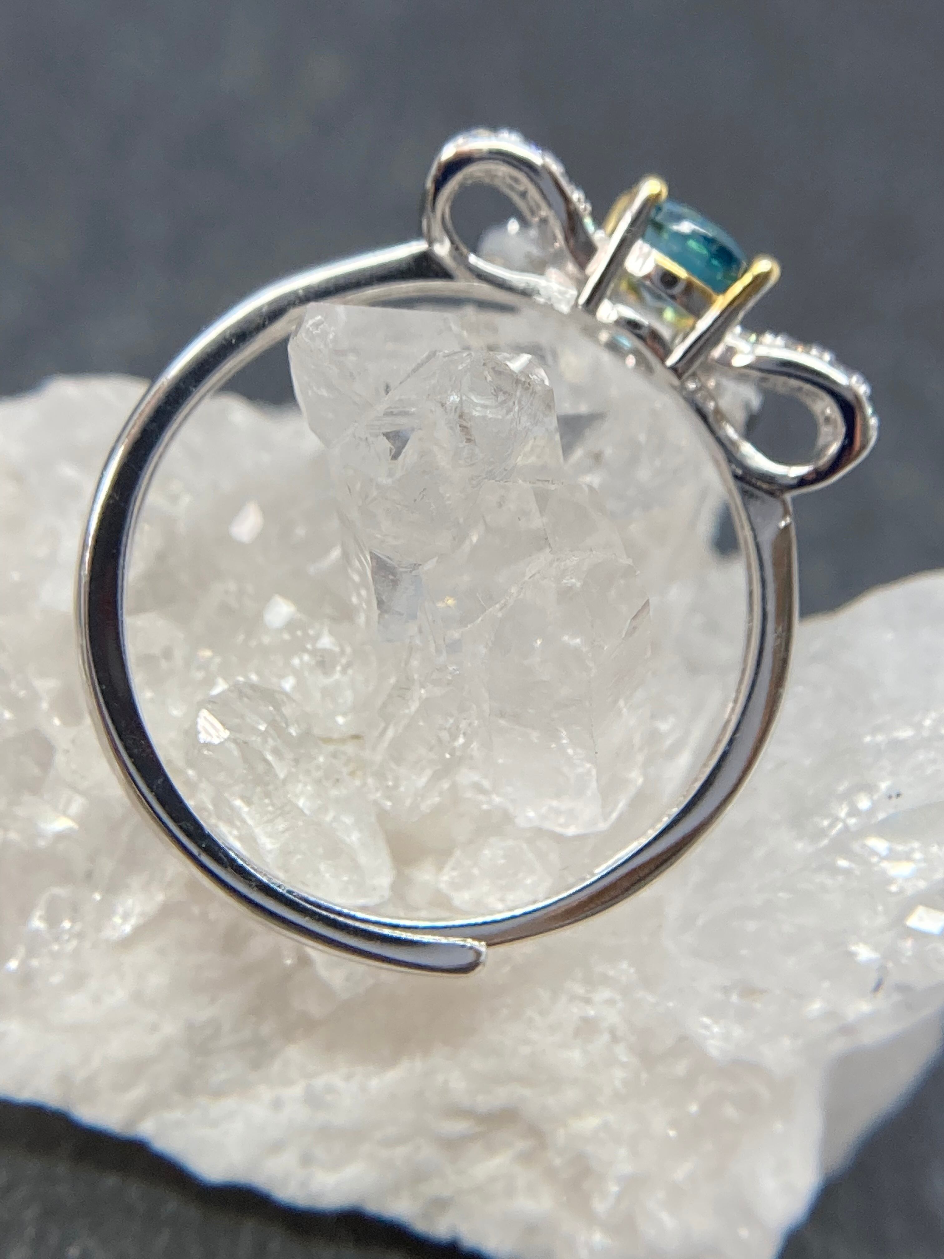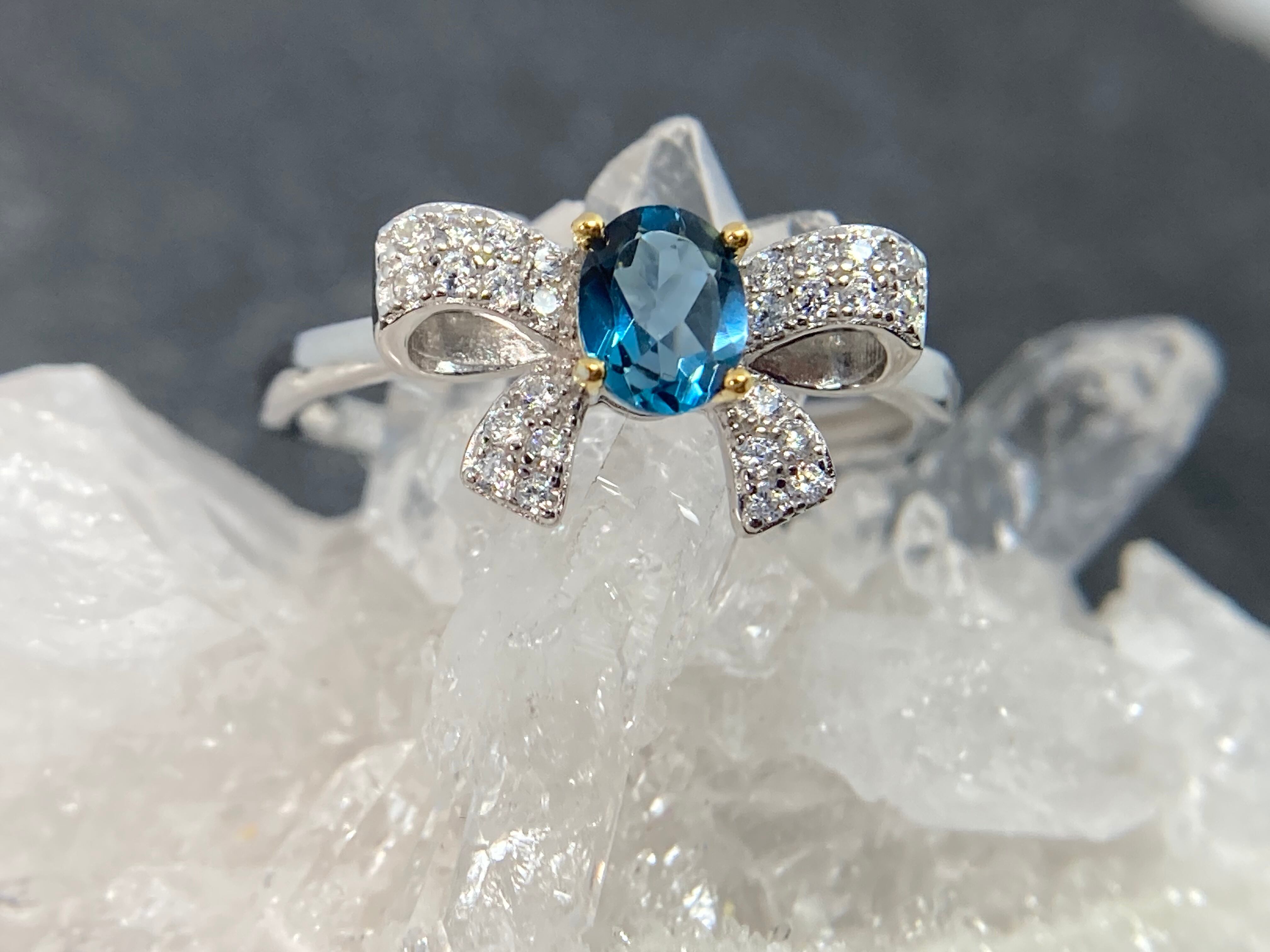 小さなジルコニアたちがロンドンブルートパーズの輝きを引き立てる可愛らしいリングです。