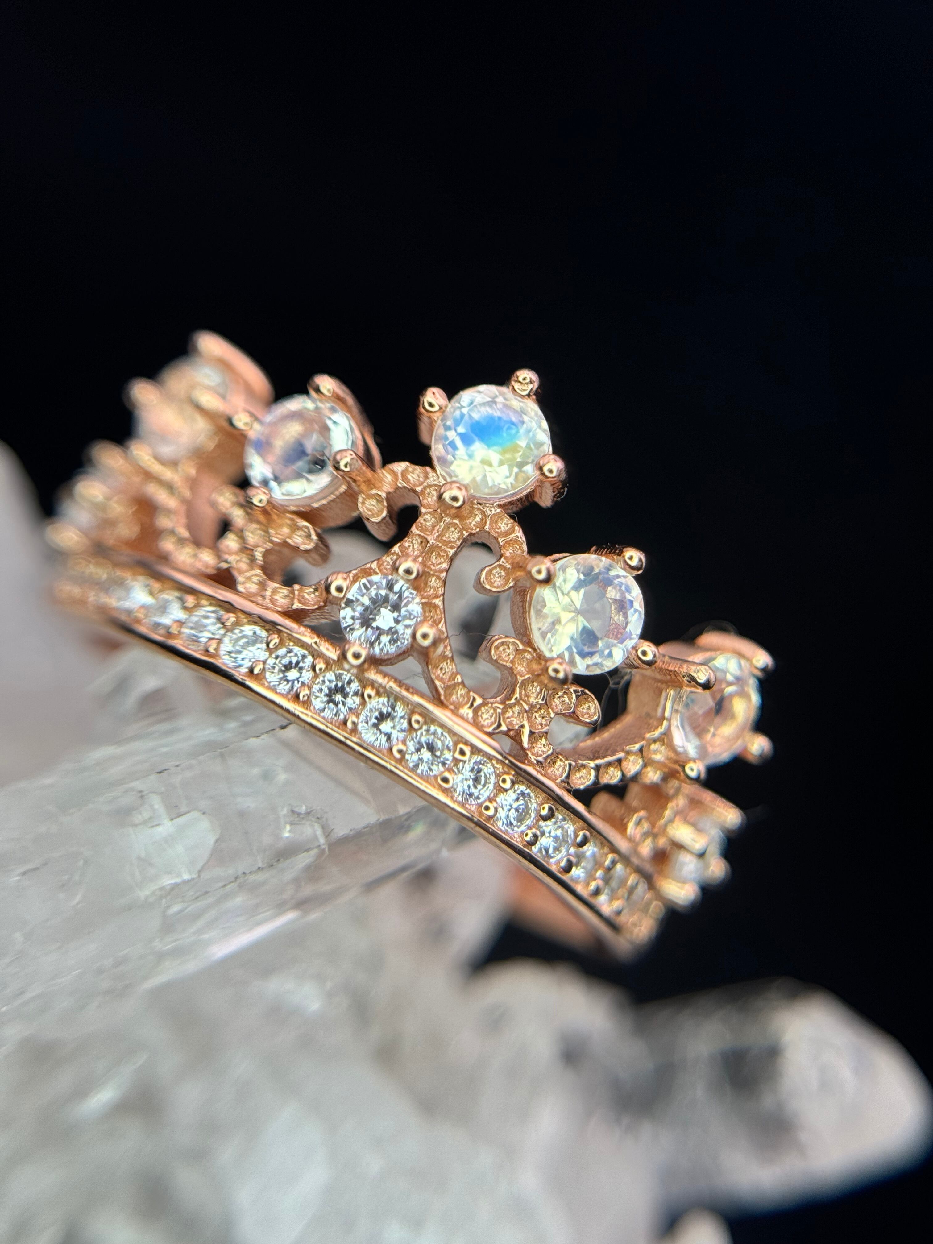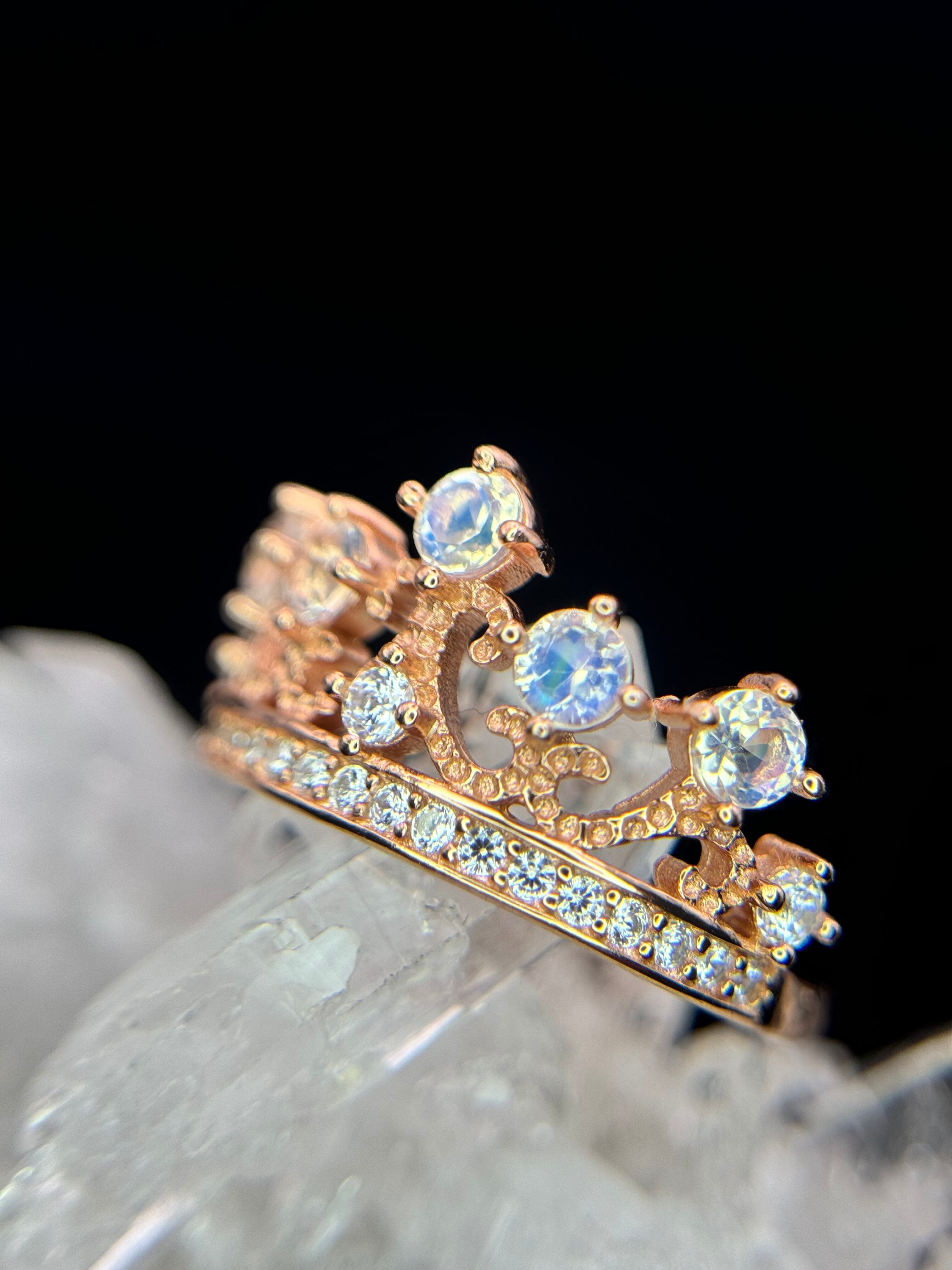 王冠のトップに立つ石たちはそれぞれ違った色味を放ち、どの角度から見ても輝きをお楽しみいただけます。