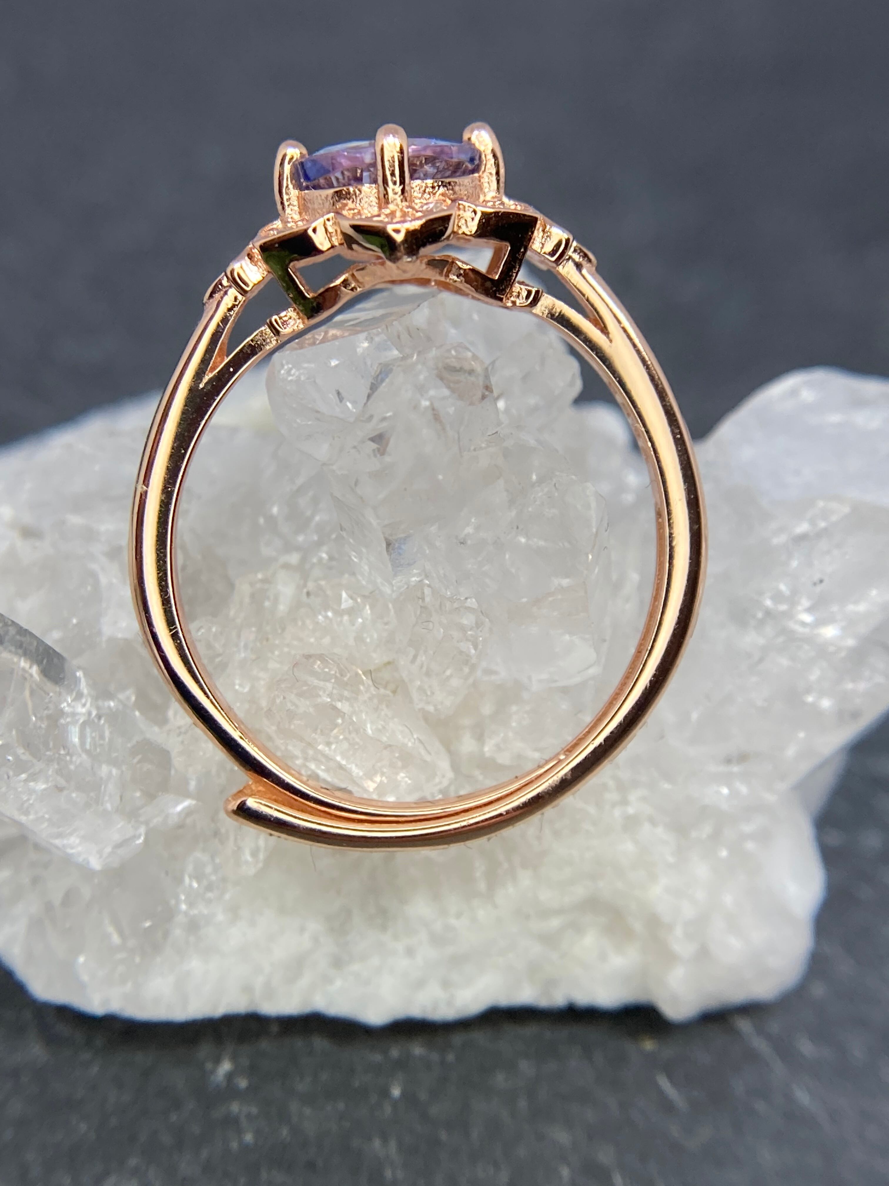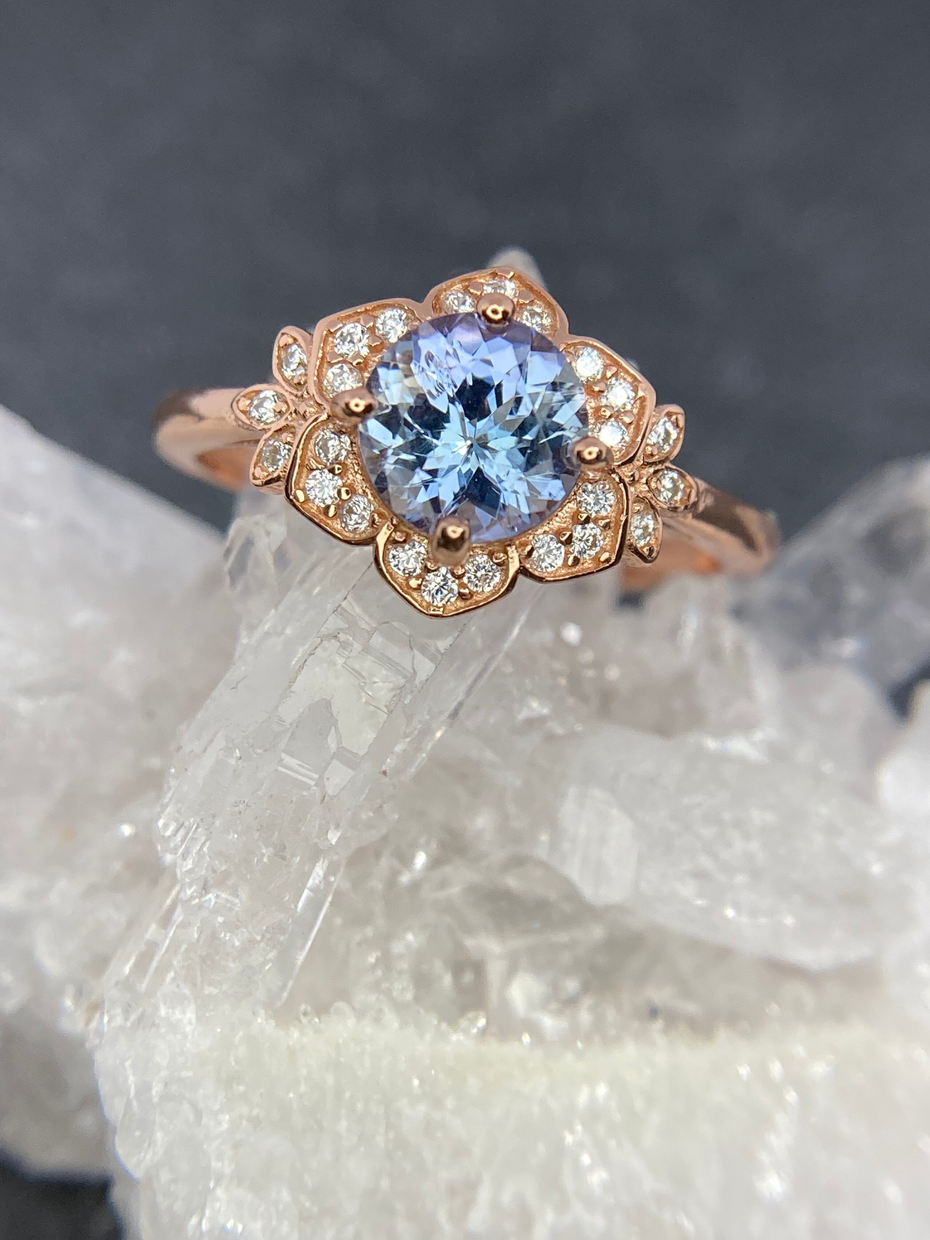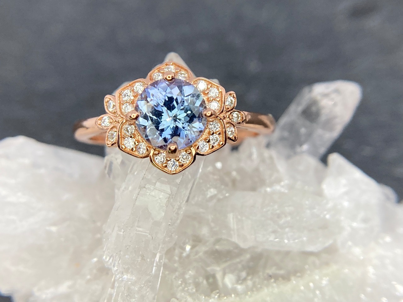 どの角度から見ても光を反射する美しいカットのルースを留めました。