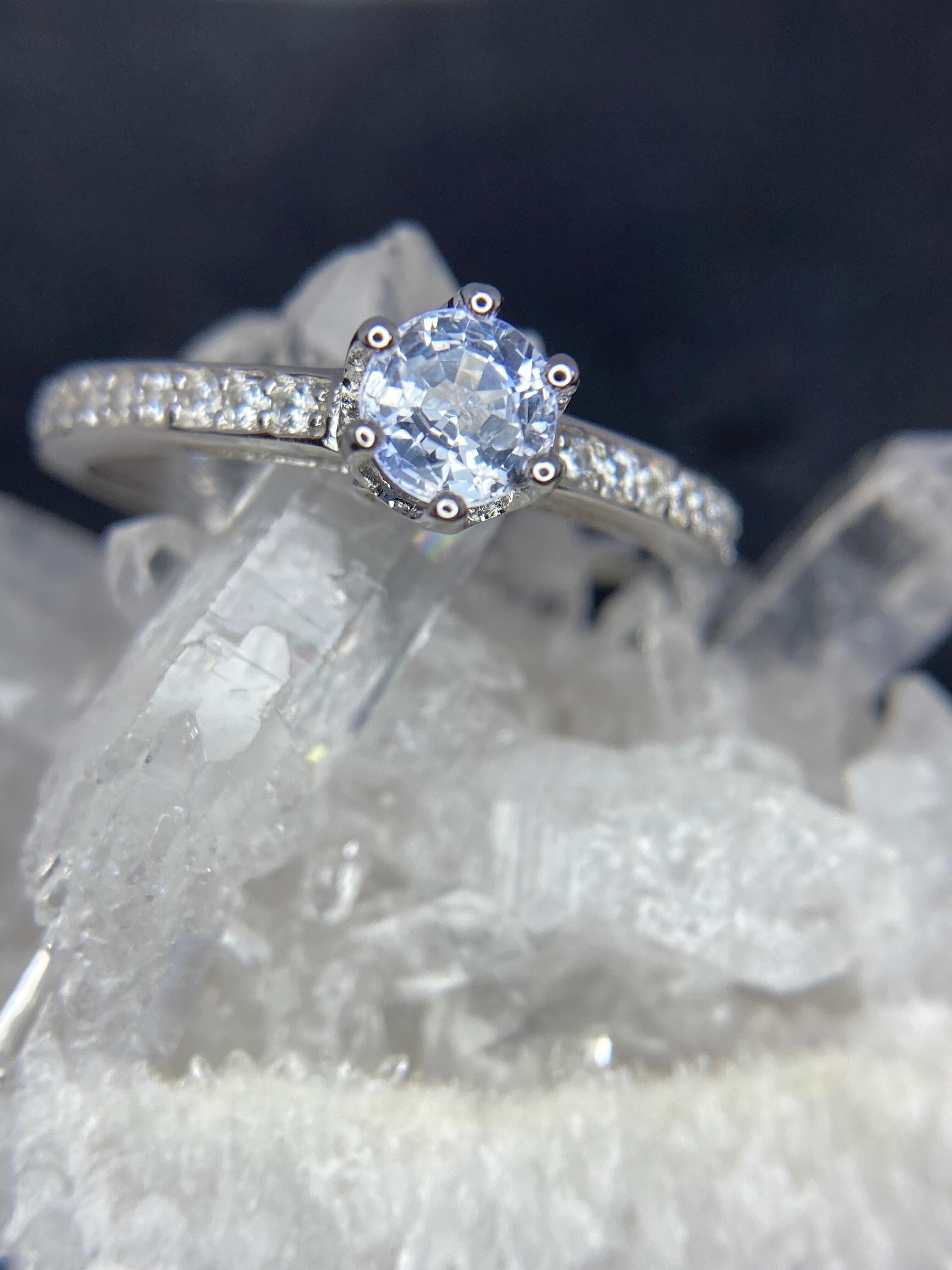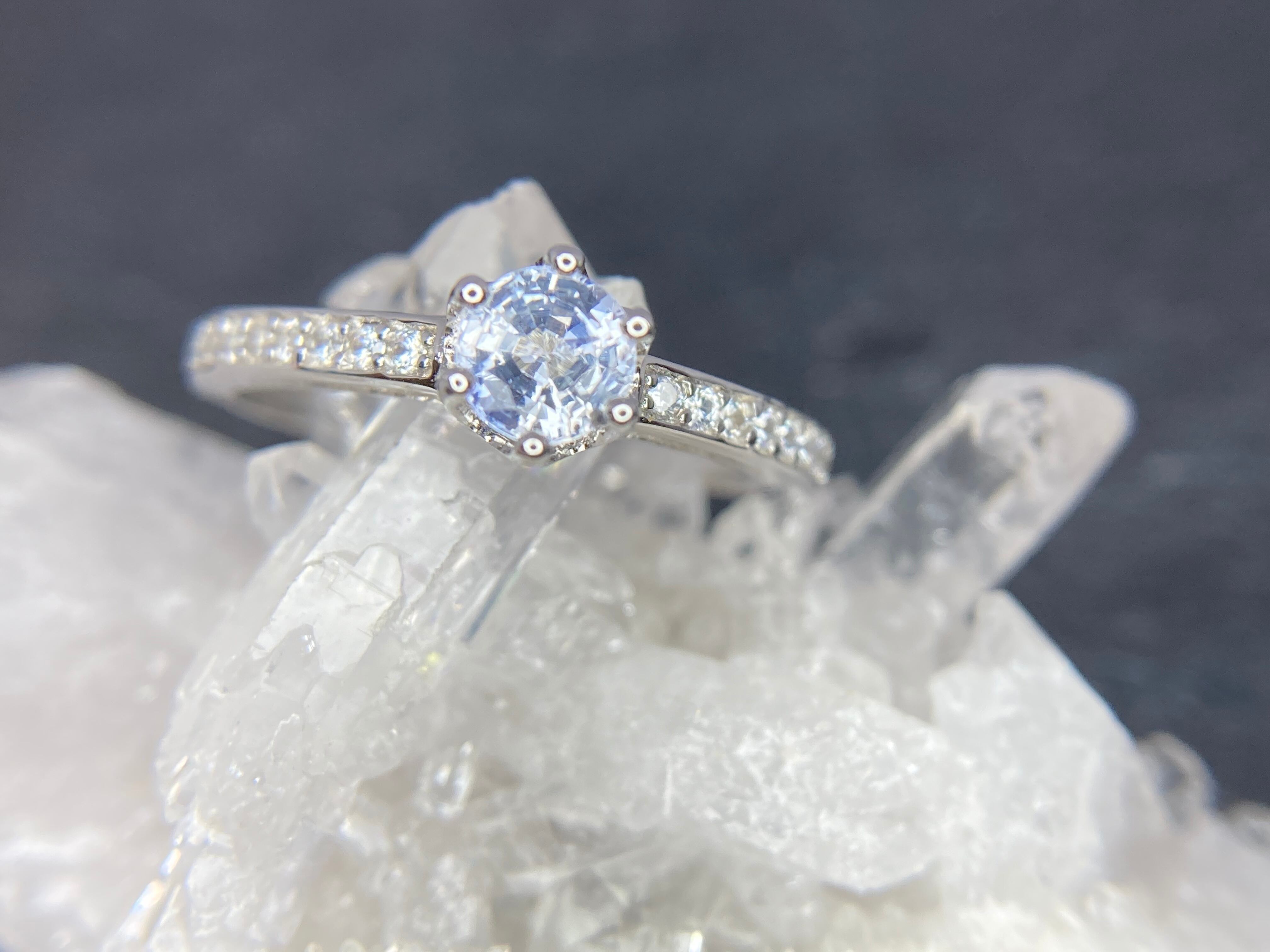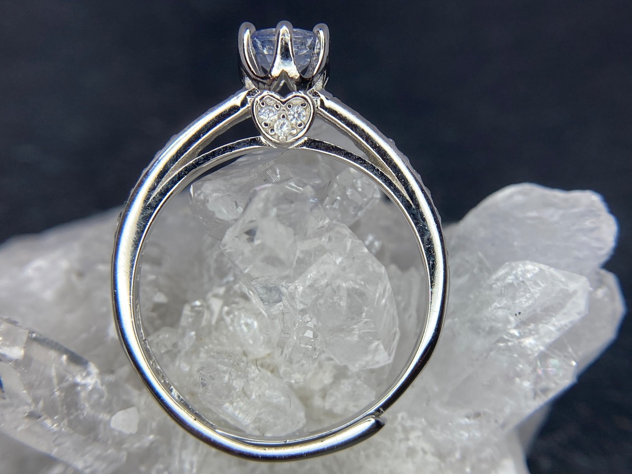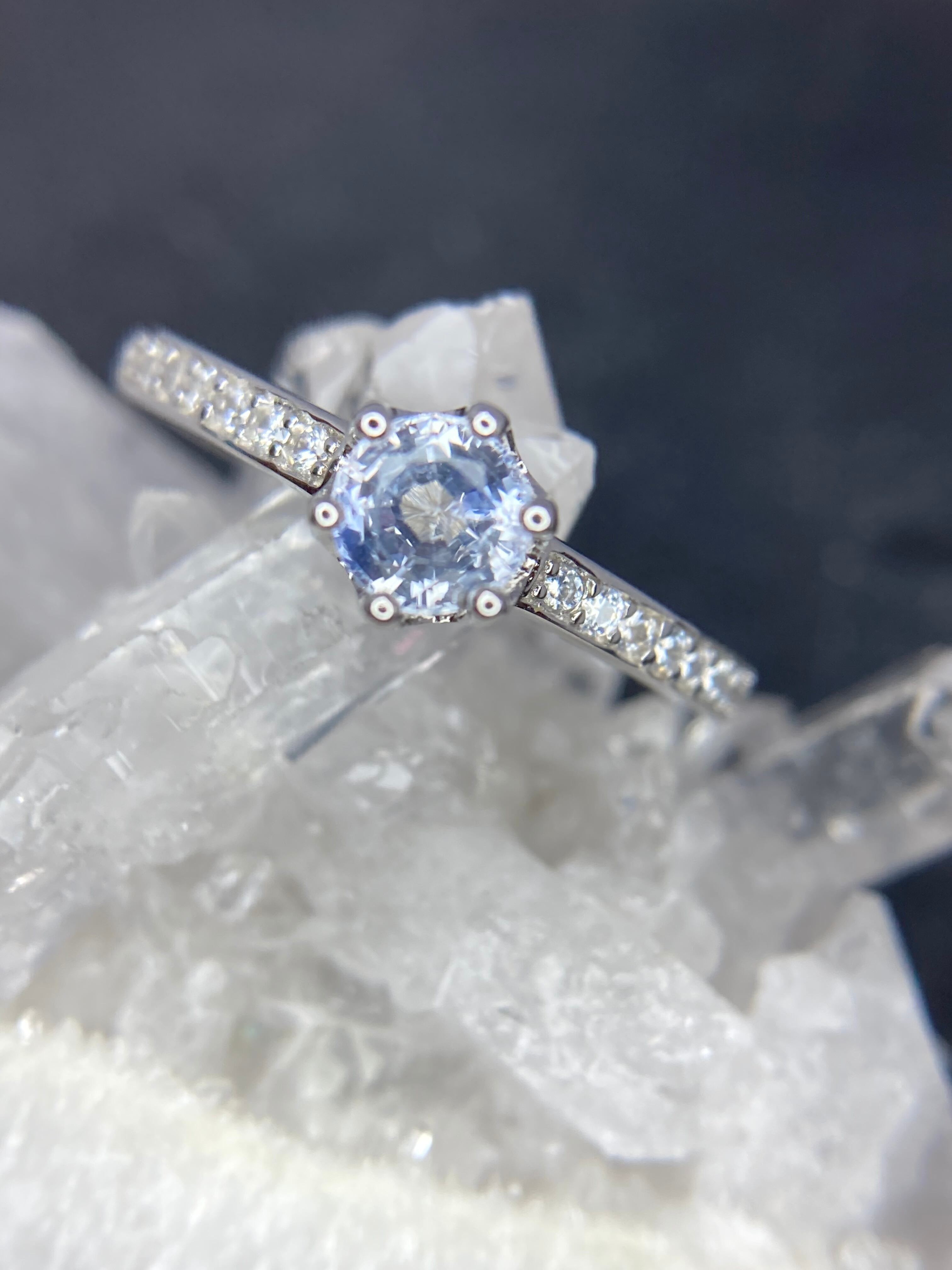 あなただけが見える小さなハートたちに支えられて、5mmUPの大きめサファイアが咲き誇りました。