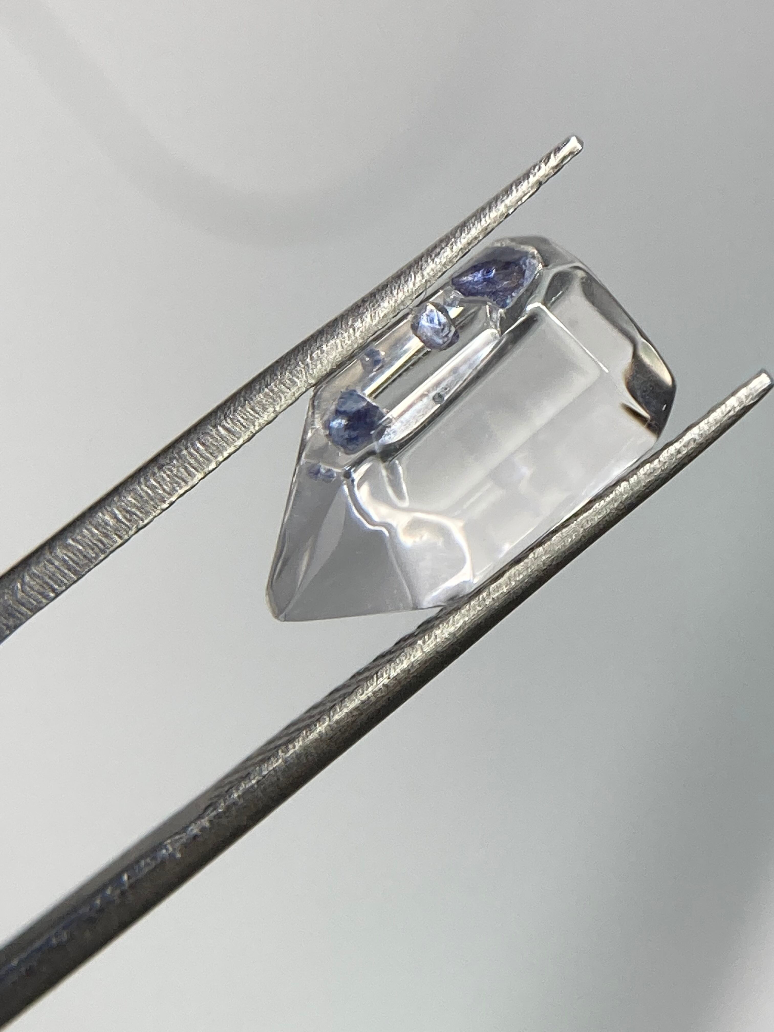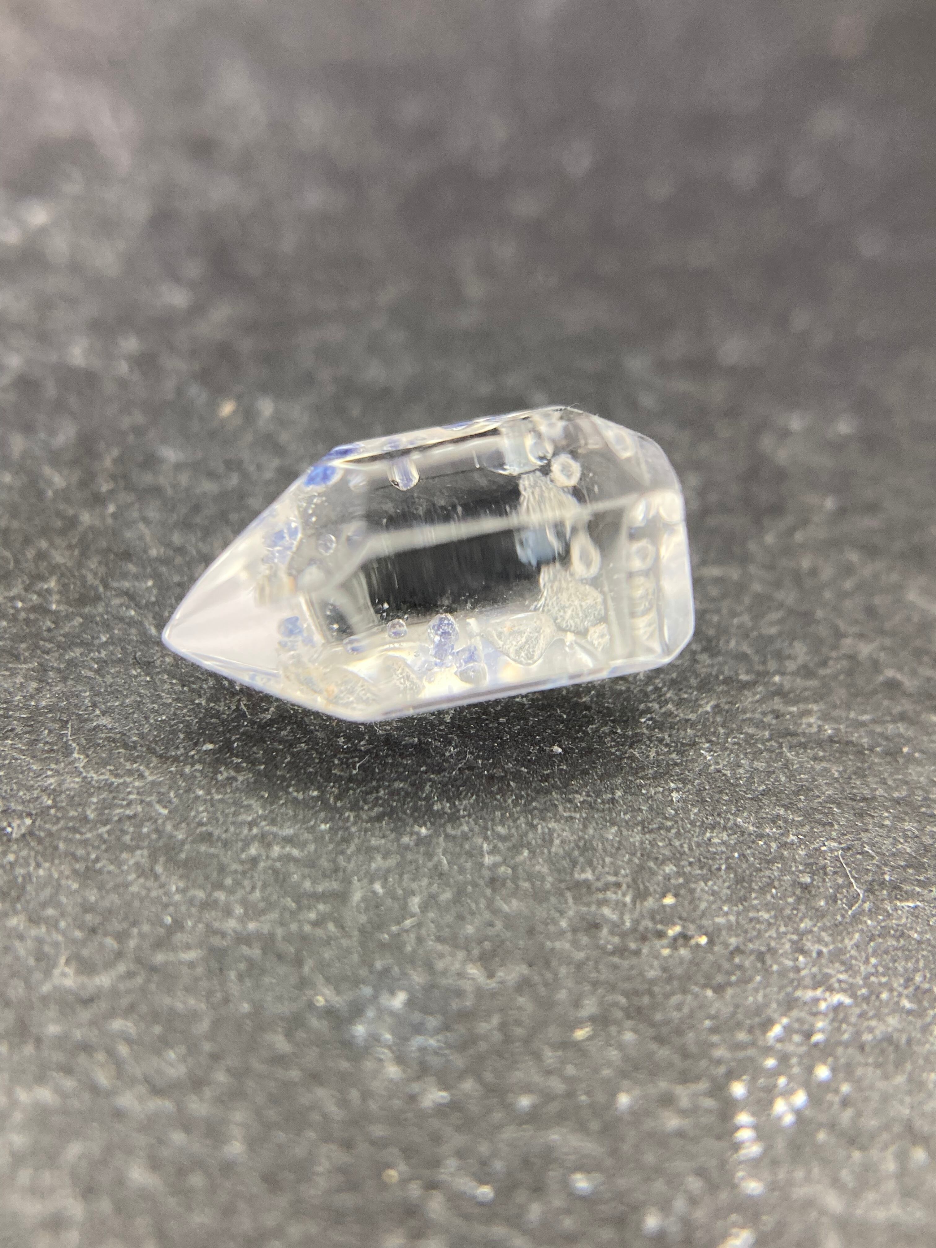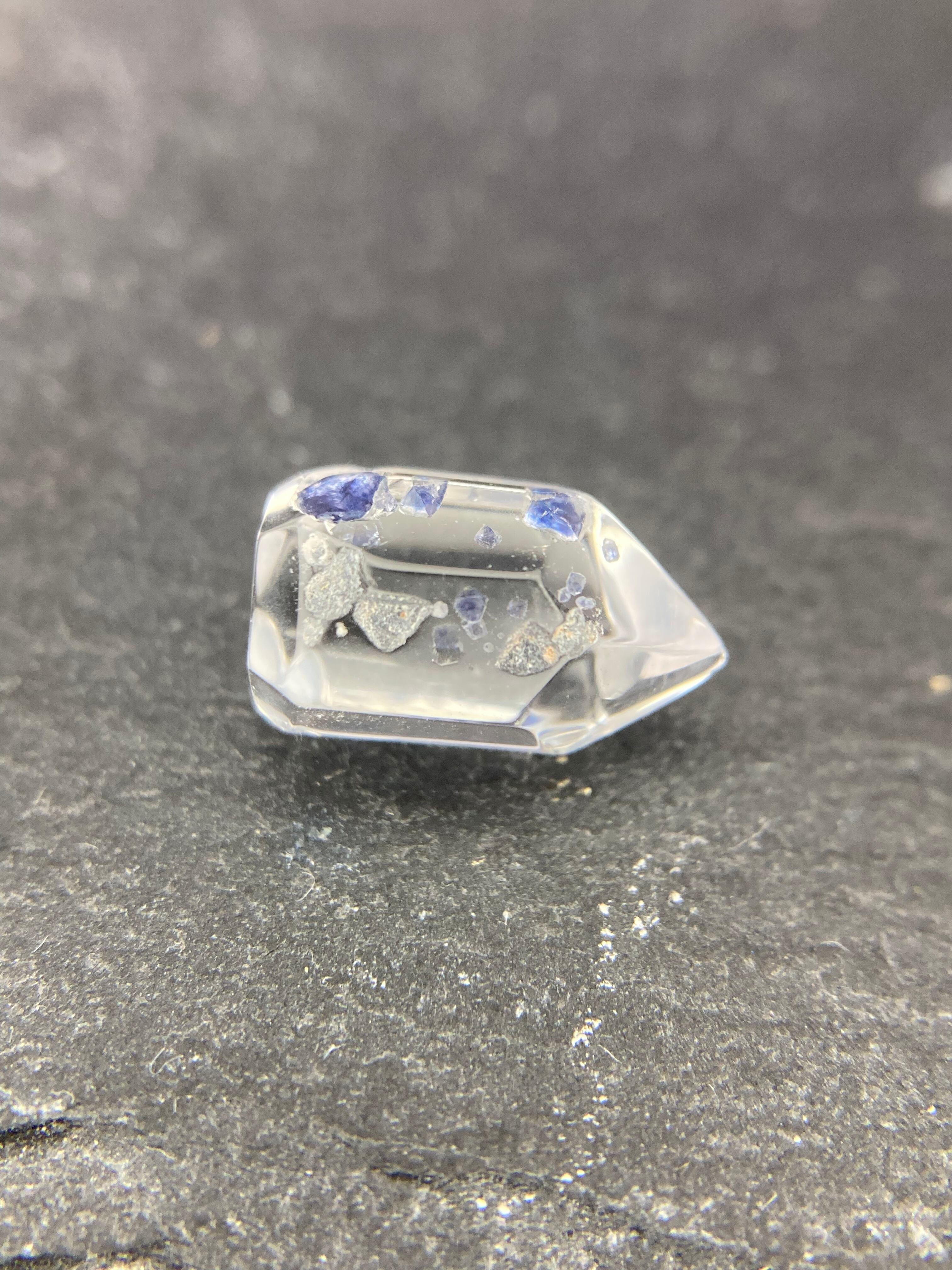 透明度の高い水晶部分にブルーのフローライト結晶が入った美しいポイントです。