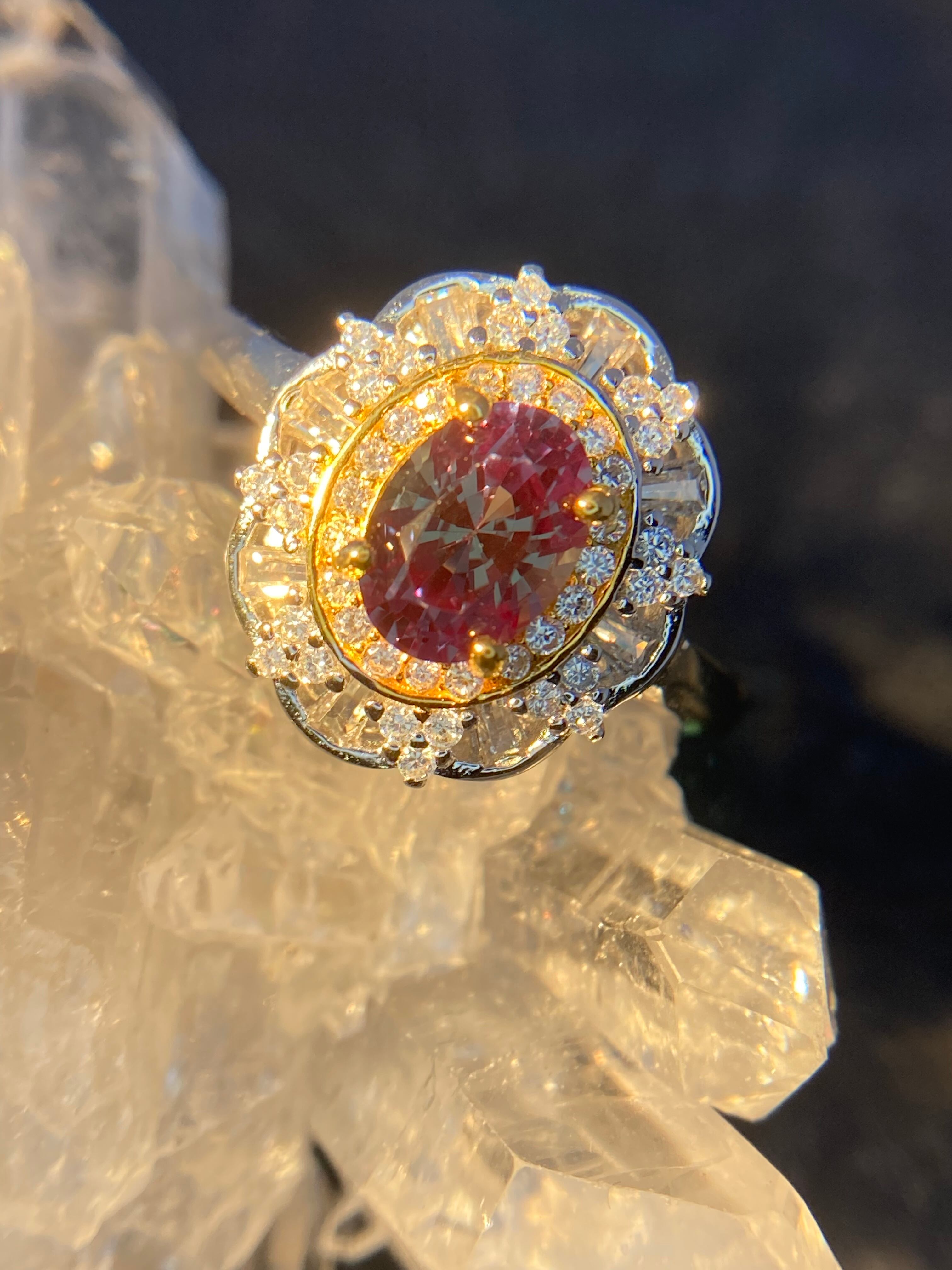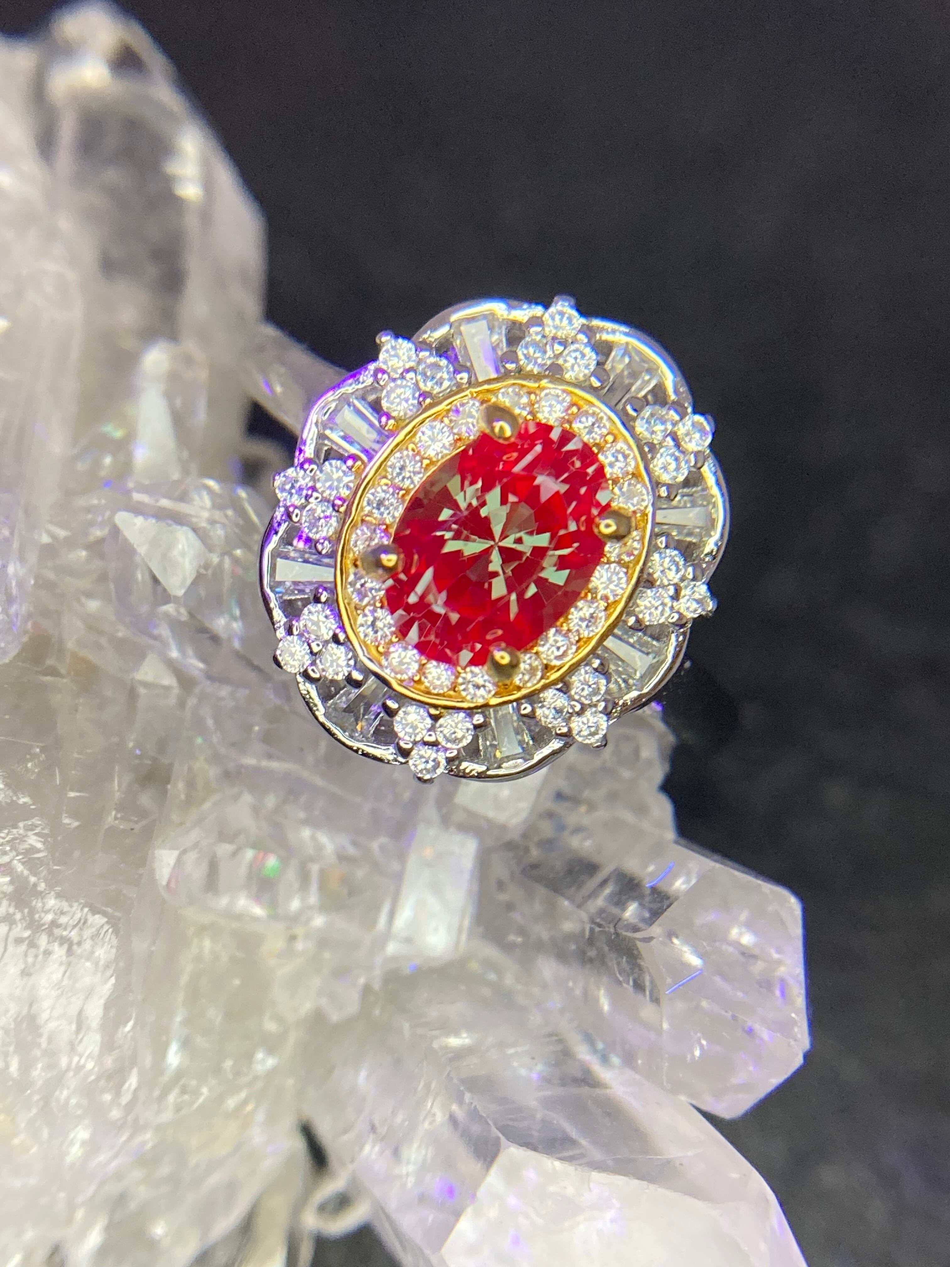 取り巻きのジルコニアたちがキラキラと輝き、夜になるとUVライトでドラゴンの瞳のような紅色に変わります。
