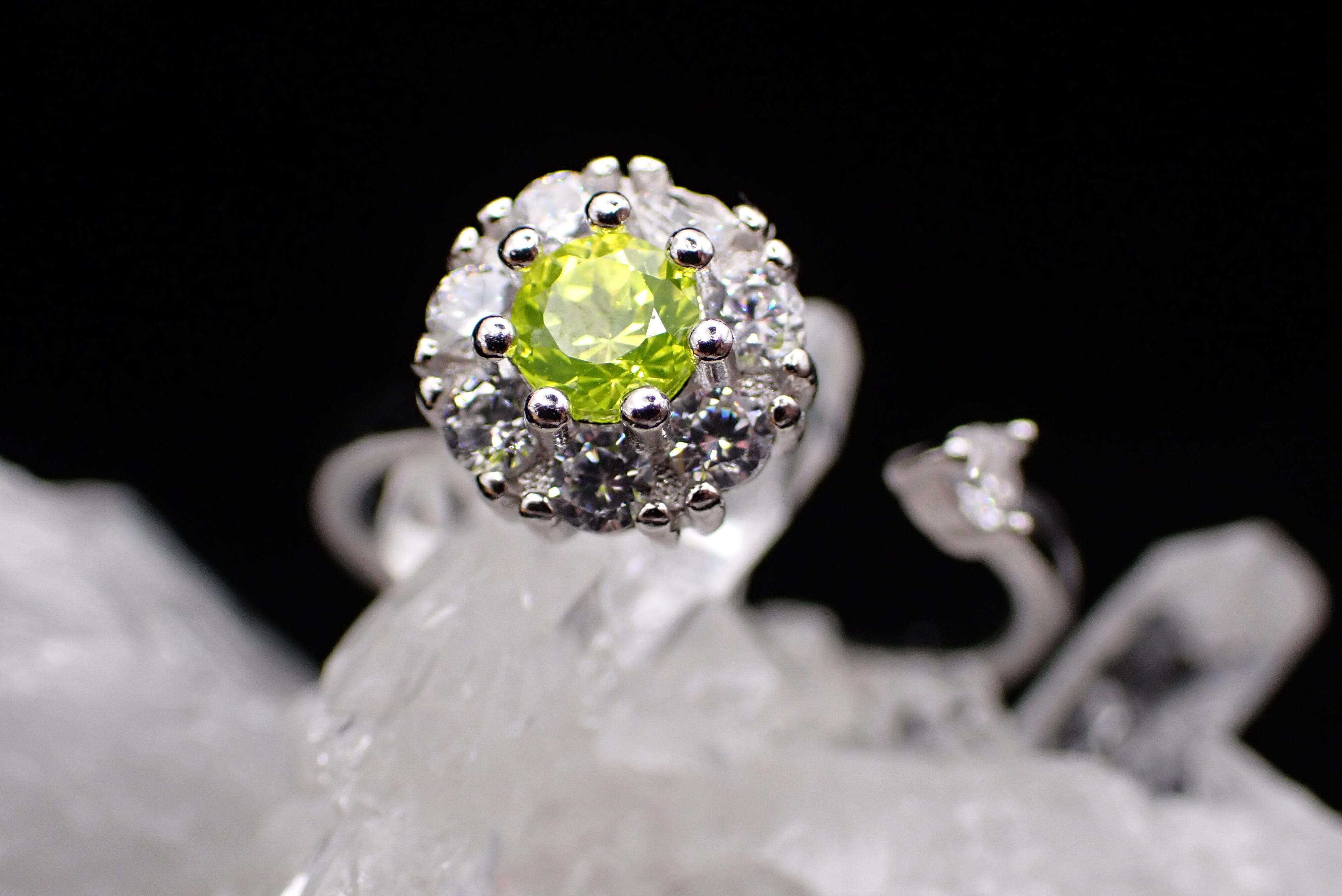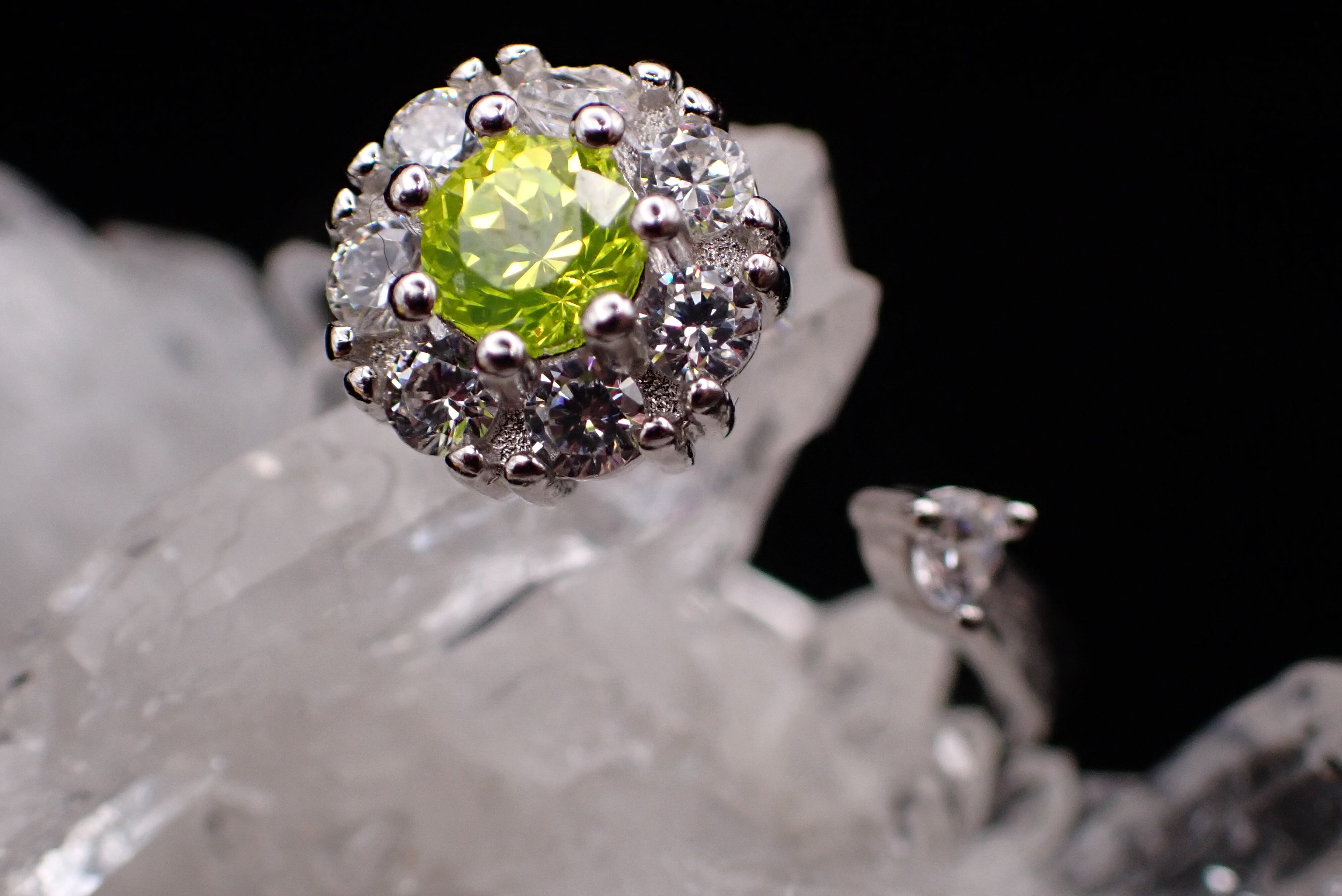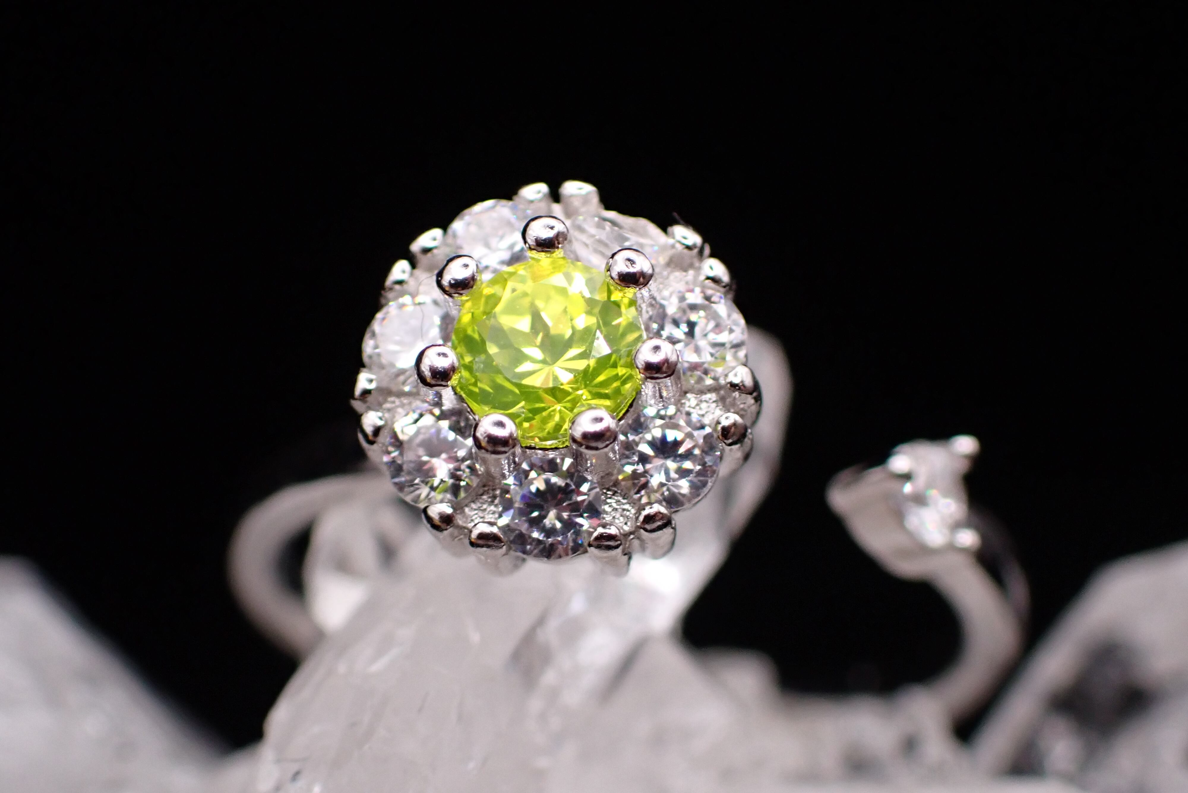 中央には4mmサイズの蛍光色の美しいYAGが輝きます。