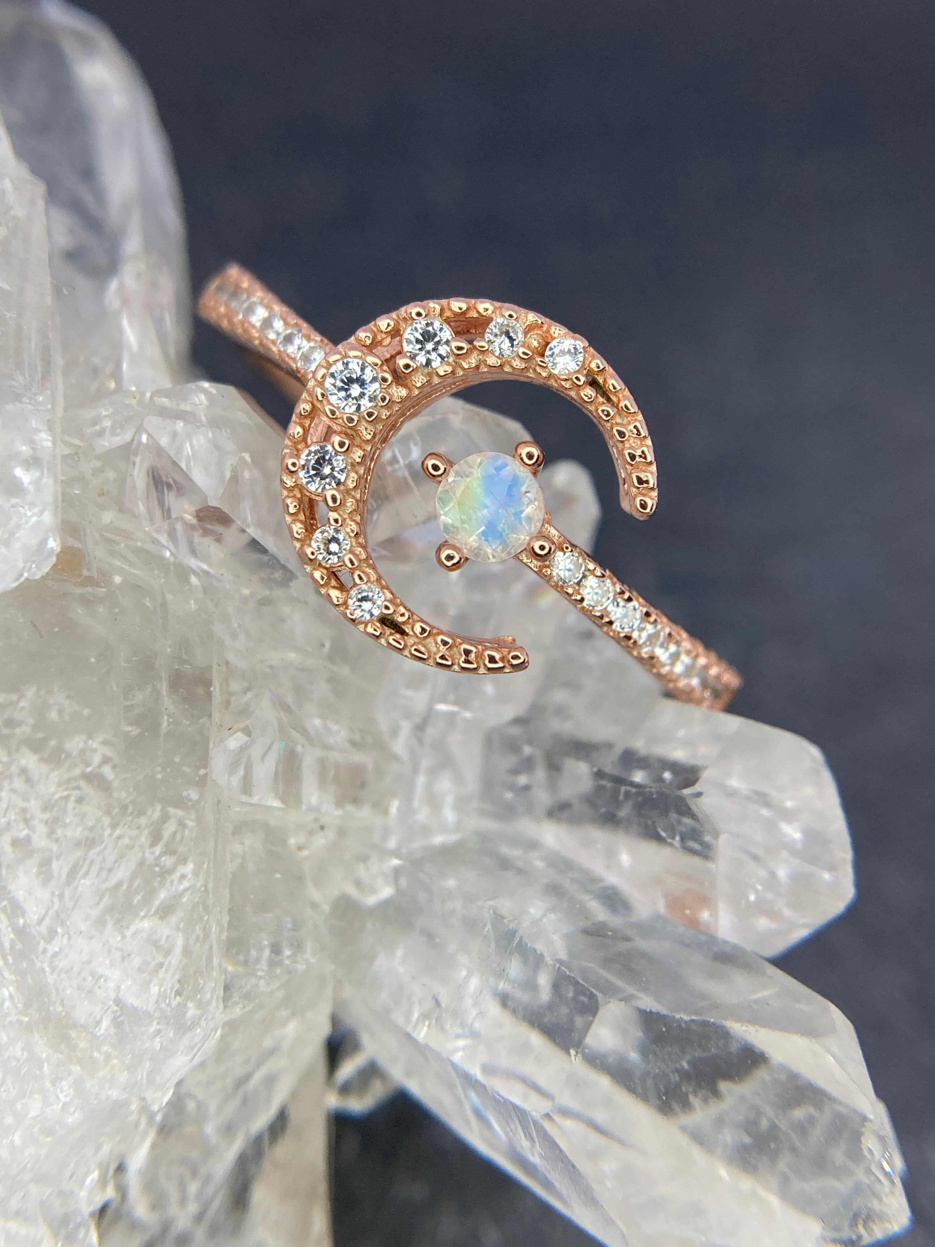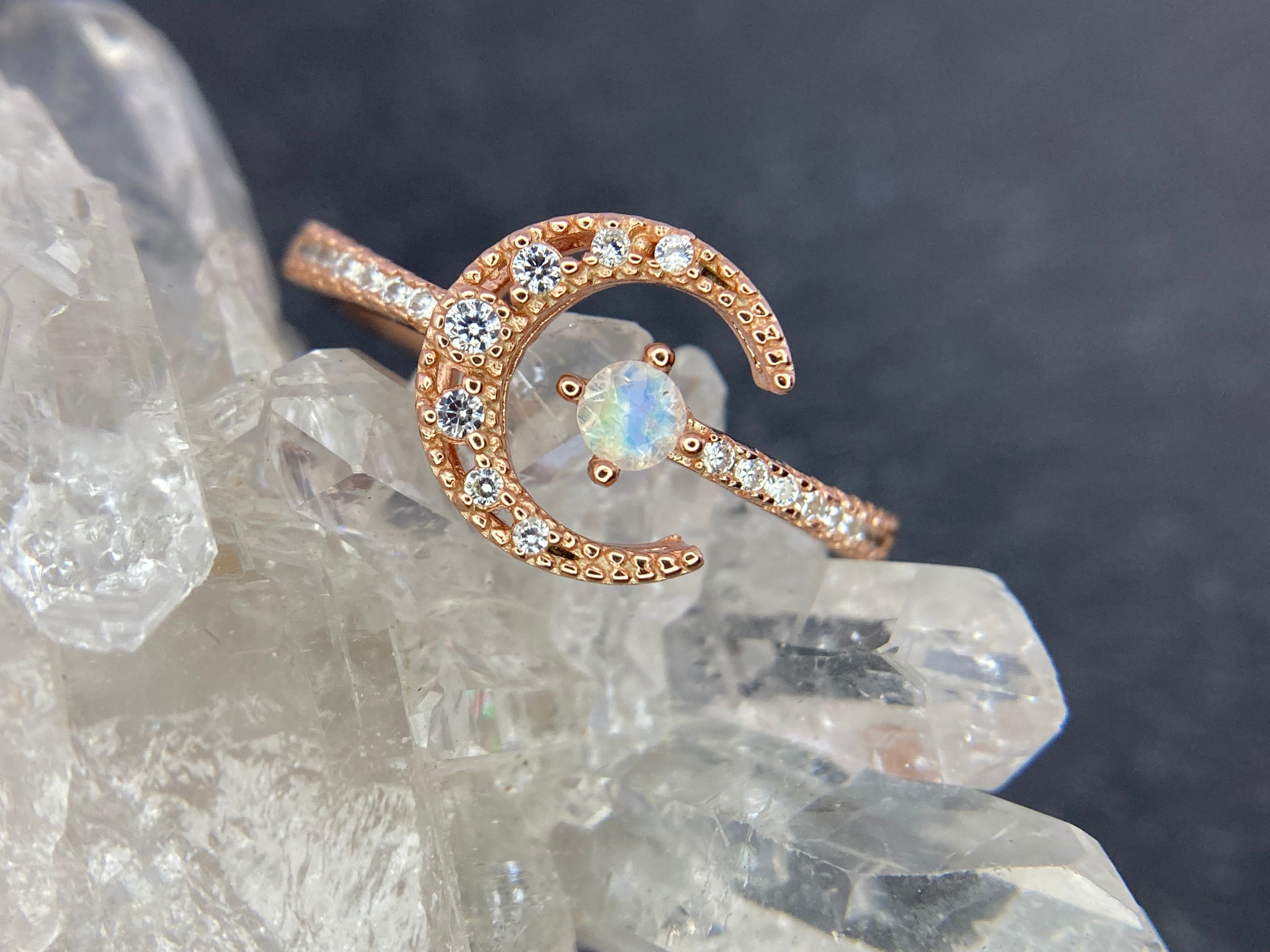 キラキラ煌めく三日月の真ん中には、美しいシラーの見えるムーンストーンが輝きます。