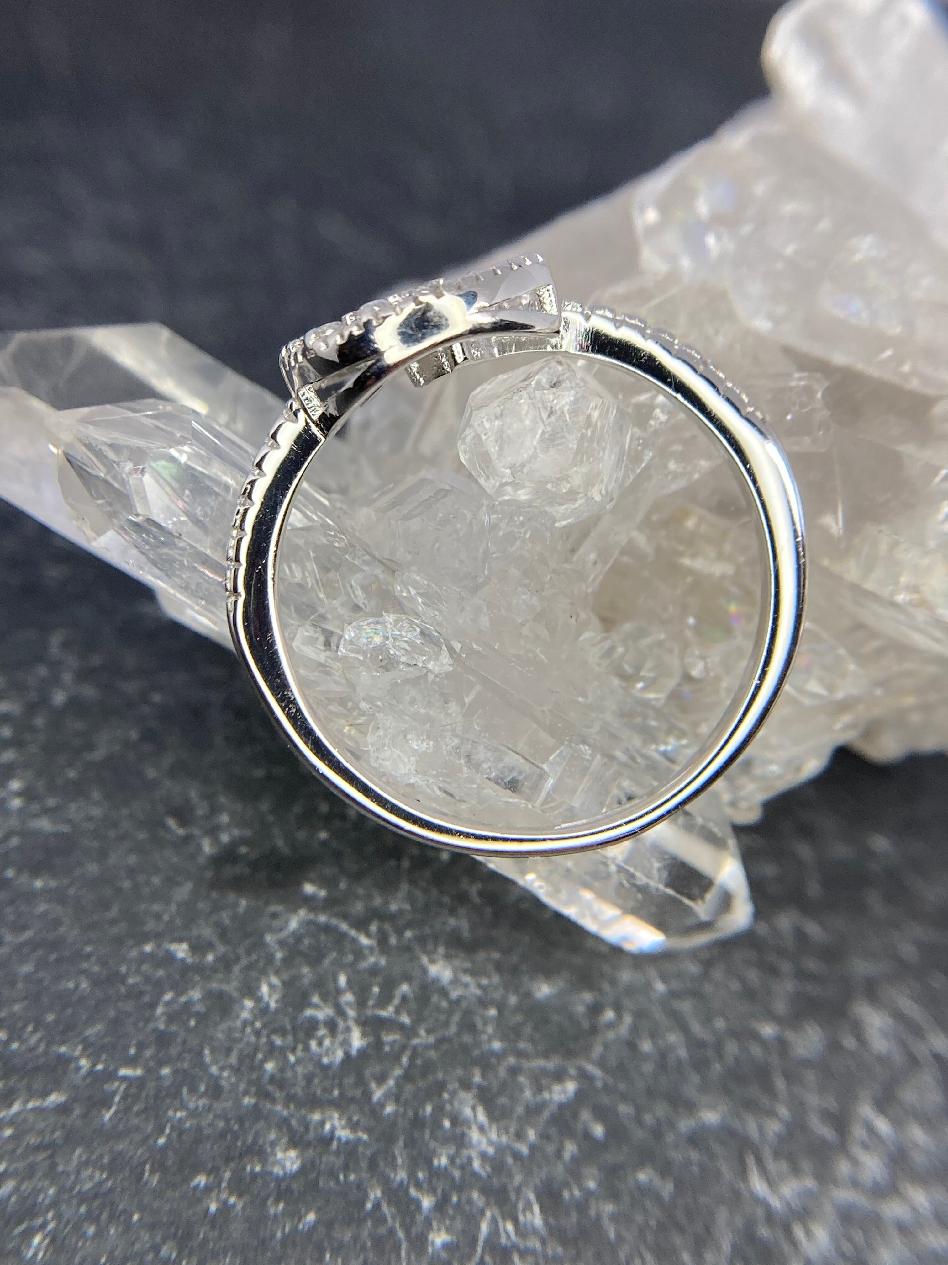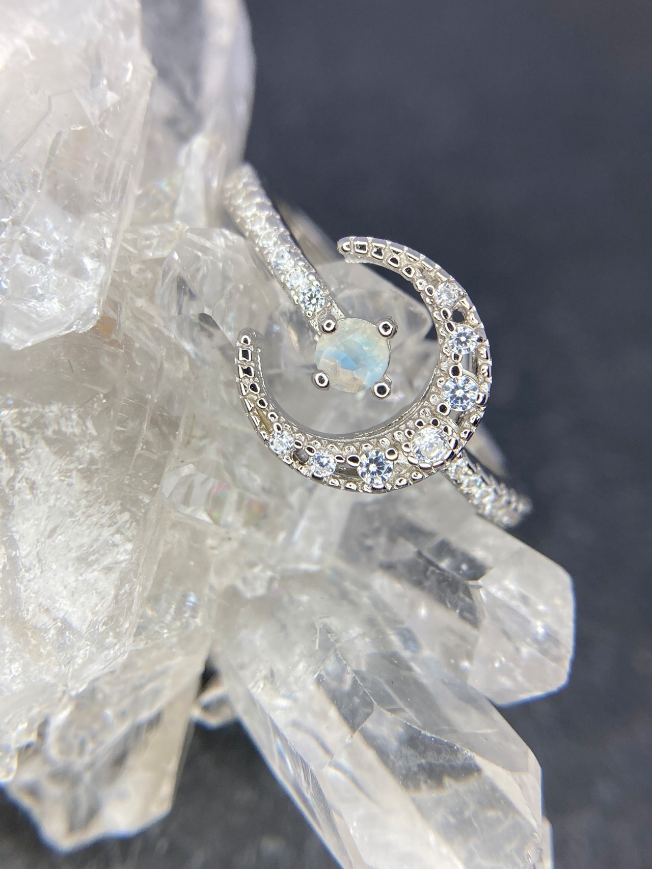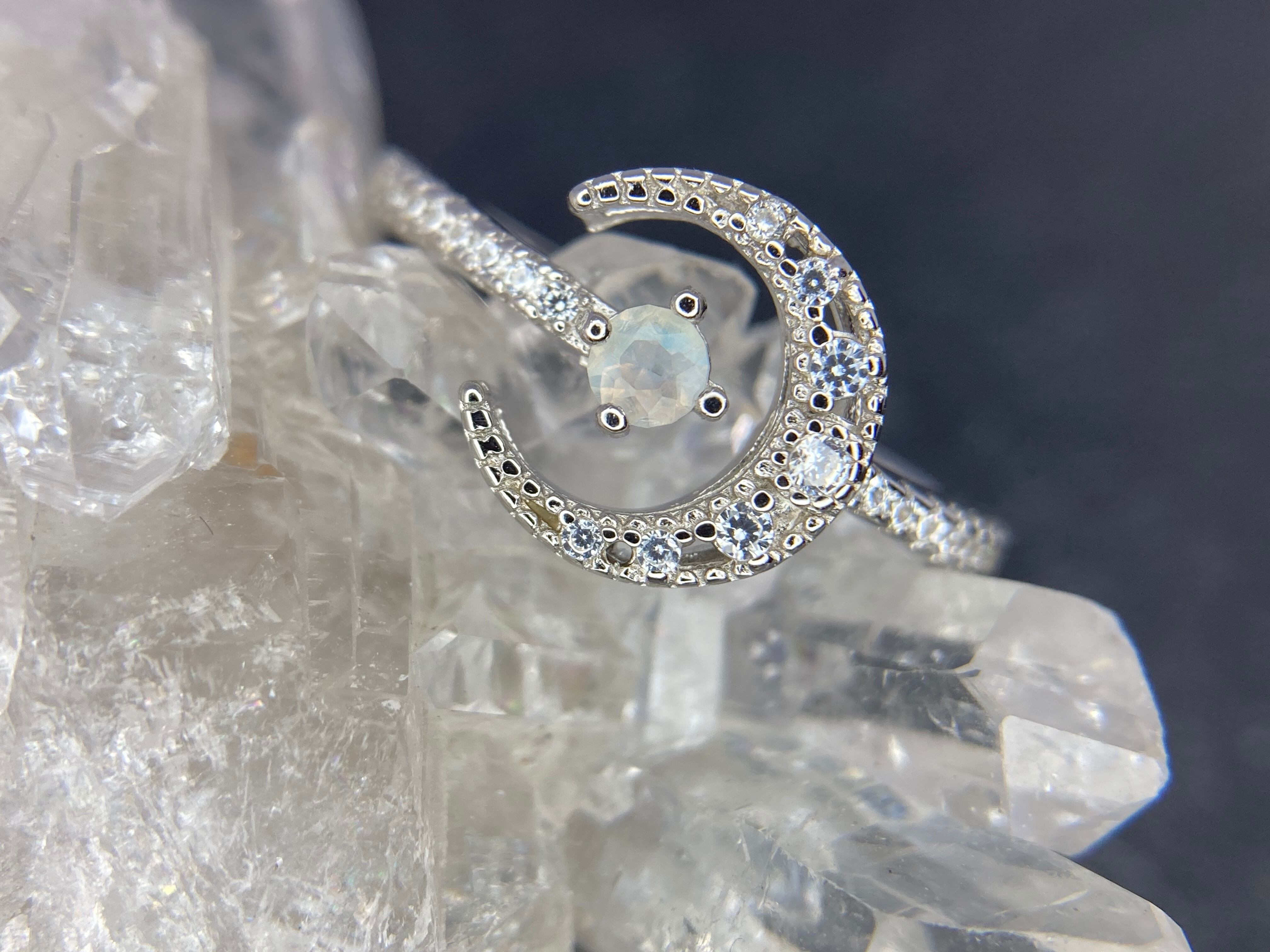 キラキラ煌めく三日月の真ん中には、美しいシラーの見えるムーンストーンが輝きます。