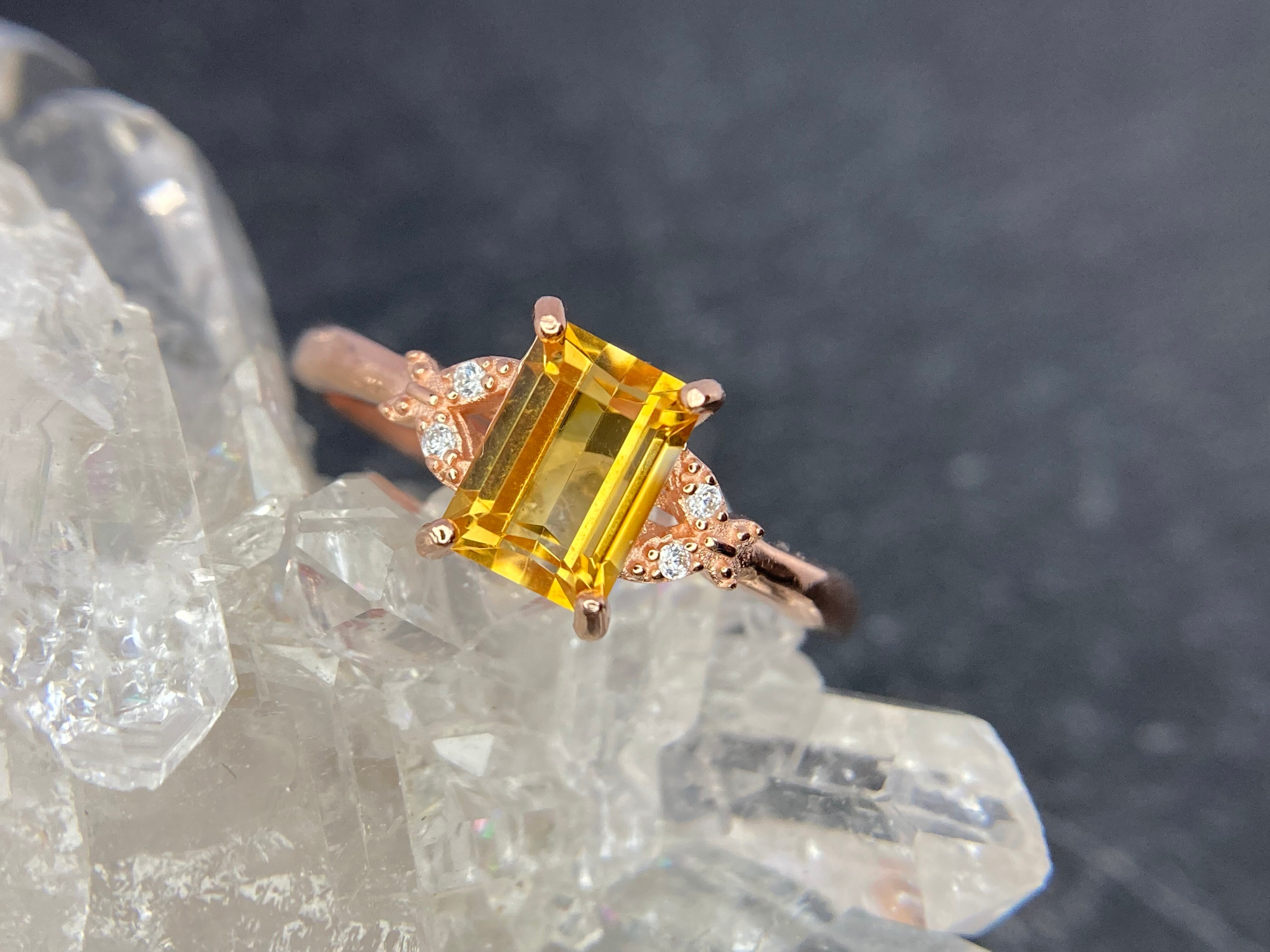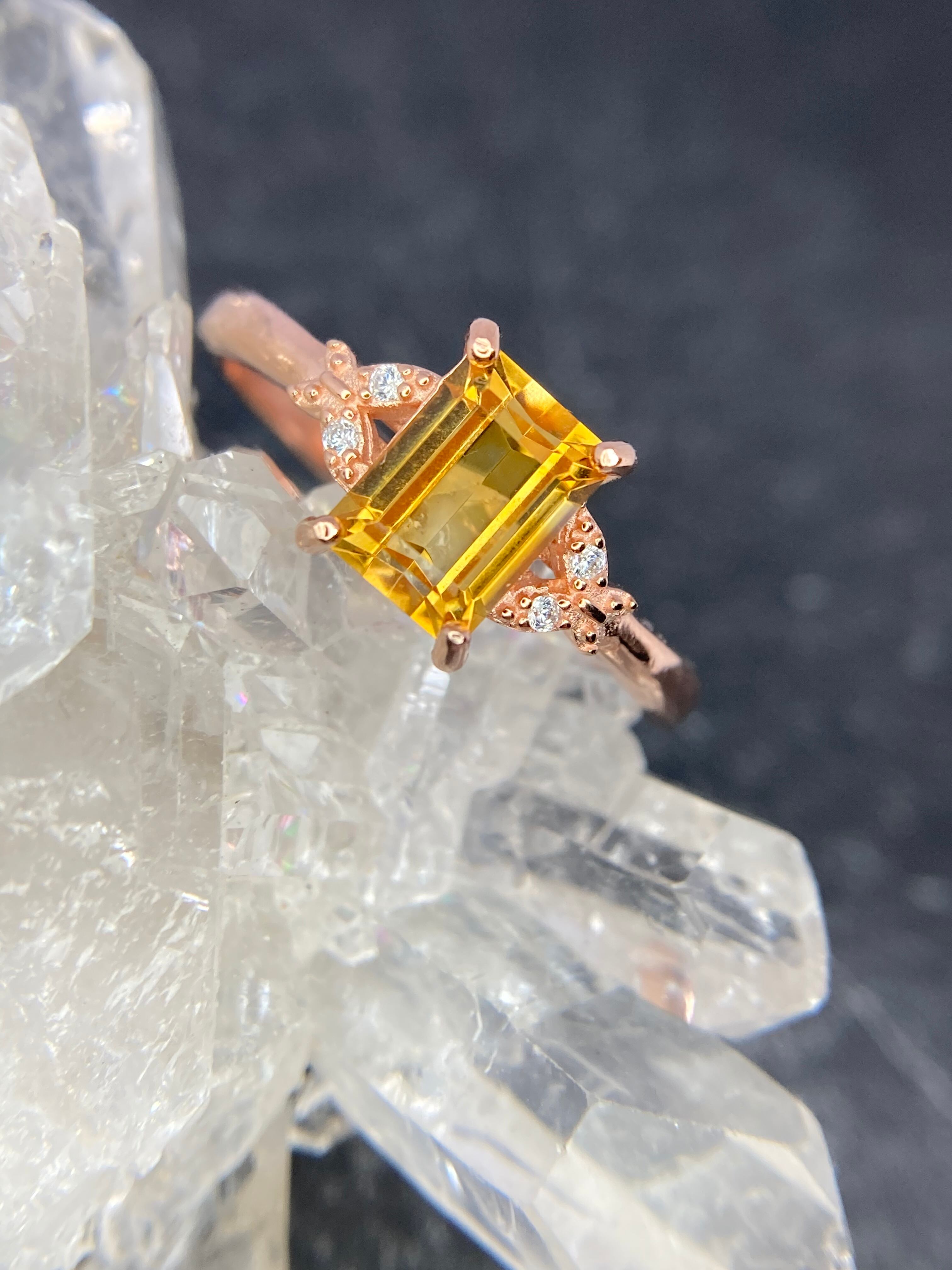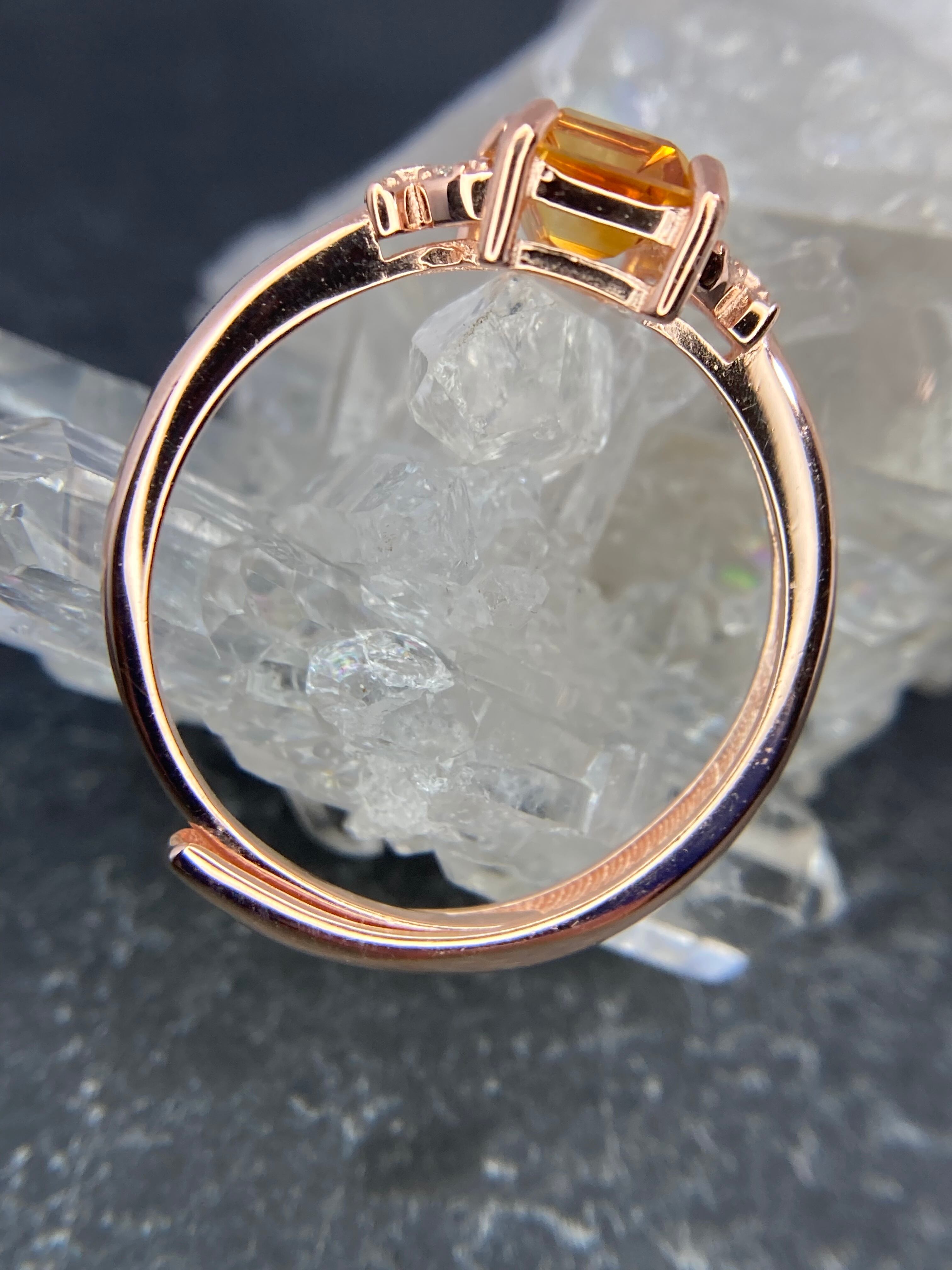 小さな蝶々たちが支える台座の中央に鎮座するのは美しいバイカラーシトリン。