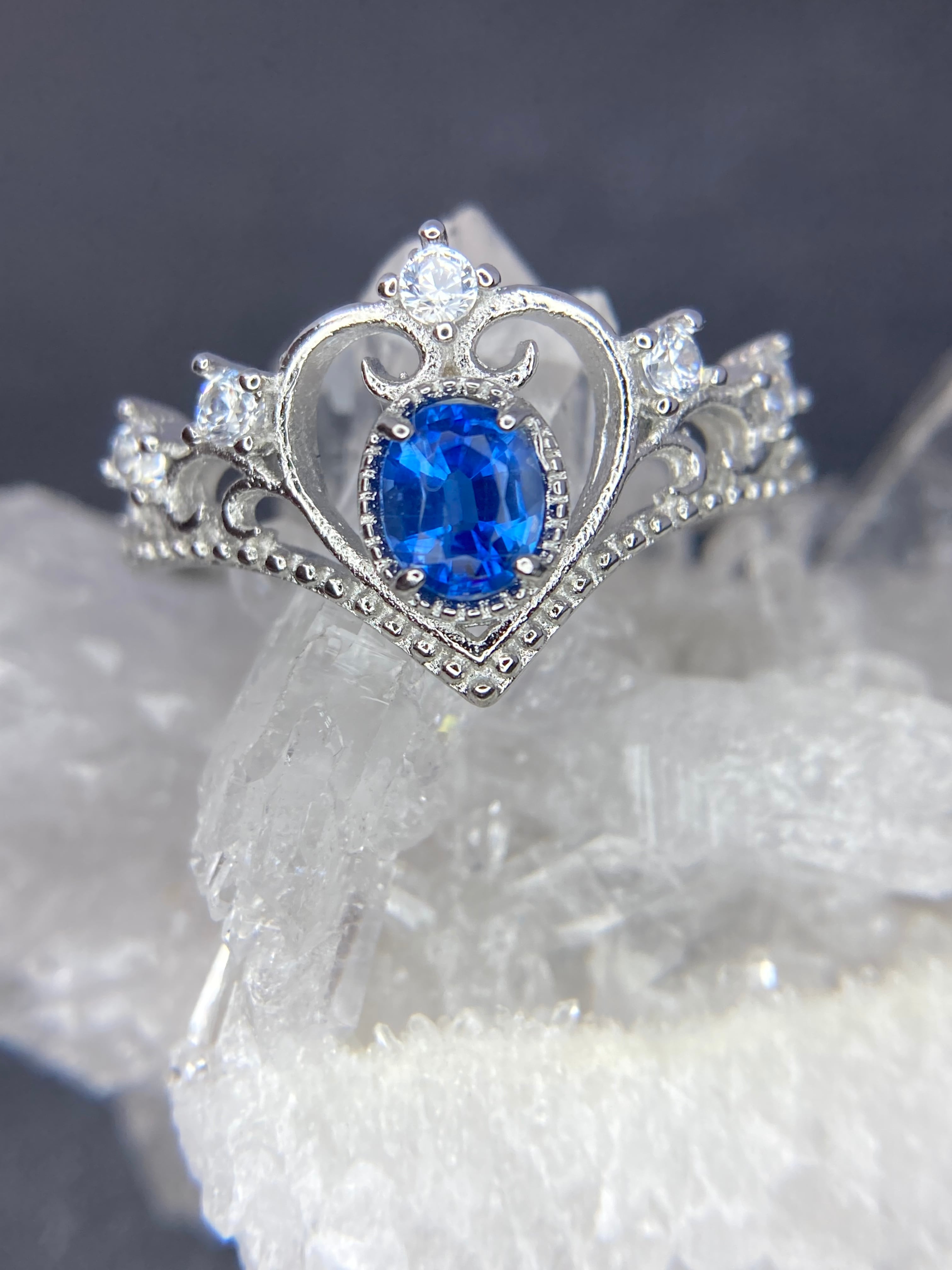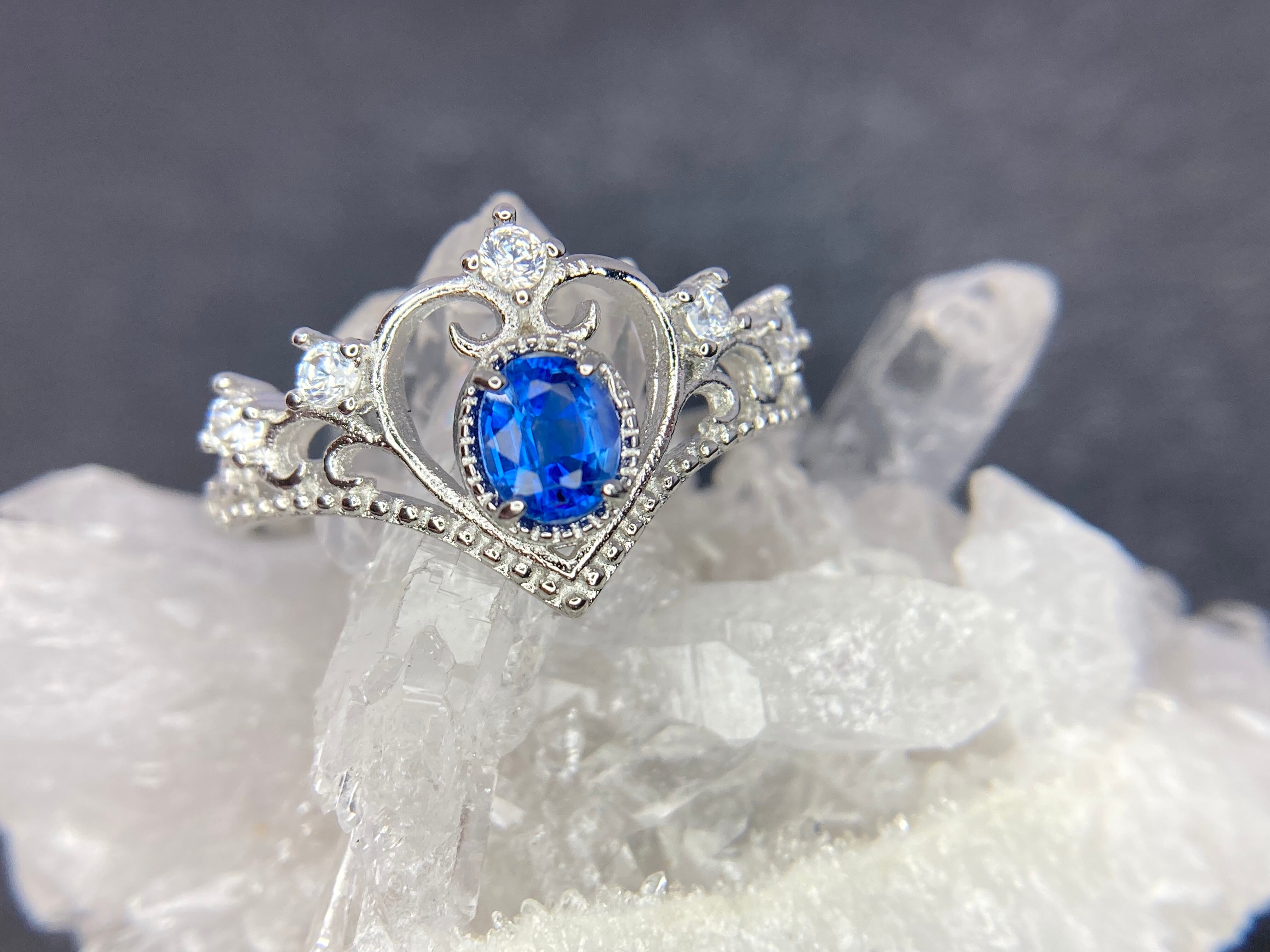 大きなハートに囲まれて輝く、深く鮮やかなブルーが美しいカイヤナイト。