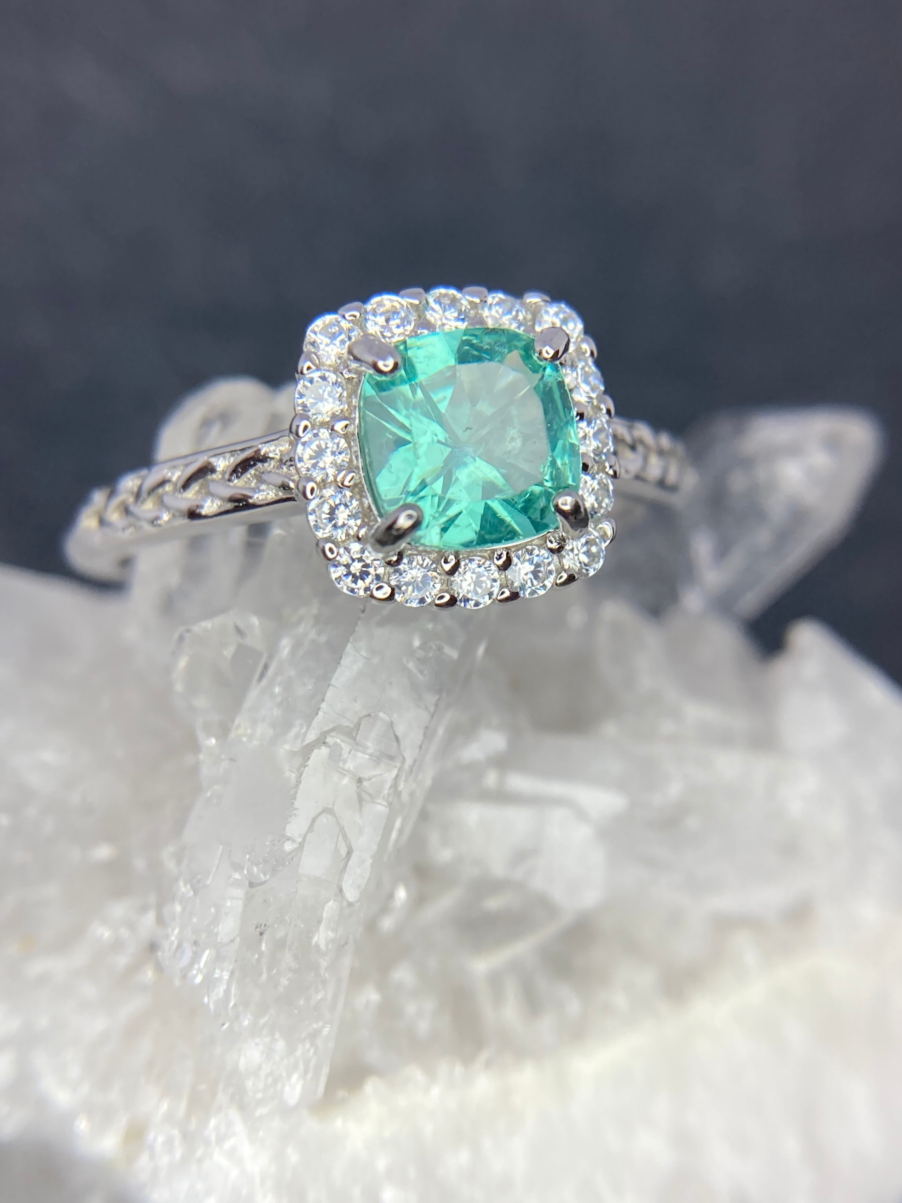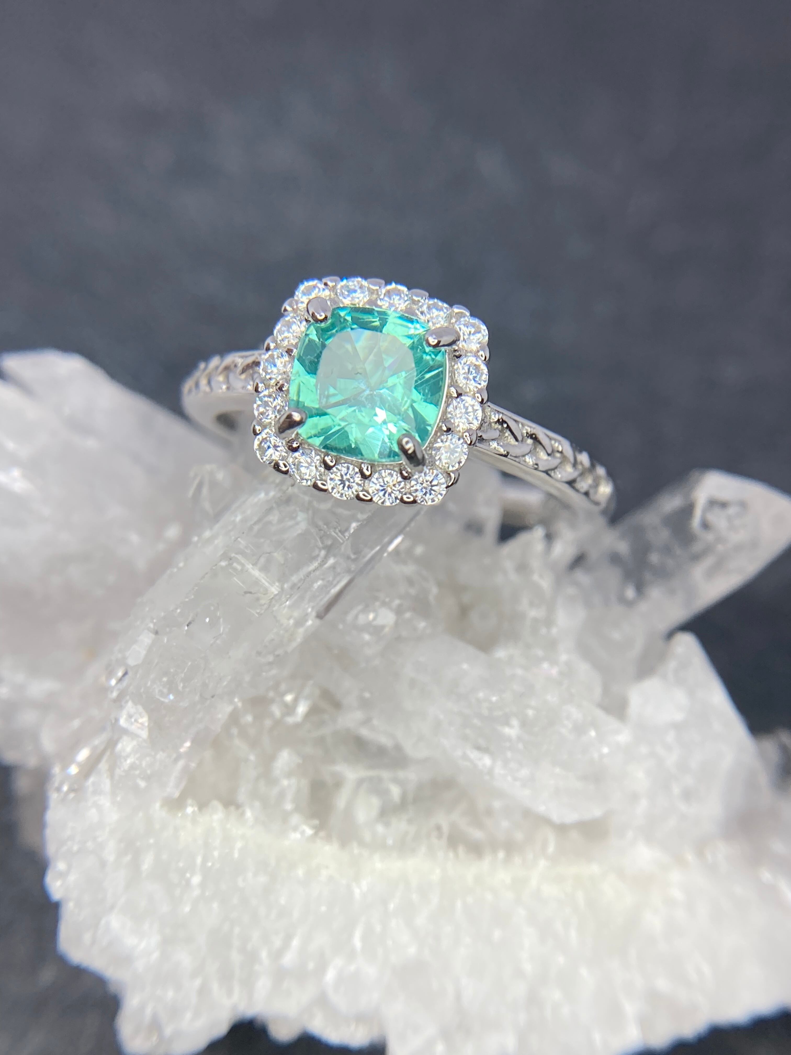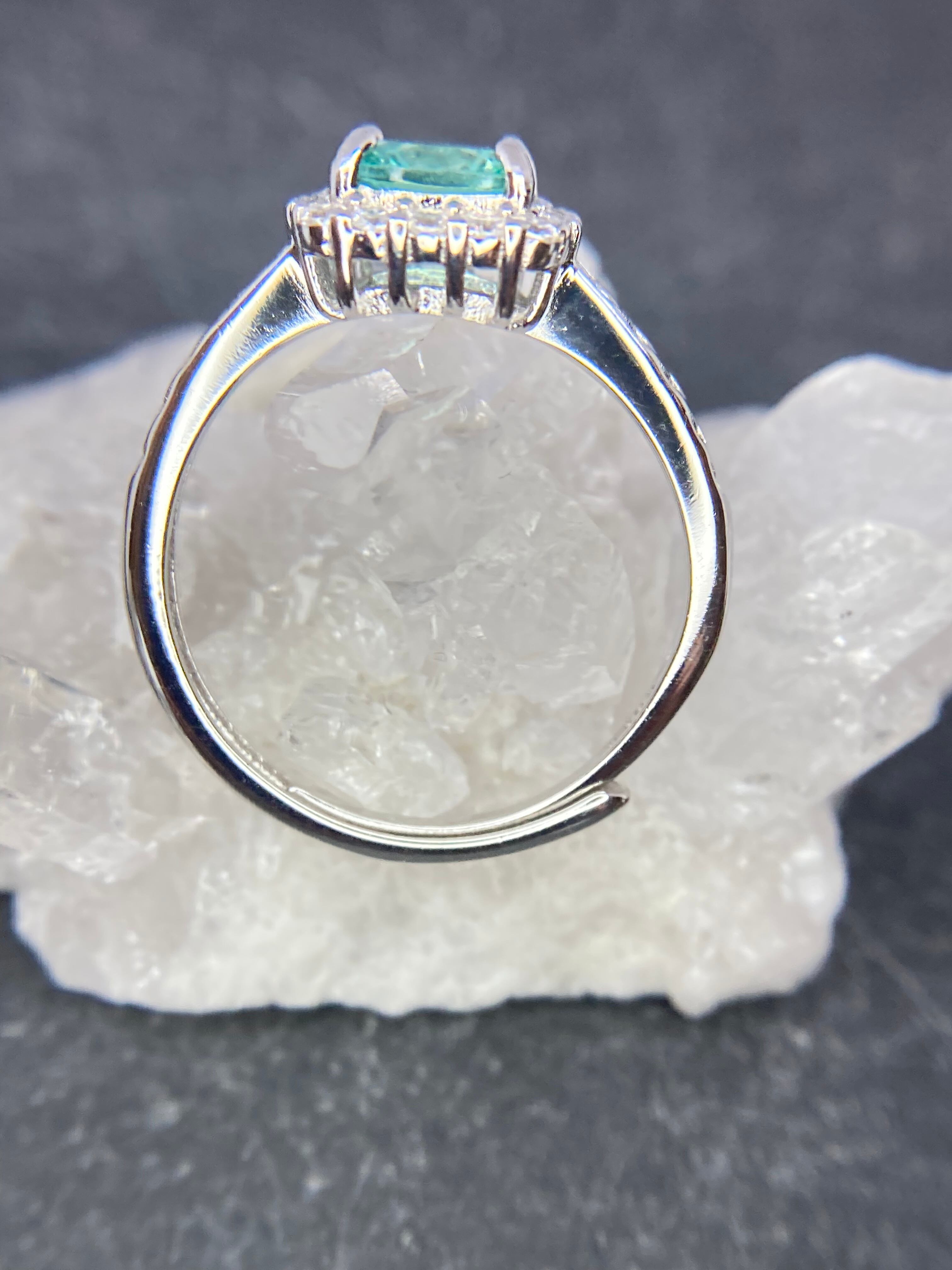 取り巻きのジルコニアたちがキラキラと輝き、カットが綺麗なアパタイトの美しさを引き立てます。
