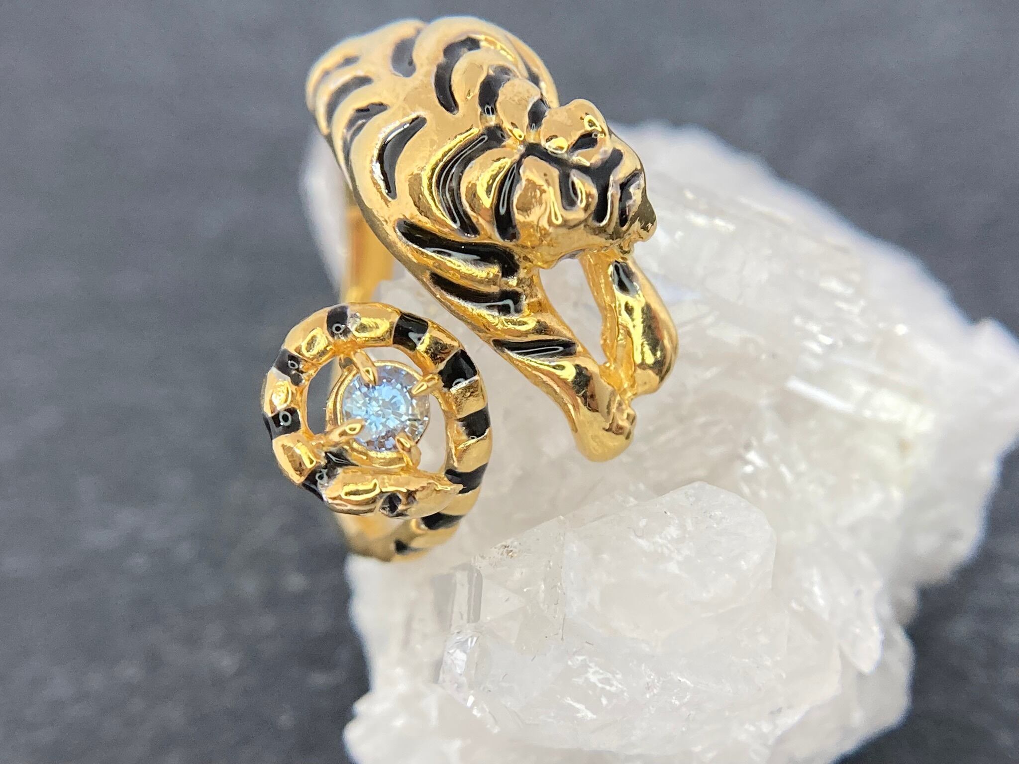 虎模様はエナメルで表現しており、艶やかな強さを感じていただけます。