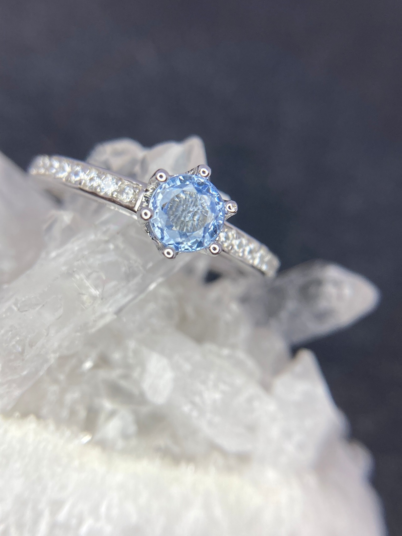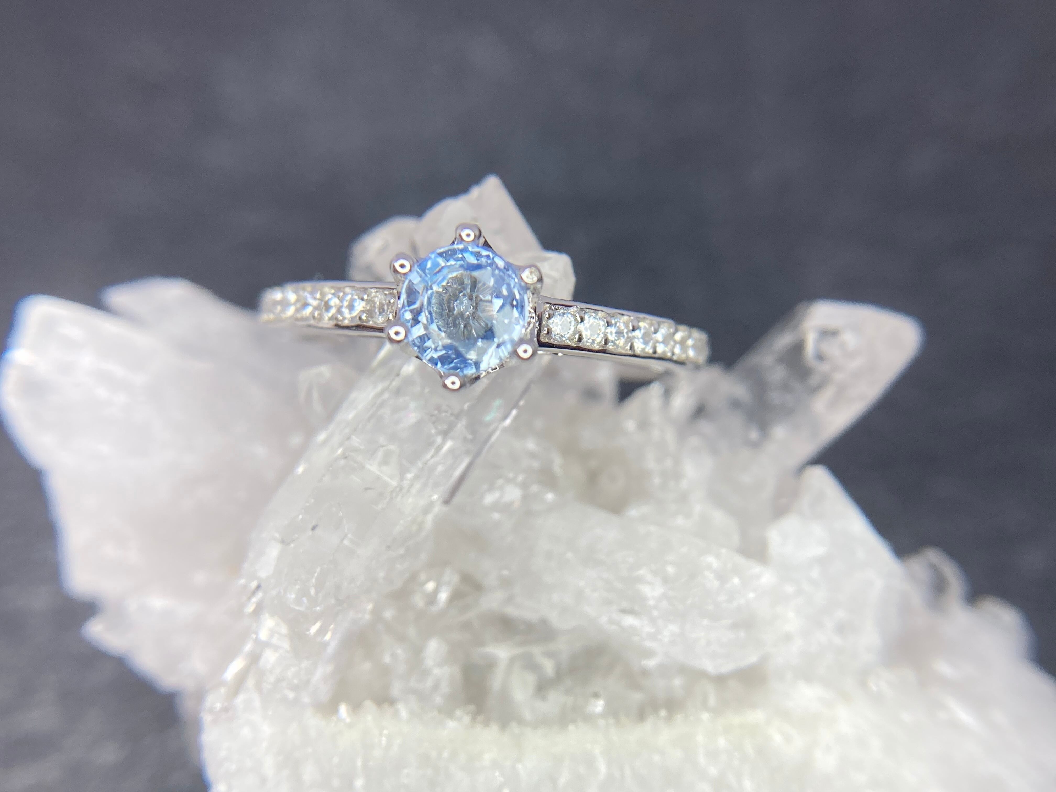 あなただけが見える小さなハートたちに支えられて、4mmUPの大きめな美しいサファイアが咲き誇りました。