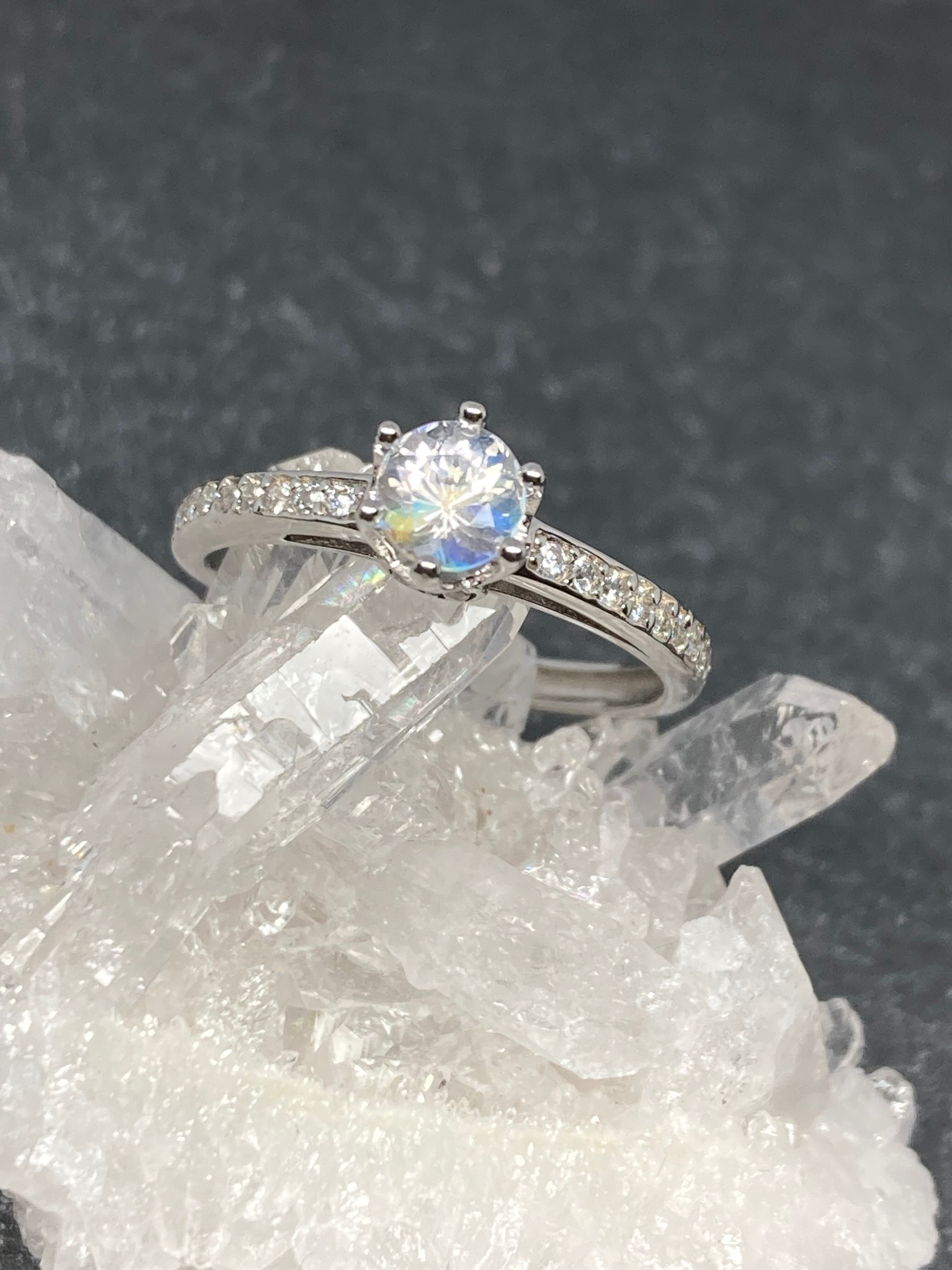 まるで虹を閉じ込めたような美しいカットのピースが指を動かすたびにきらきらと煌めきます。