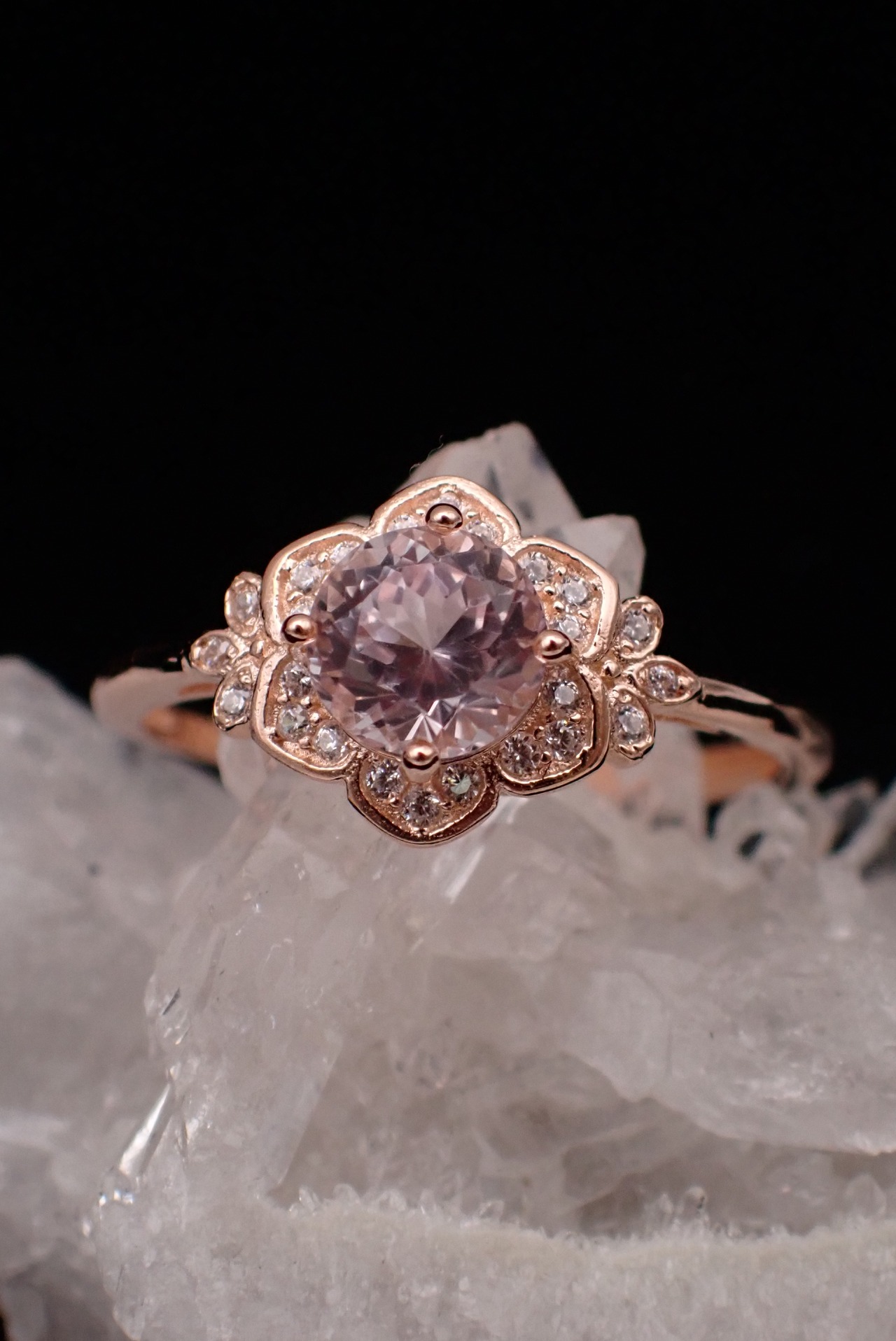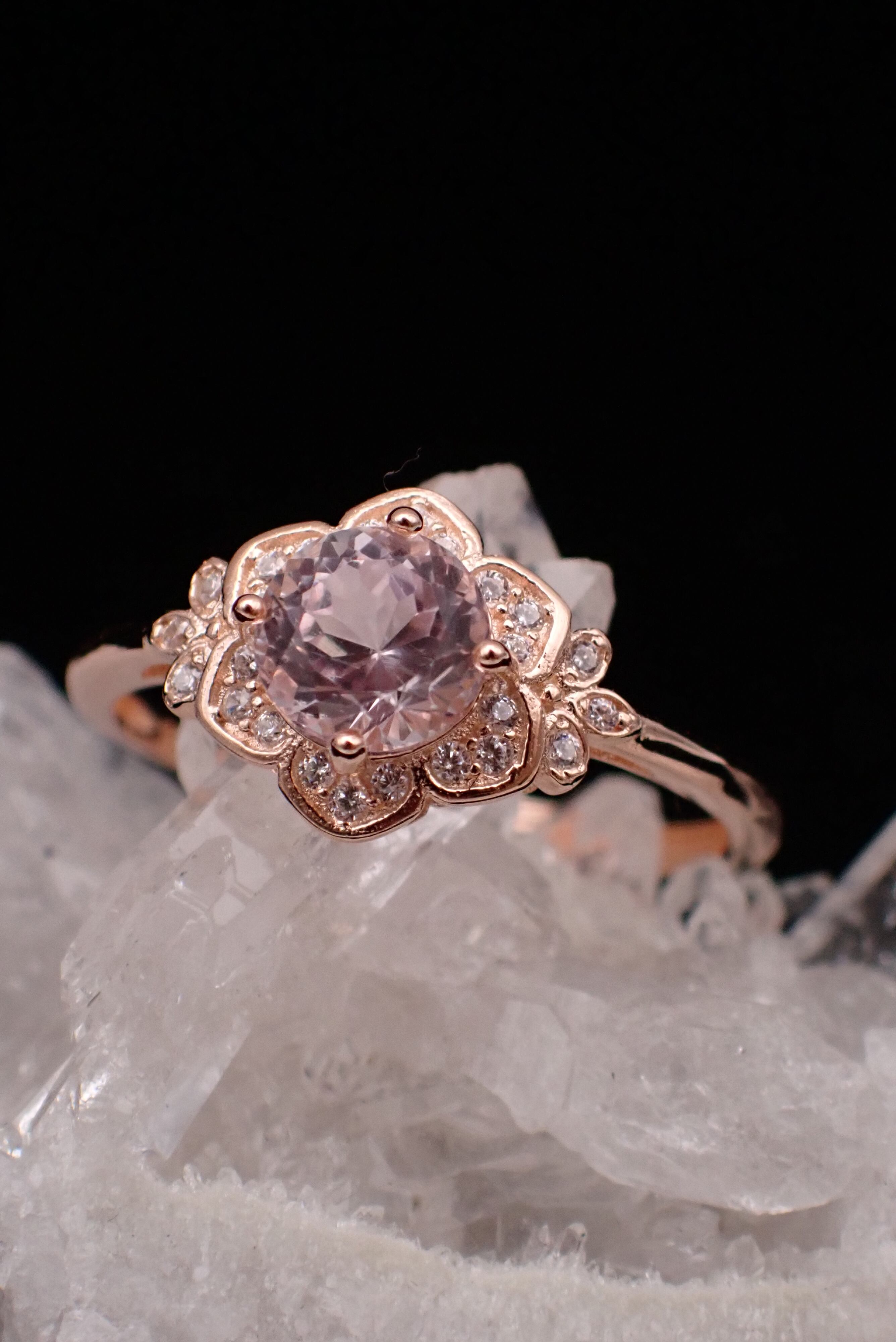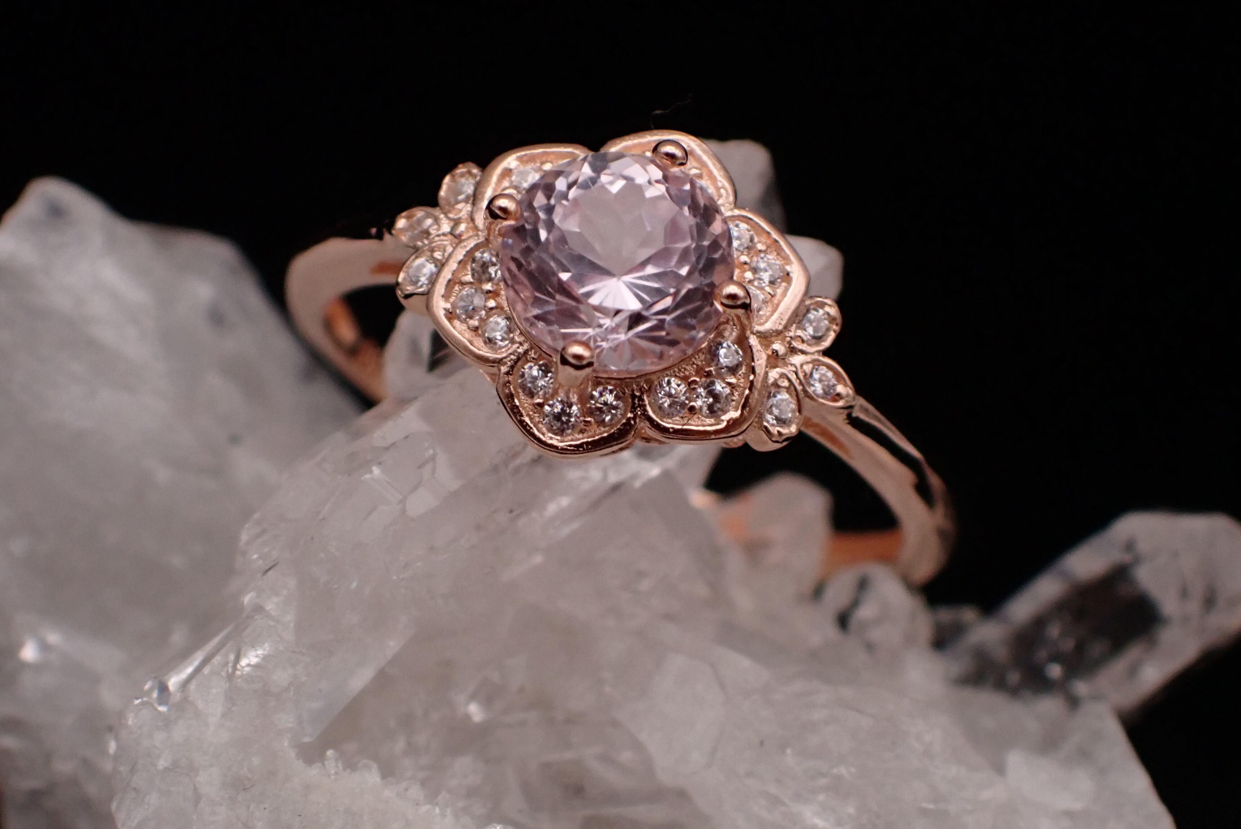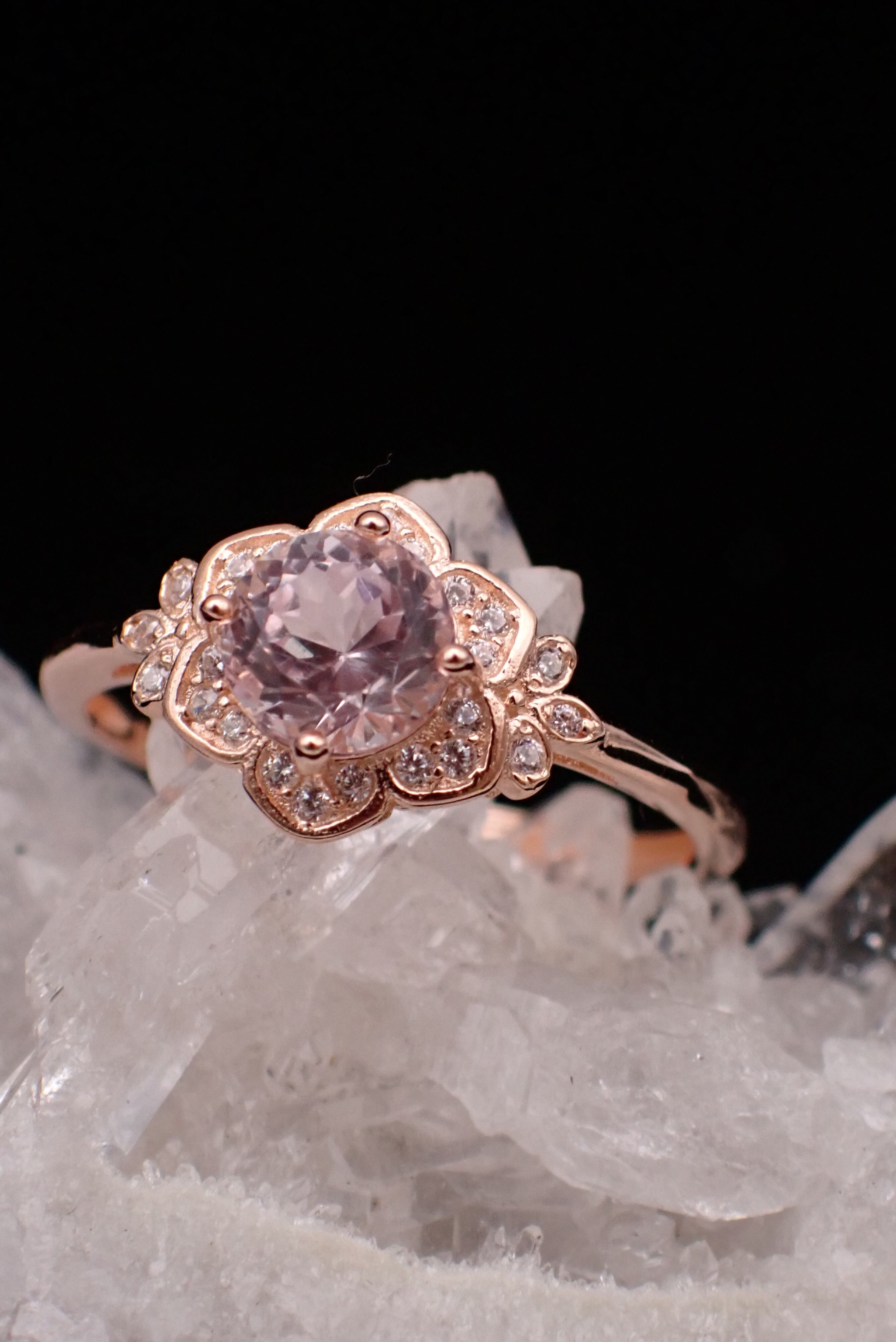 桔梗の花びらの中央に咲き誇る美しいクンツァイト。