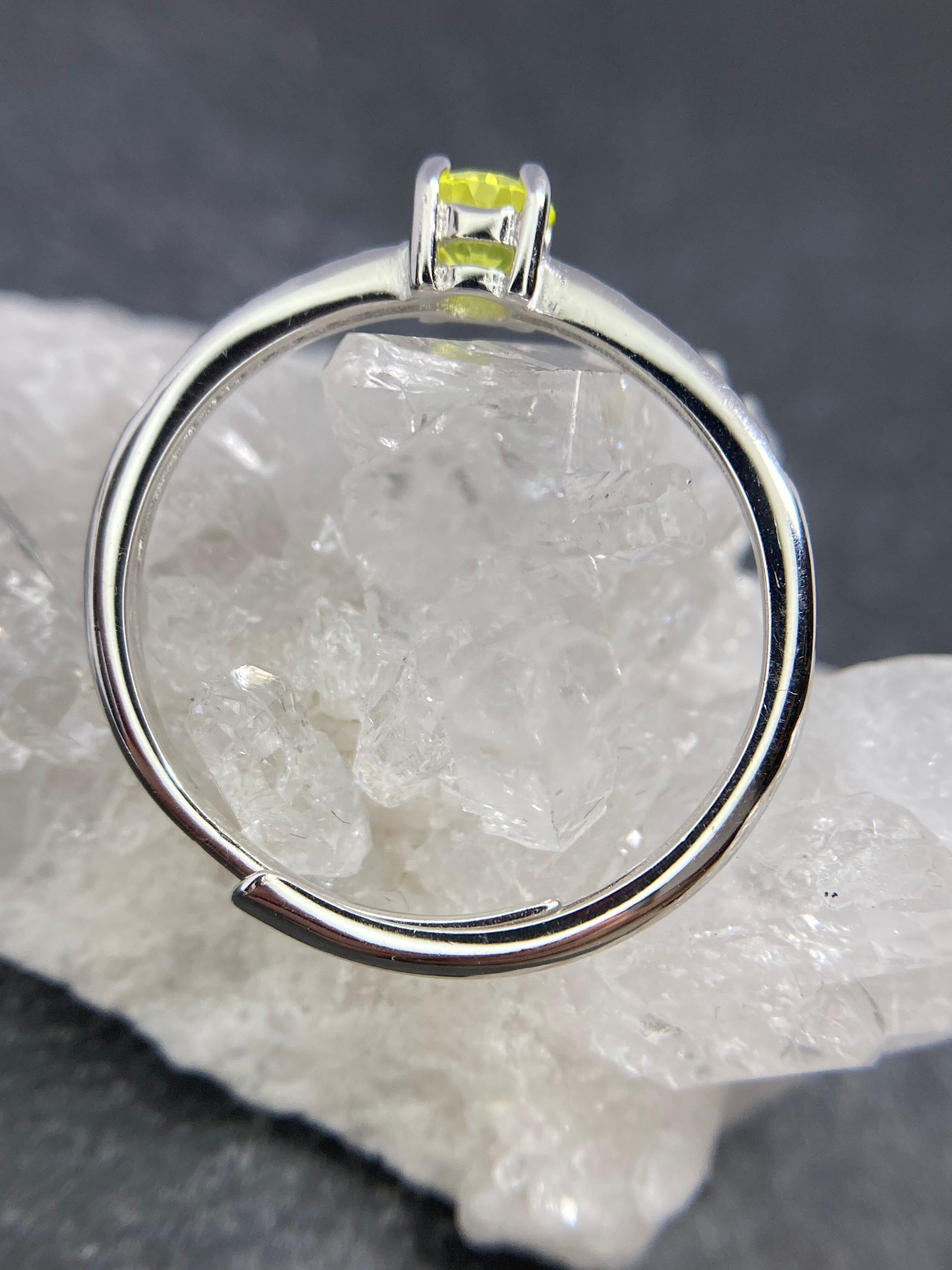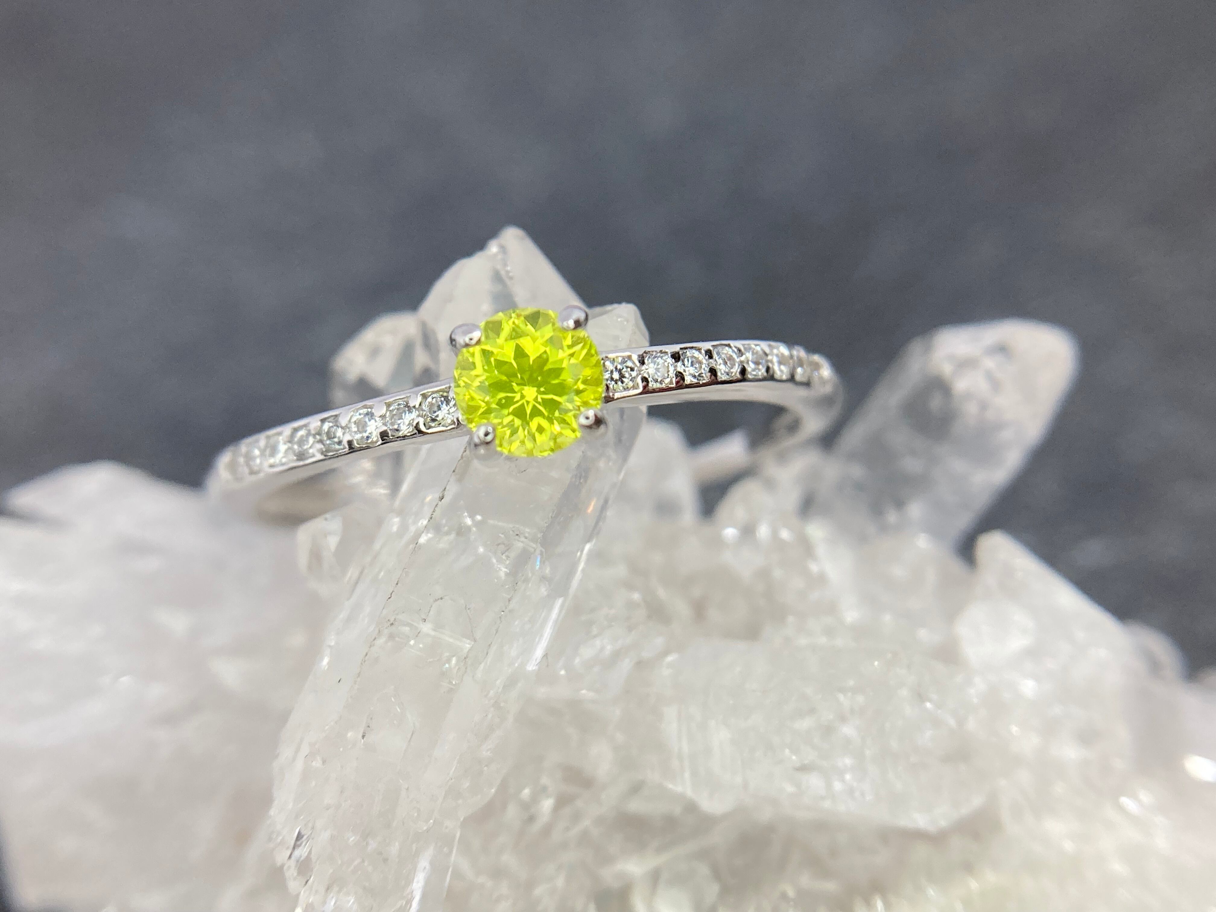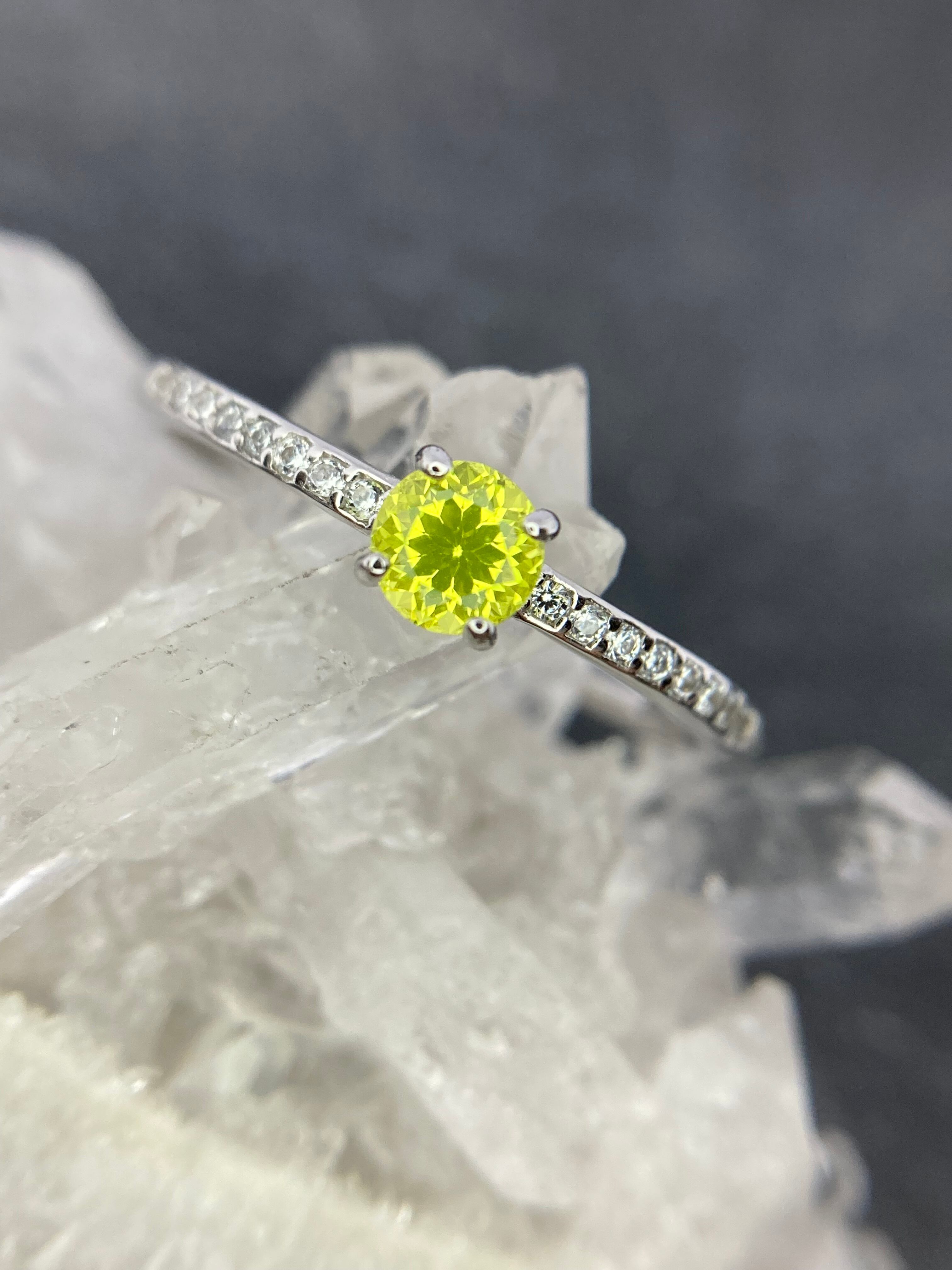 まるで蛍光しているかのような美しいYAGがお指で鮮やかに主張し、小さいながらも主役となれるリングです。