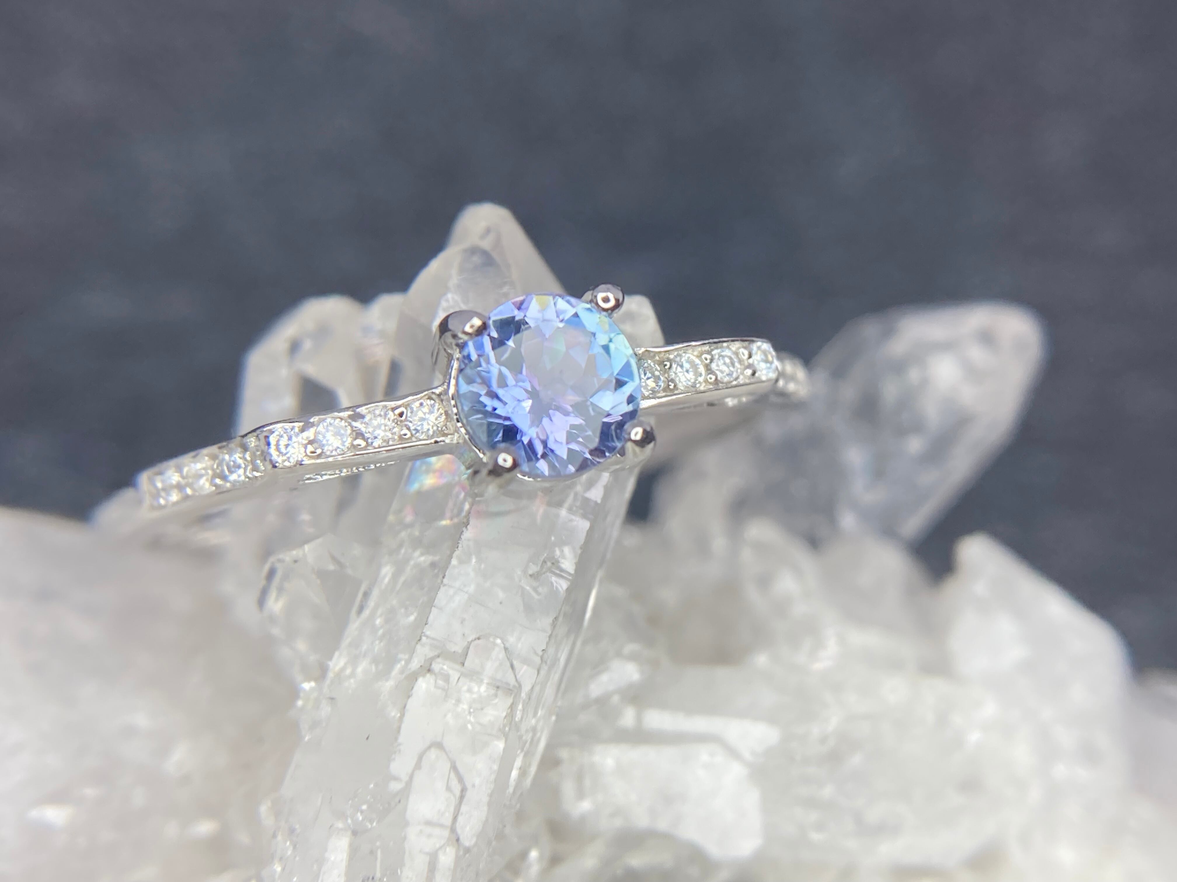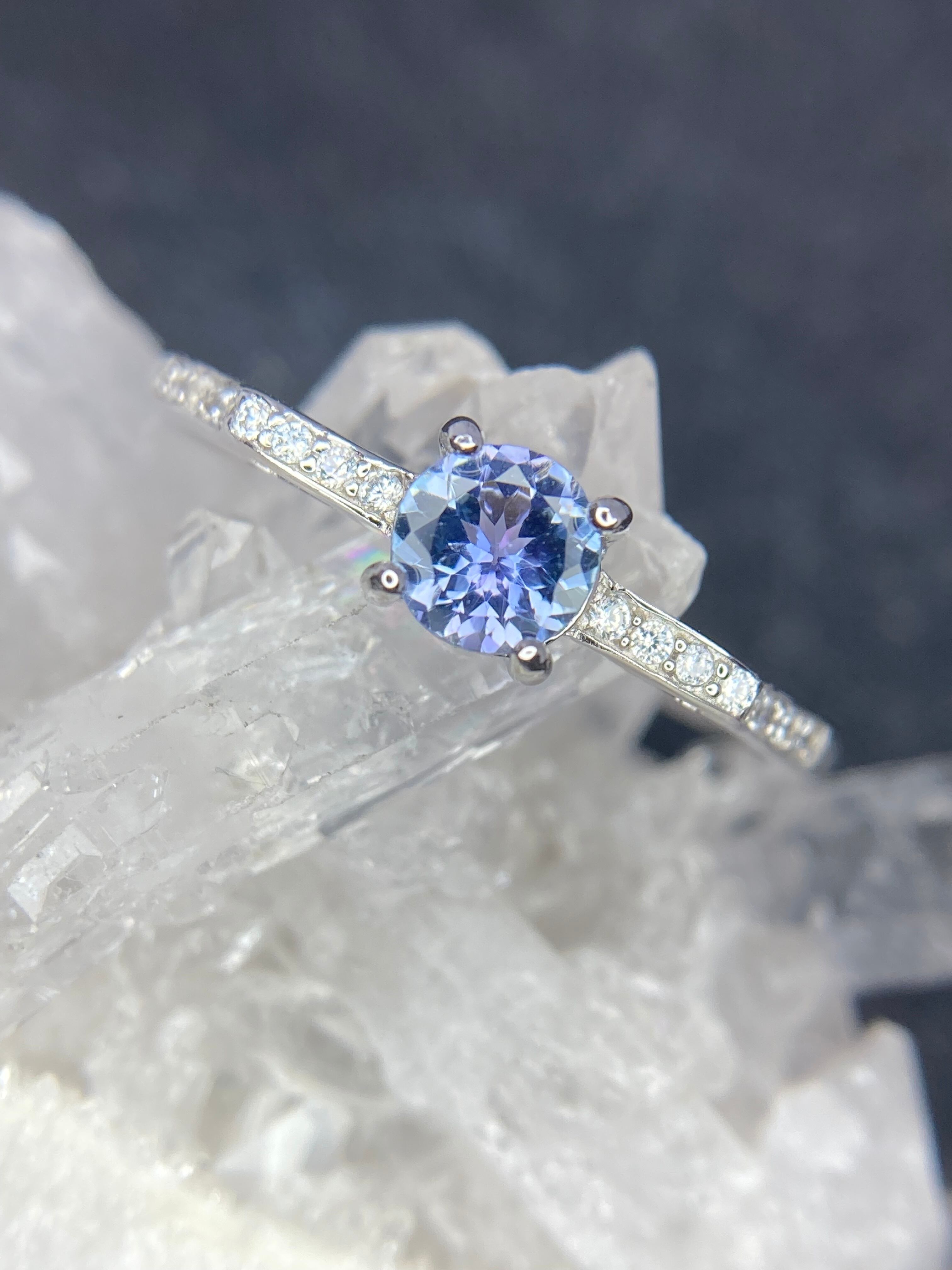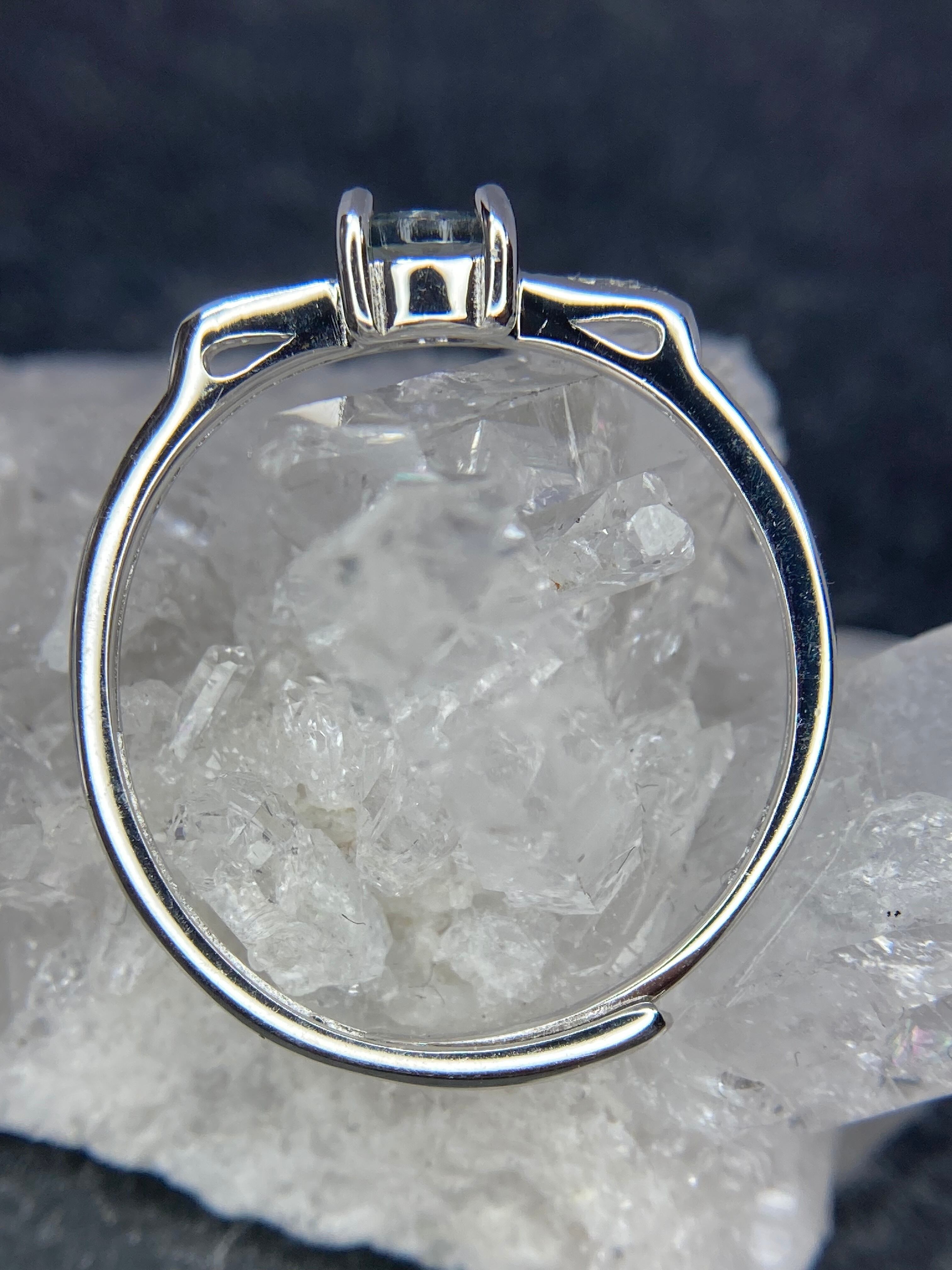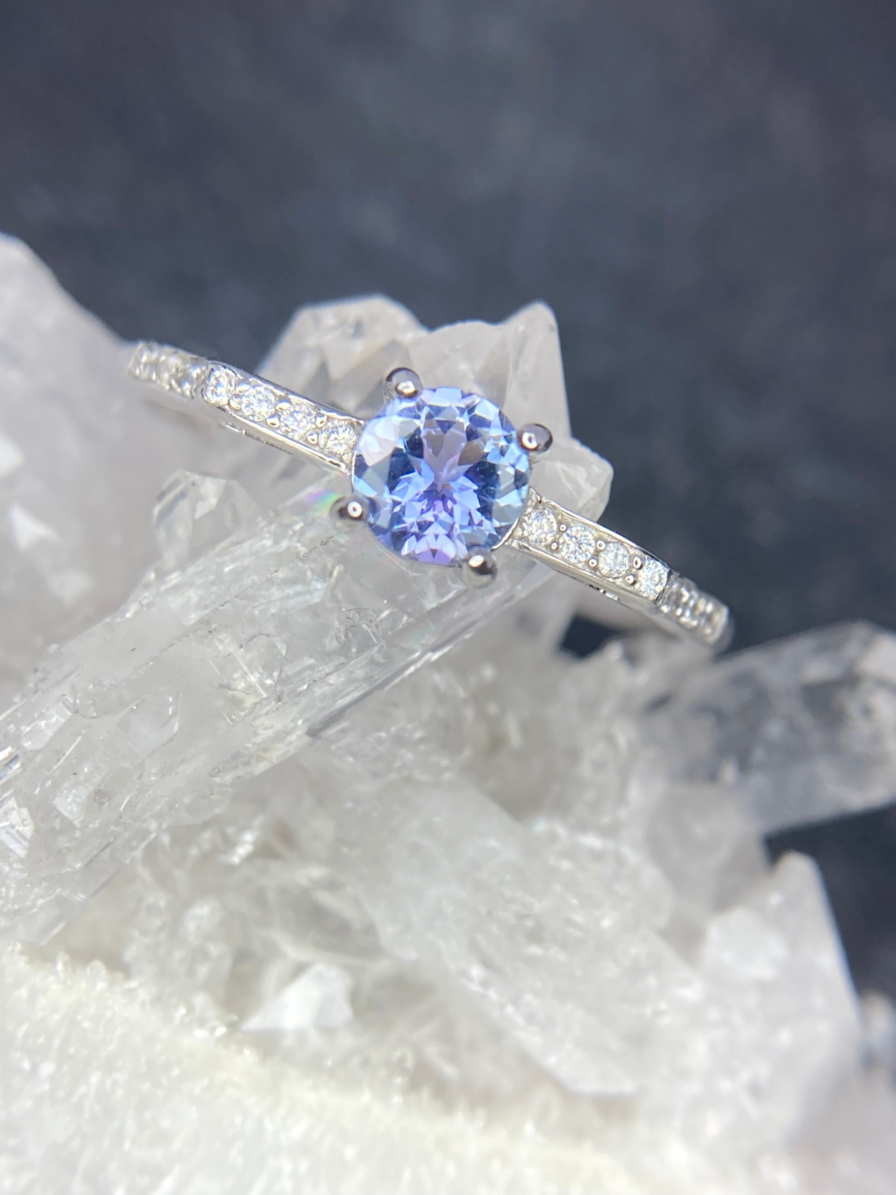 小さなジルコニアたちがゾイサイトの輝きを引き立てる清楚なリングです。