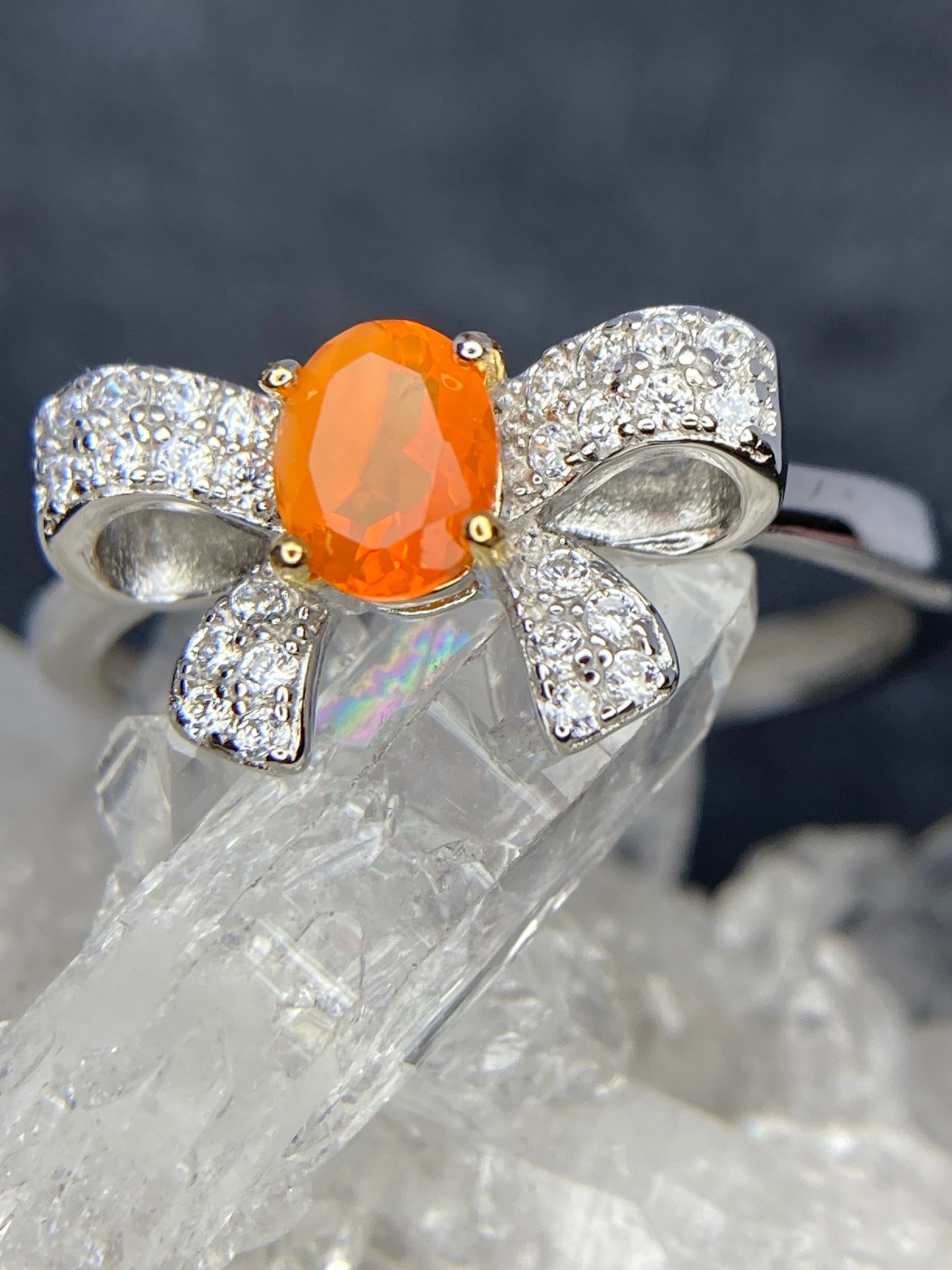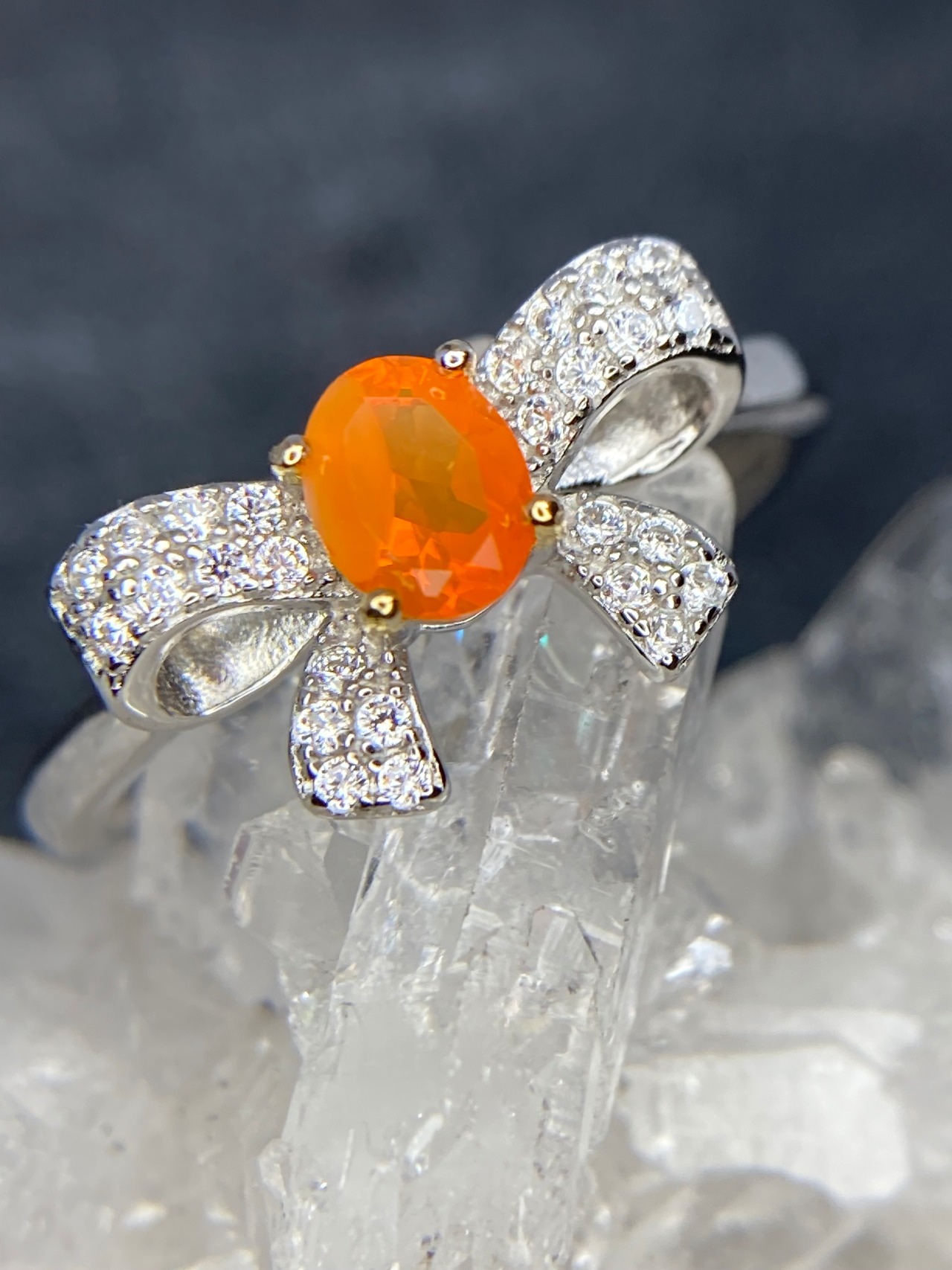 小さなジルコニアたちがオパールの輝きを引き立てる可愛らしいリングです。