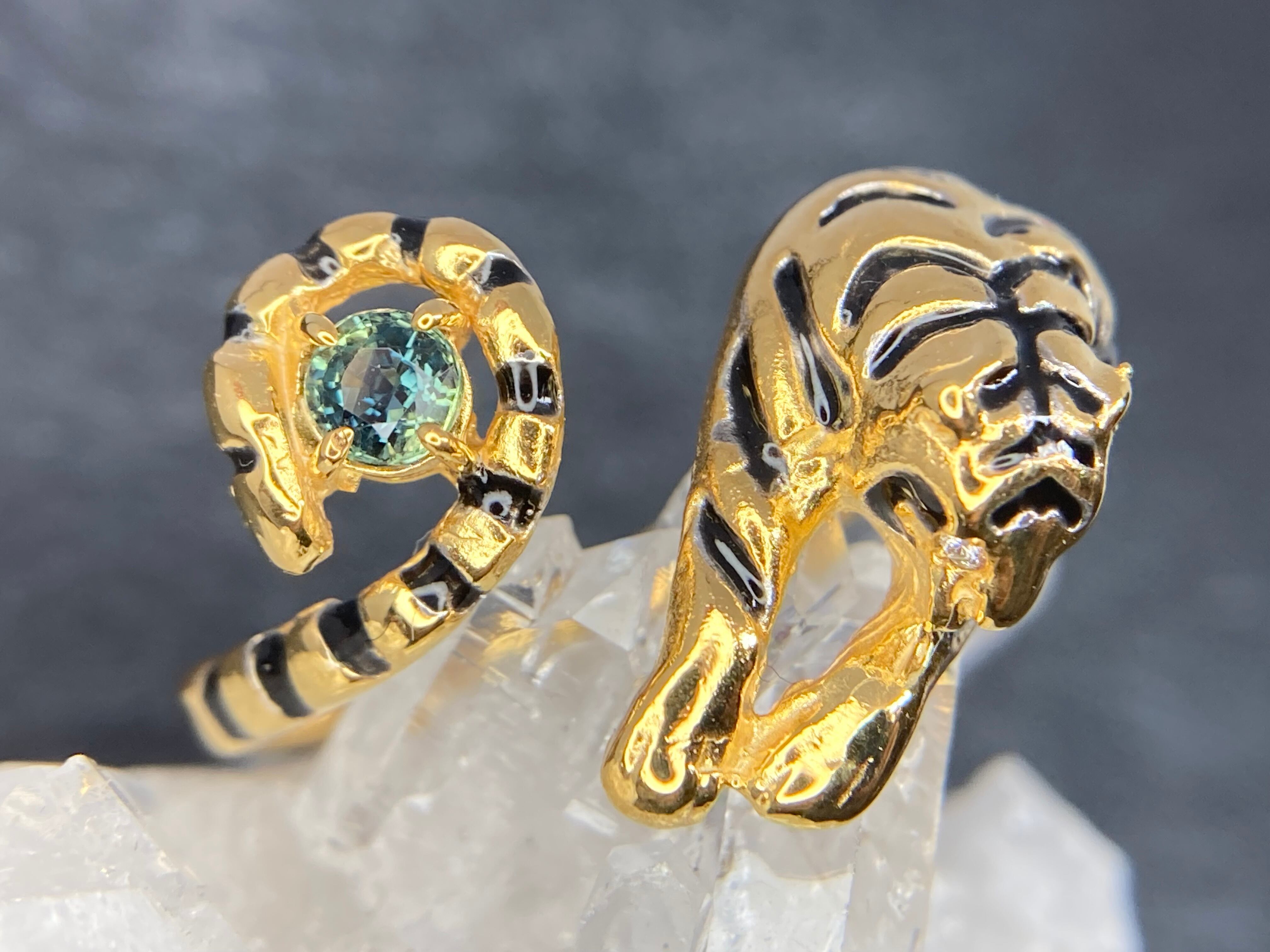 【限定】虎ring ダイヤモンドeye&グリーンサファイア フリーサイズ